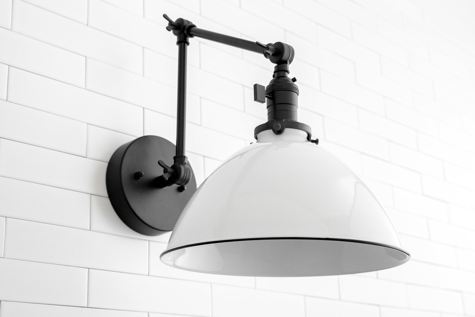 10 Inch White Shade - Adjustable Arm Light - Farmhouse Sconce - Wall Light Fixture - Model No. 9132