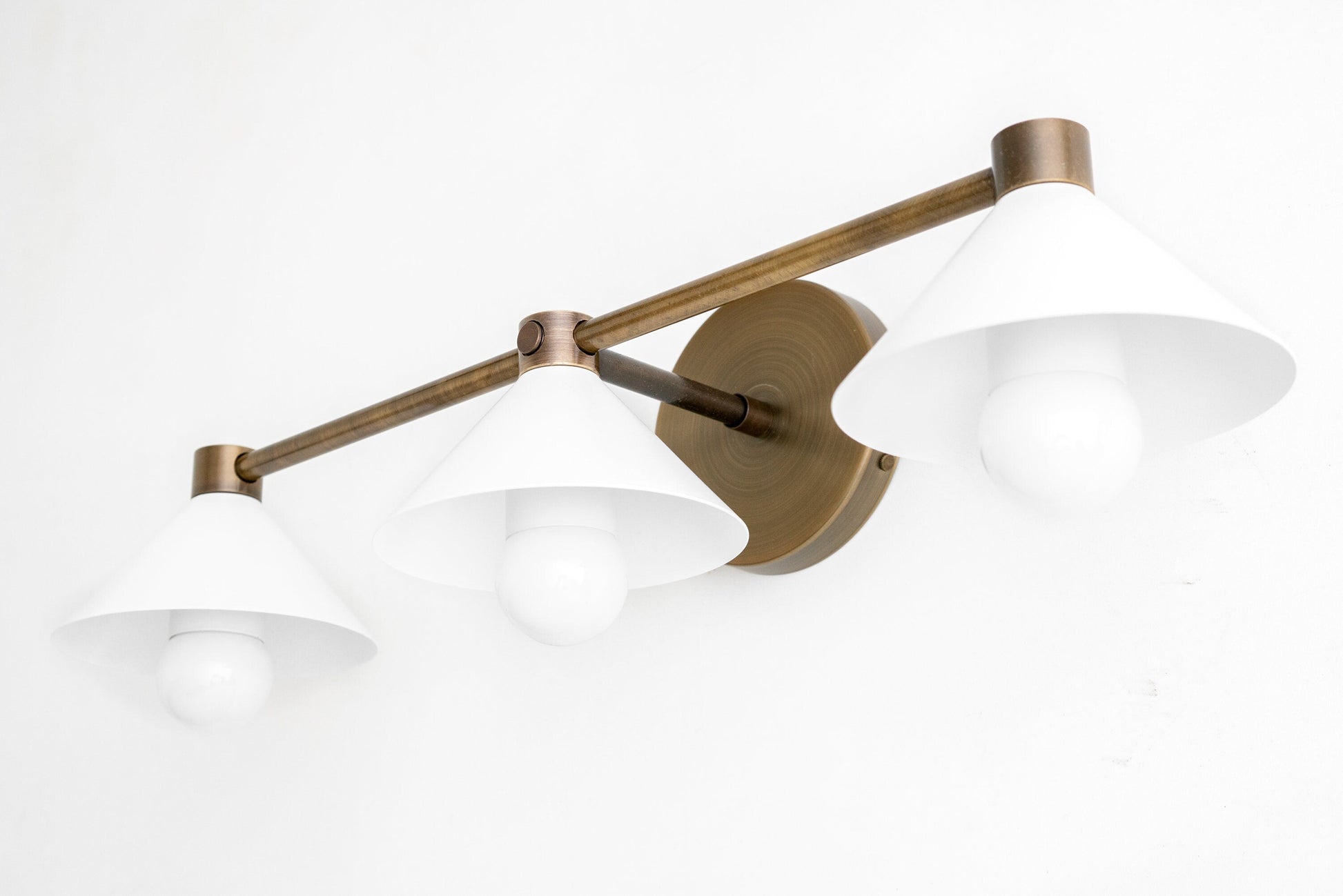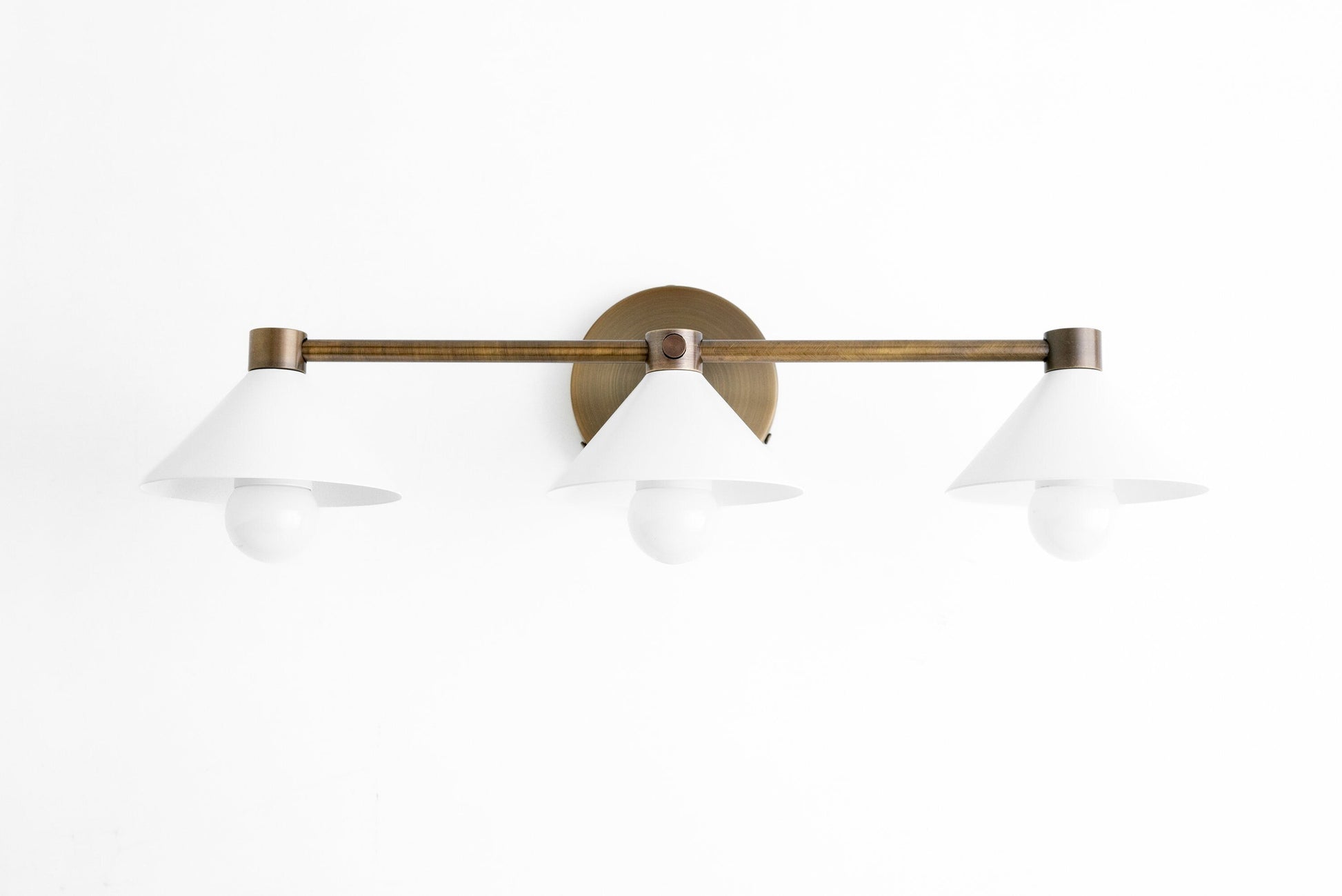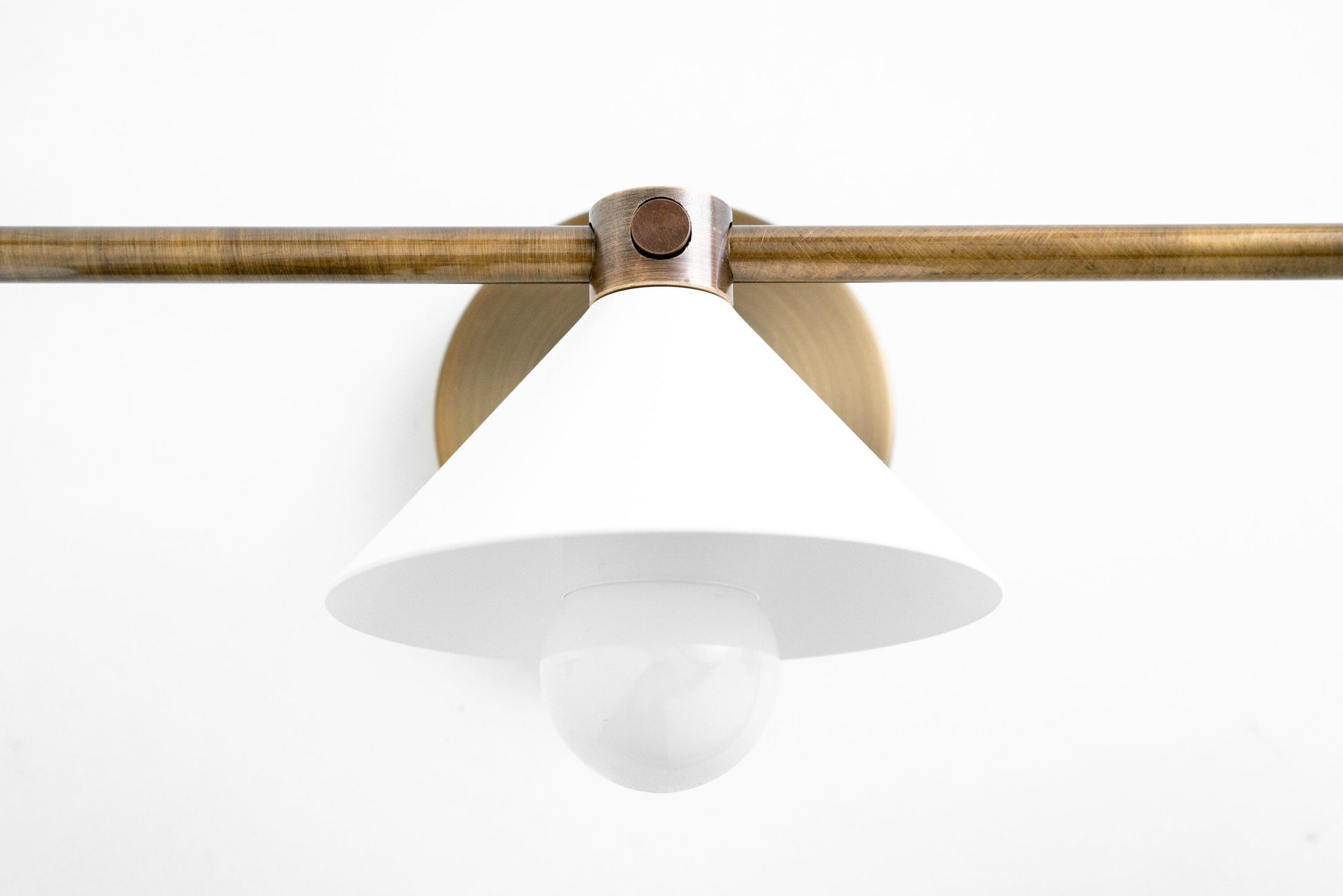 Rustic Vanity Light - White Shade - Antique Brass Light - Modern Farmhouse - Wall Light - Model No. 0253