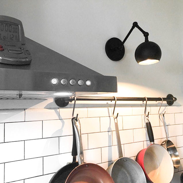 This small industrial style articulating wall sconce is vertically adjustable allowing for direction light exactly where you need it.