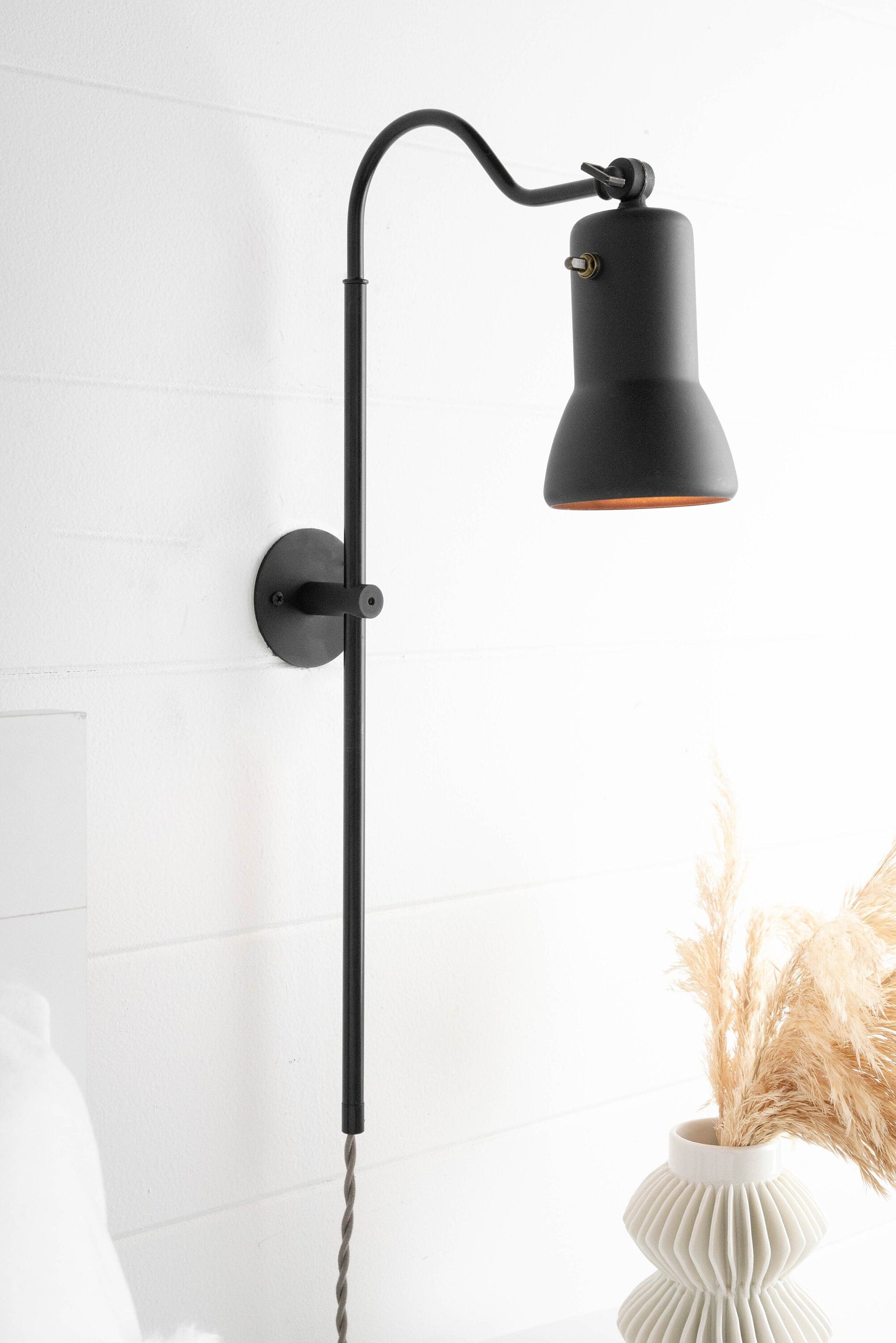 Bedside Fixture with Shade Switch - Plug In Wall Sconce - Reading Light - Modern Lighting - Unique Lighting - Model No. 3095