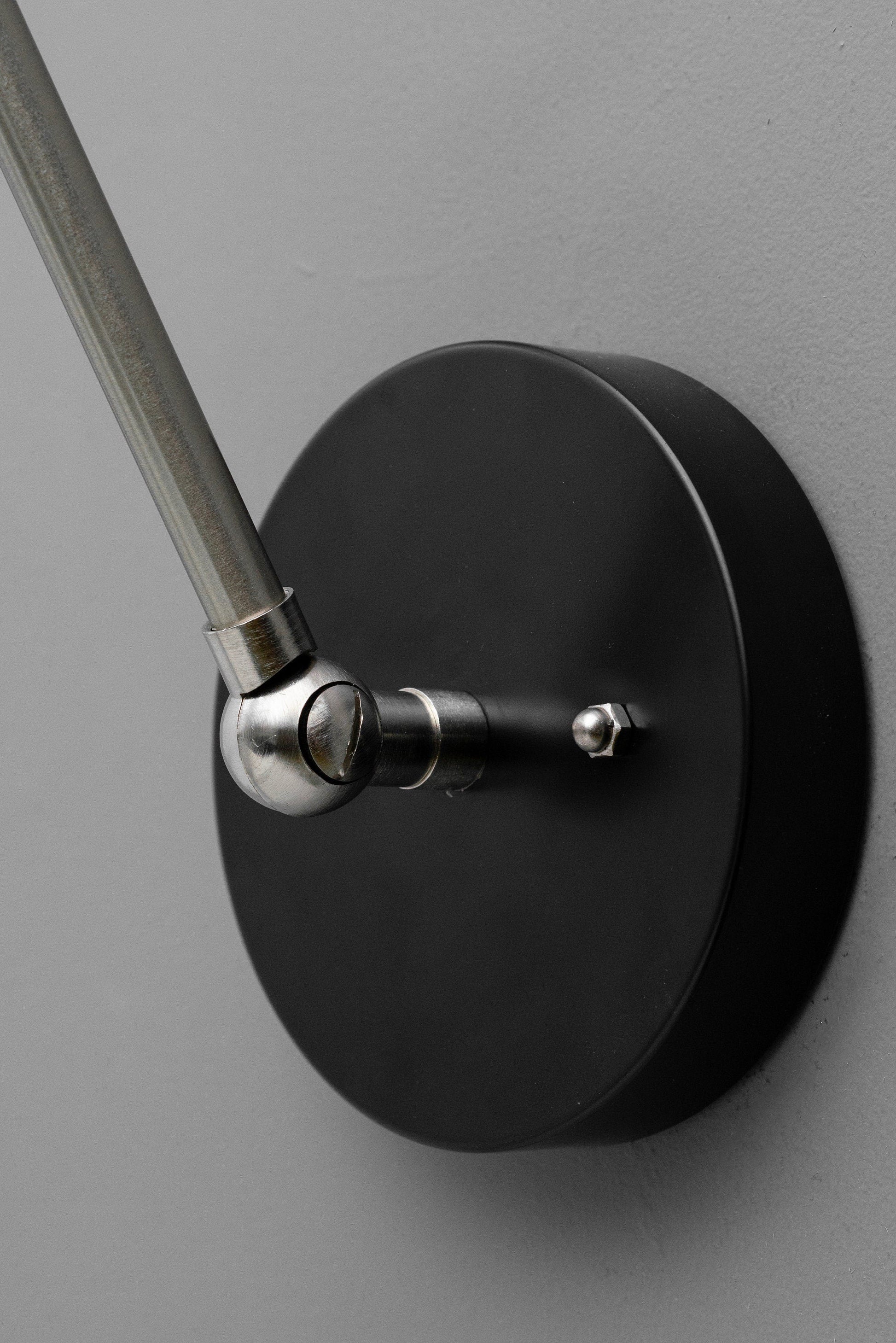This industrial wall sconce can be turned on/off using the key switch located on the socket. The light's vertical position can be adjusted by the three articulations.