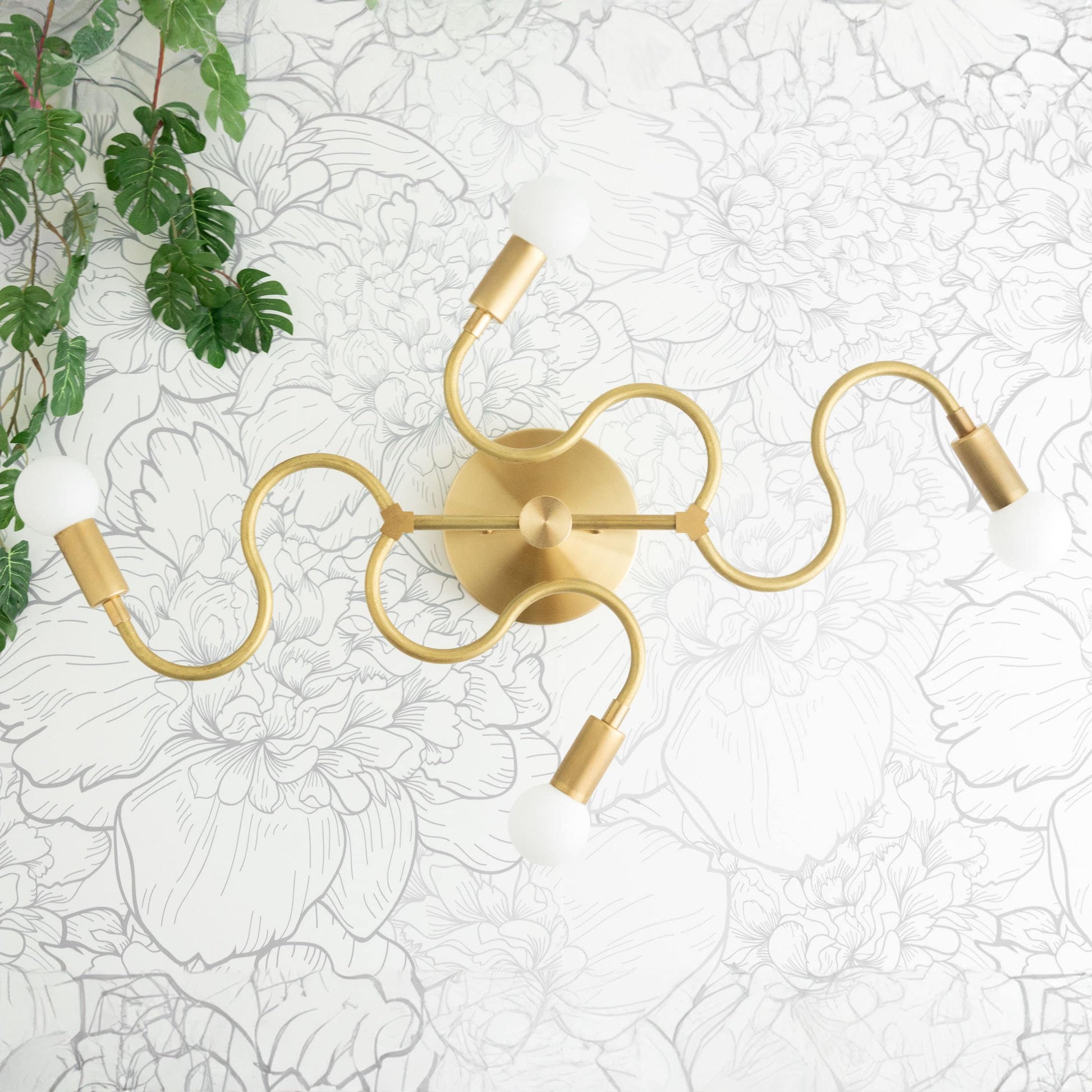 This decorative modern 4 bulb vanity features a curvy snake-like design.