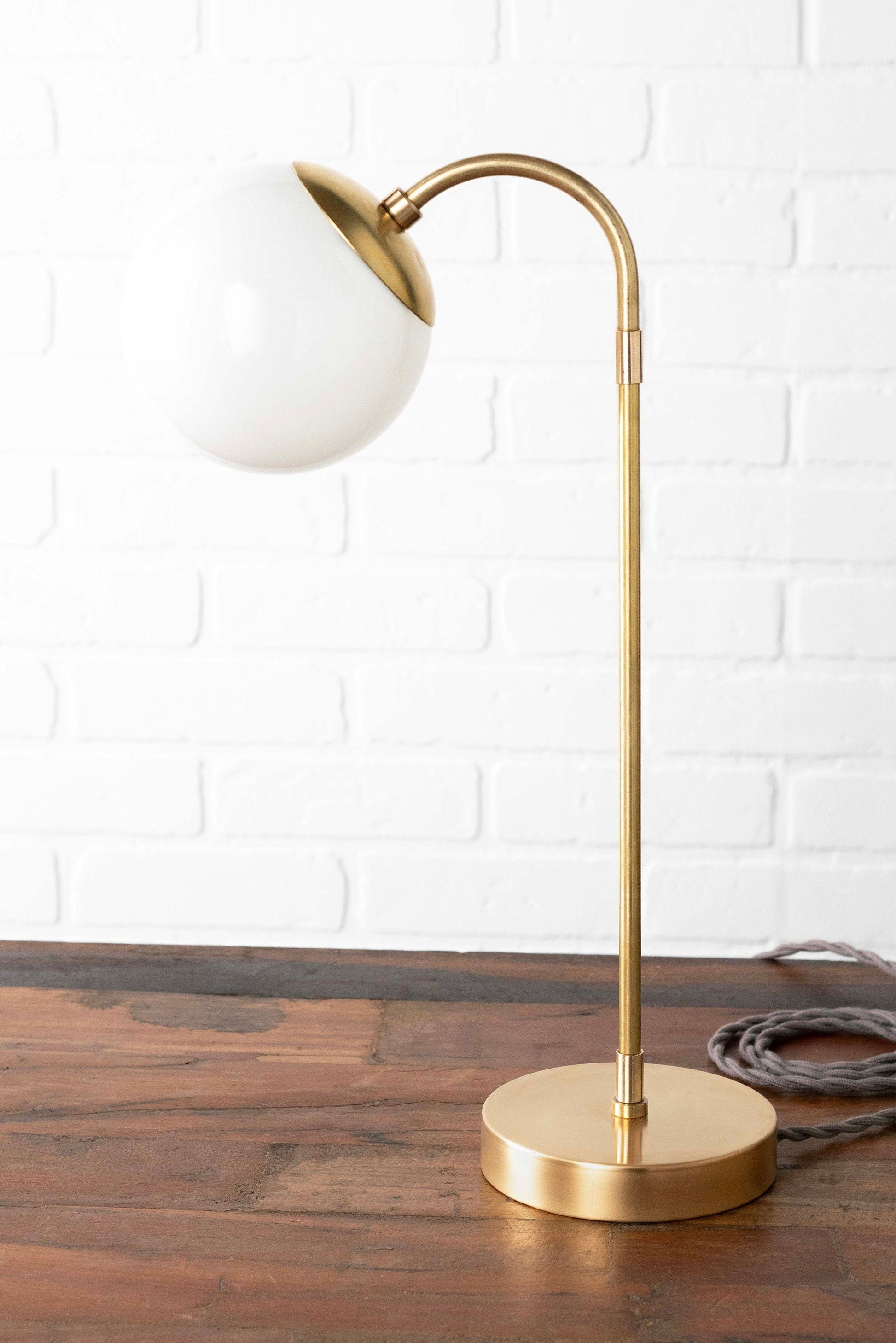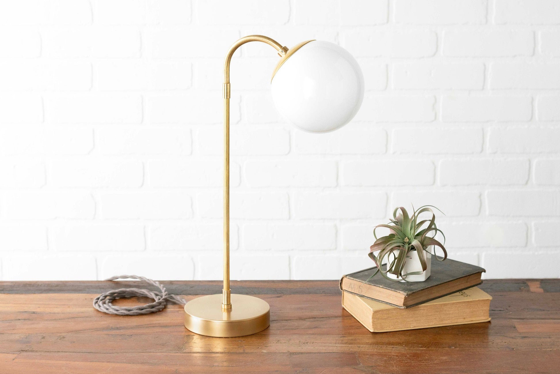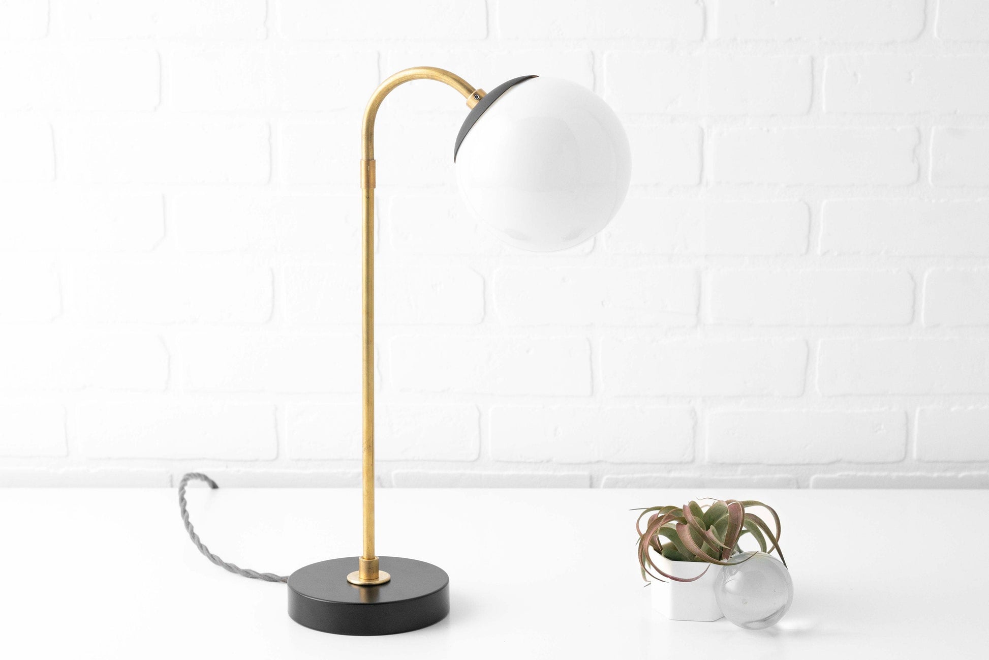 Brass Globe Lamp - Opal Table Lamp - Desk Lamp - Bedside Lamp - Reading Lamp - Mid Century Lamp - Raw Brass - Task Lamp - Model No. 8672