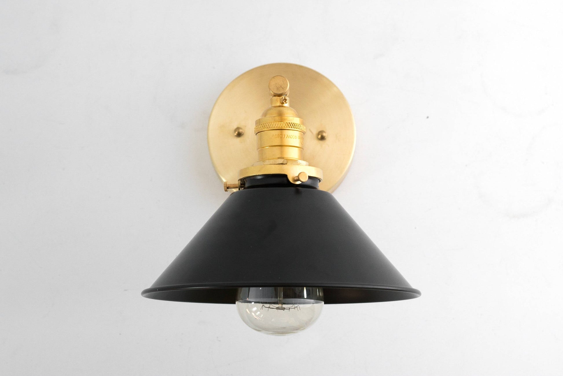 Brass Wall Fixture - Modern Sconces - Industrial Lighting - Metal Shade - Wall Sconce Gold Black - Model No. 9442