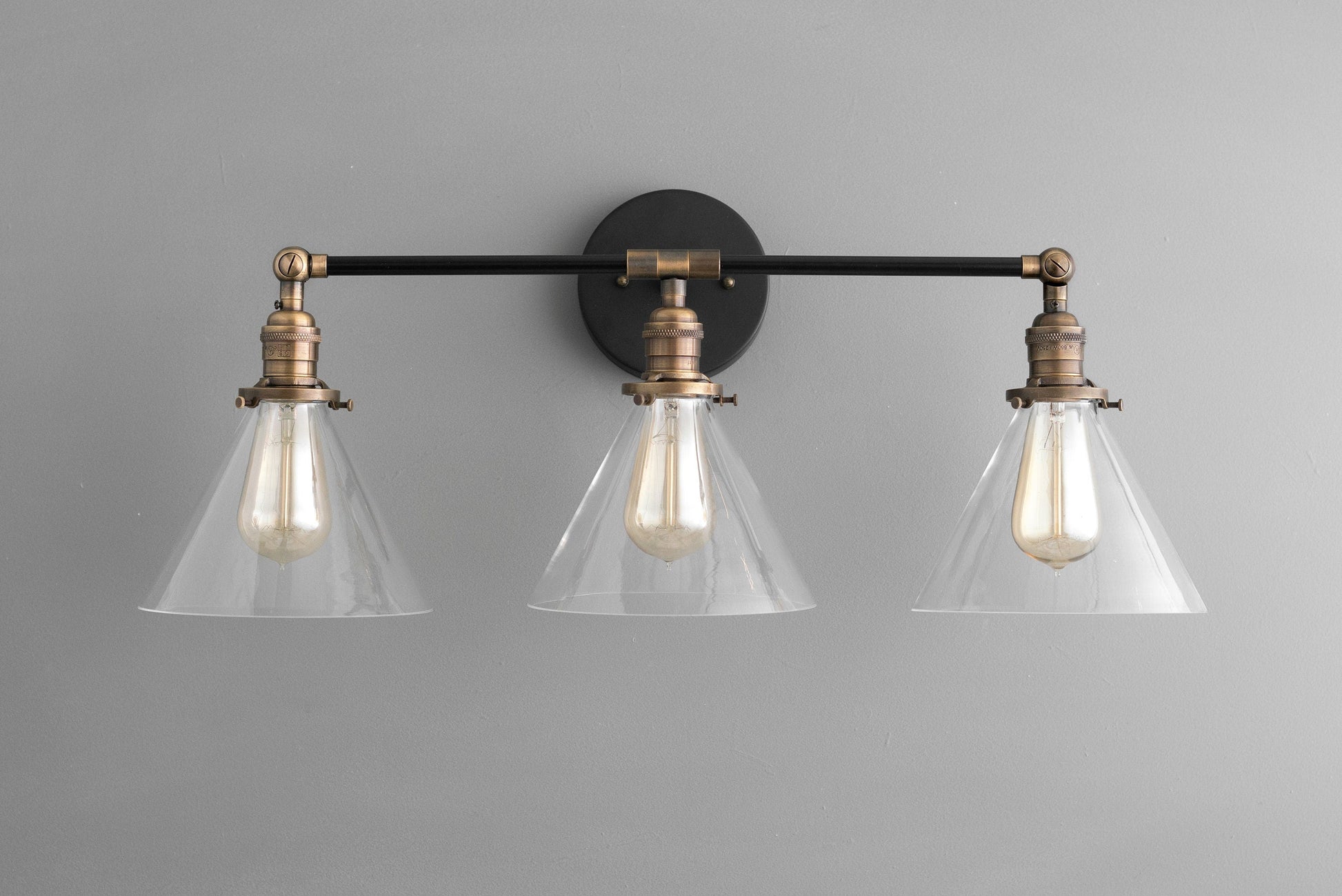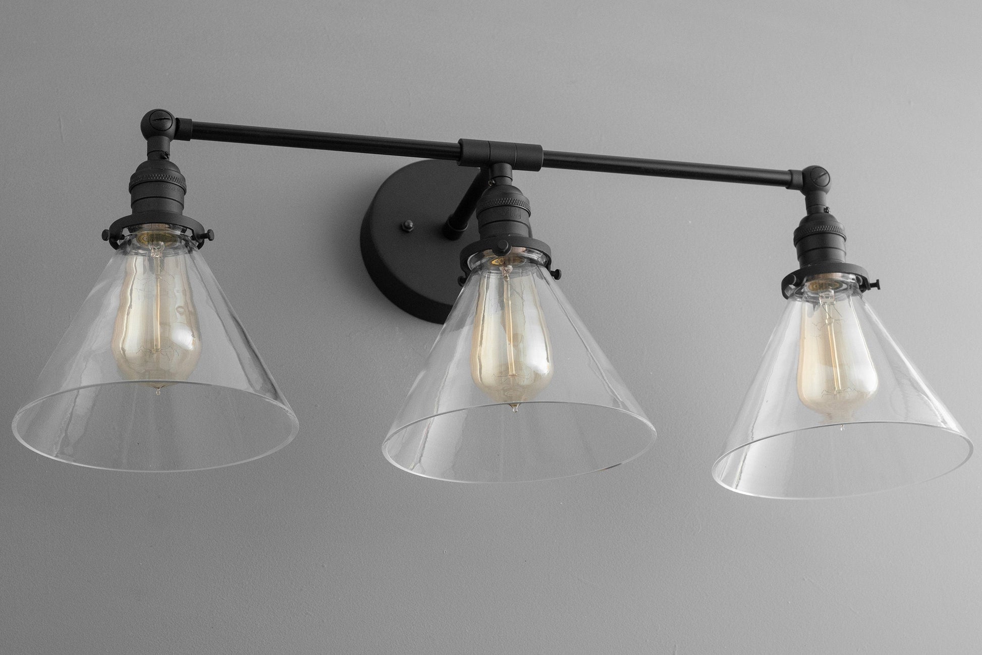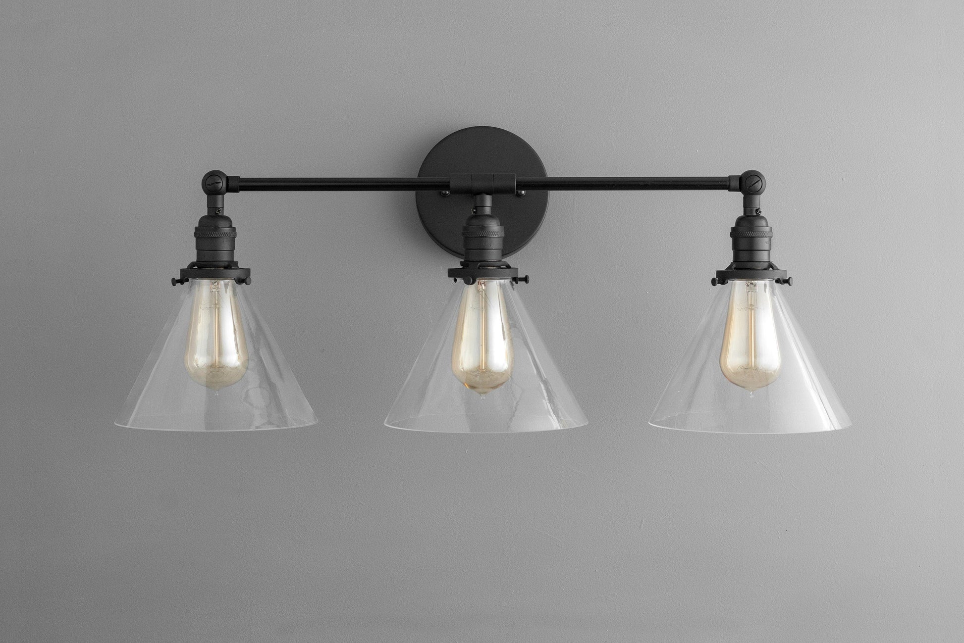 Clear Cone Vanity - Rustic Bathroom - Three Bulb Vanity - Wall Light Fixture - Farmhouse Lighting