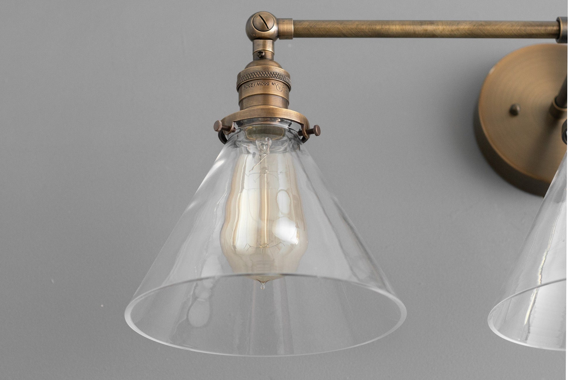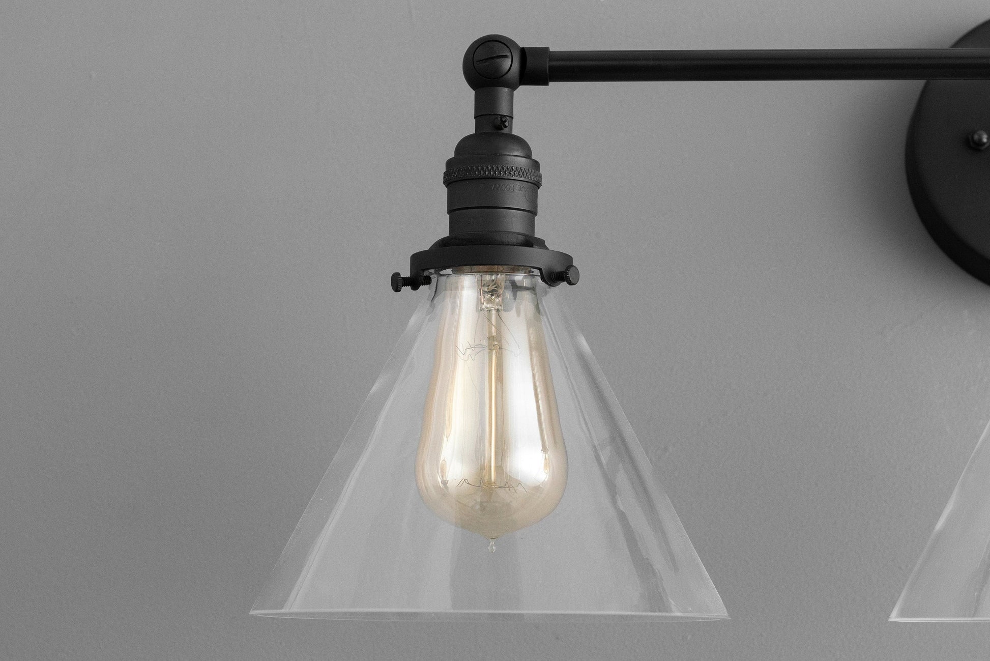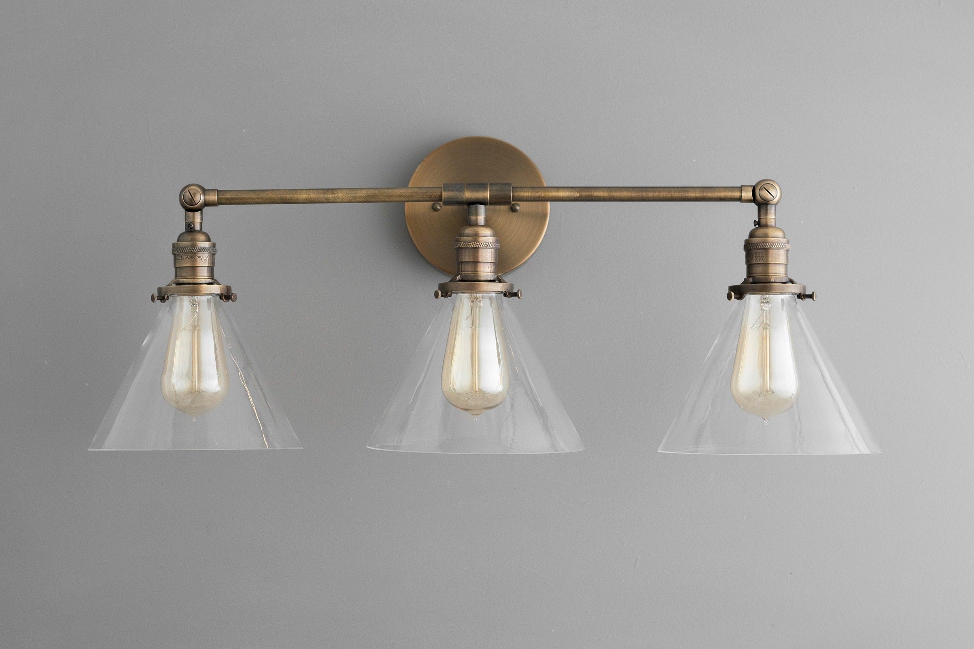 Clear Cone Vanity - Rustic Bathroom - Three Bulb Vanity - Wall Light Fixture - Farmhouse Lighting
