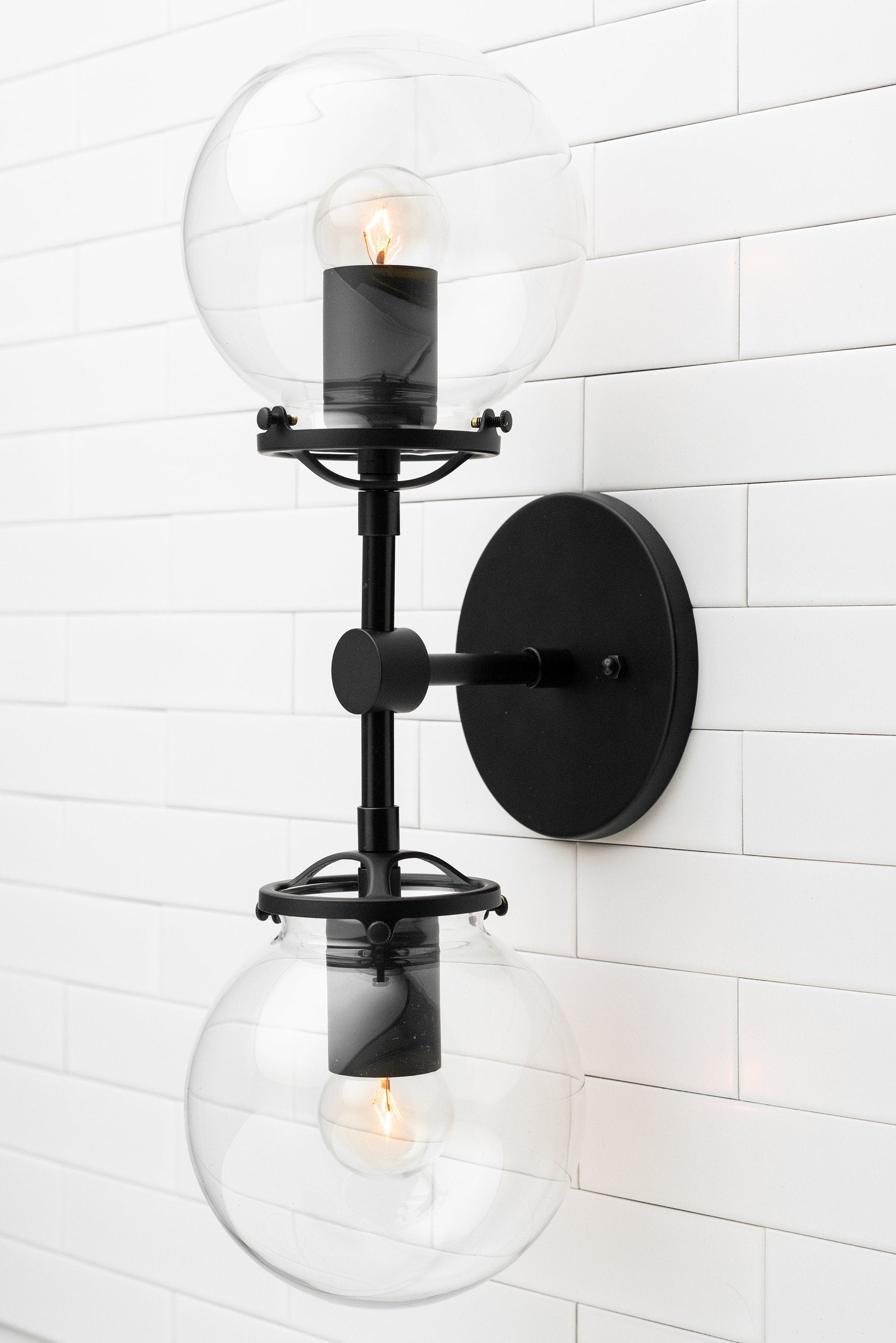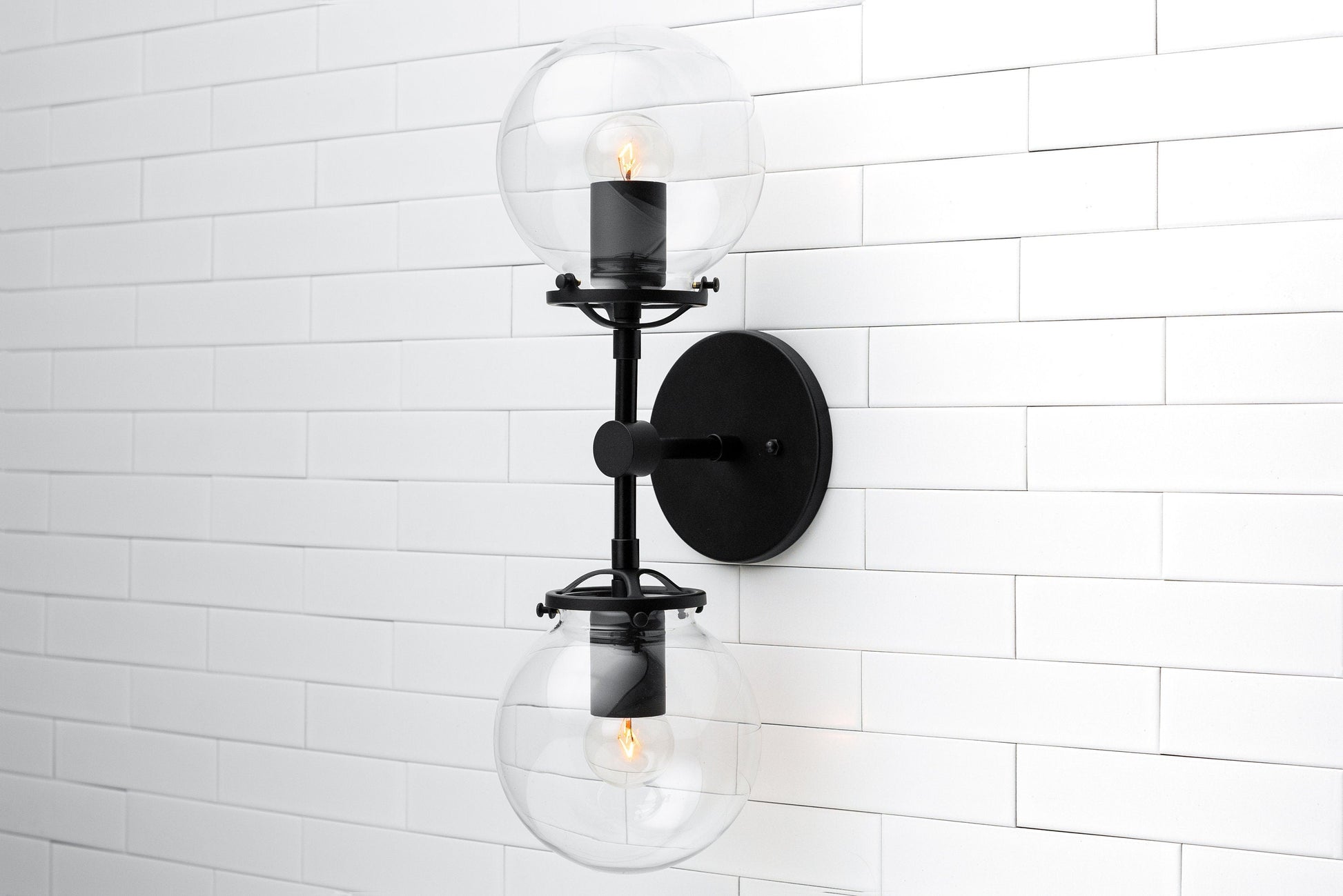 Double Globe Sconce - Wall Sconce - Linear Glass Globe Sconce - Light Fixture - Industrial Lighting - Clear Globe Light - Wall Light