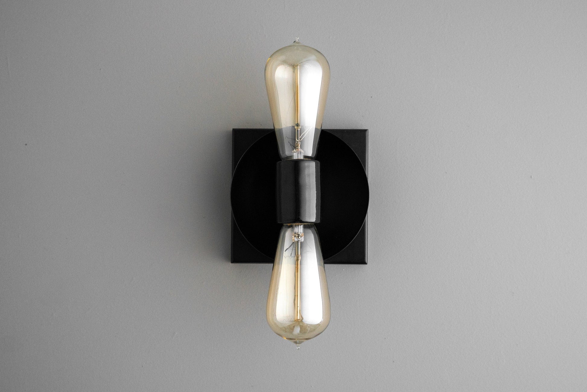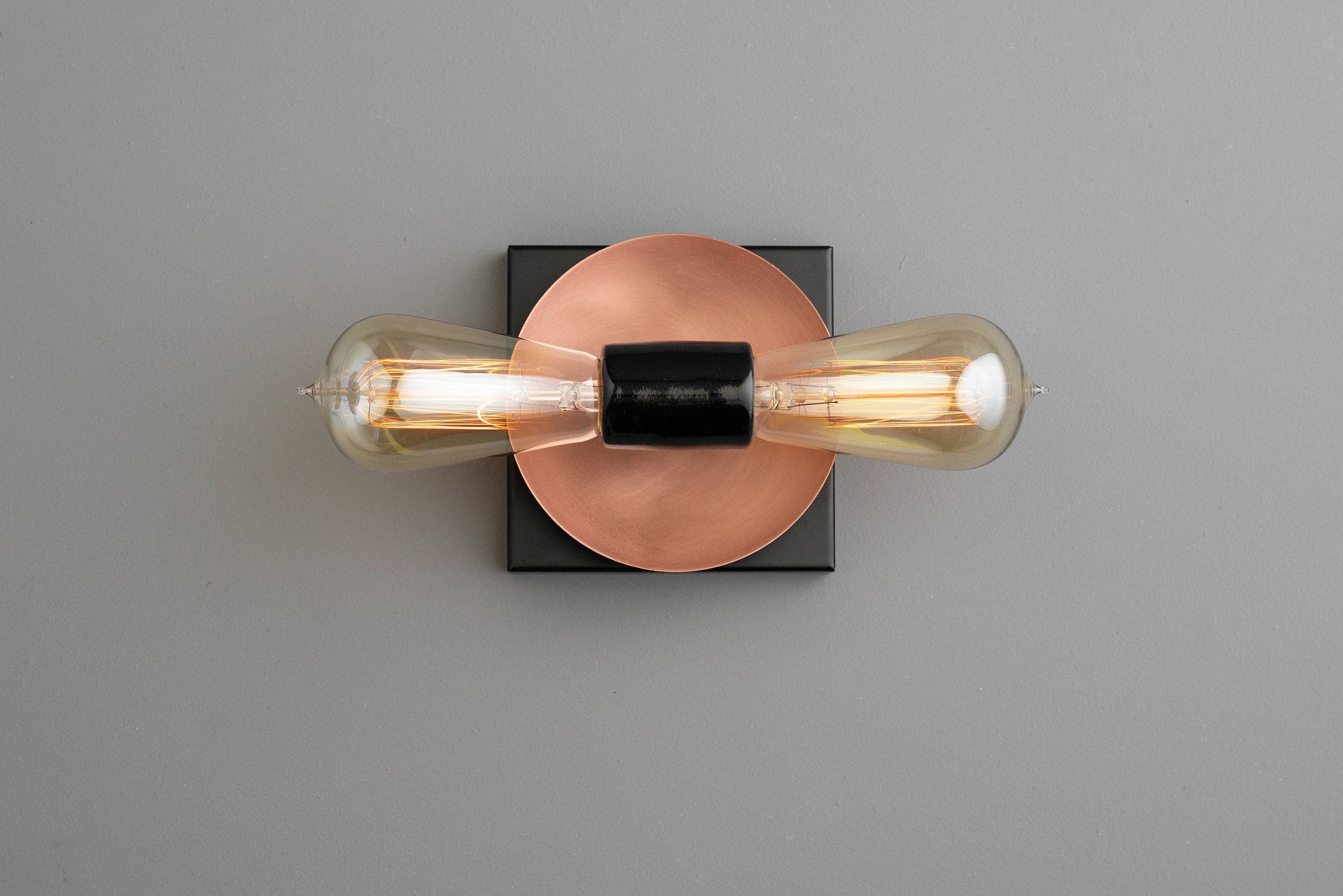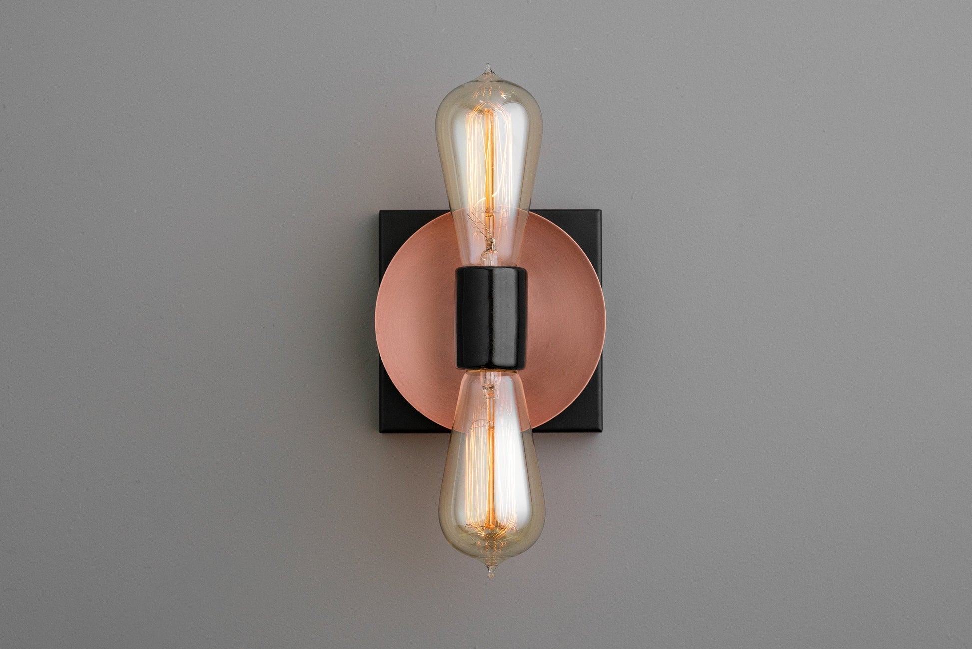 Duel Bulb Wall Light - Unfinished Copper Light - Modern Industrial Sconce - Square Canopy Light - Model No. 8169