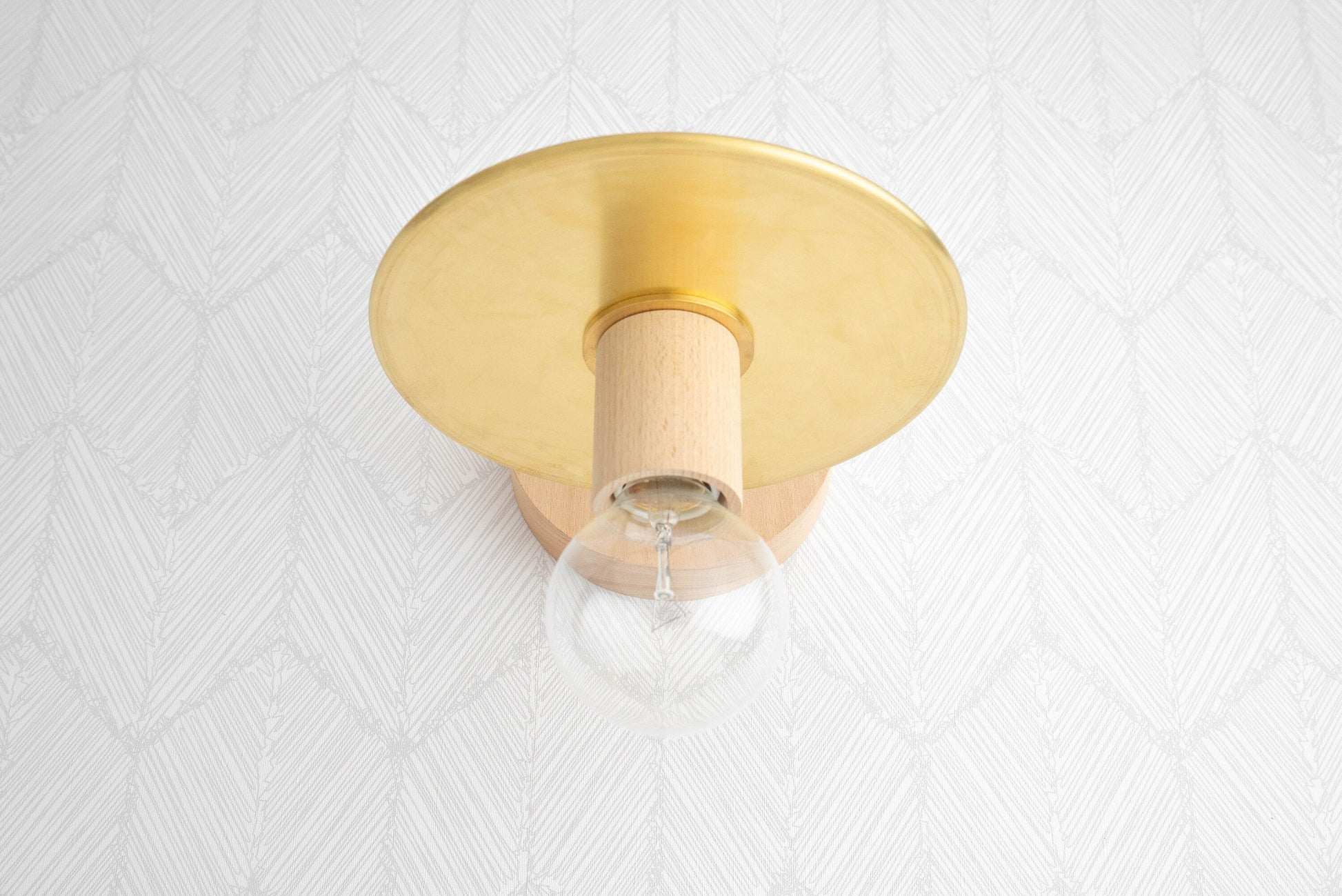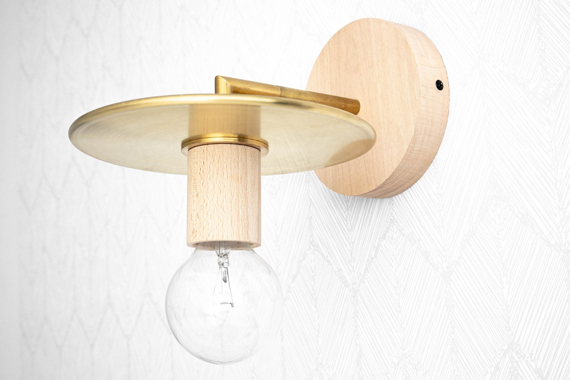 This wood and brass sconce has an 8 inch reflector to bounce the light downwards. Not designed to light up a whole room, this fixture works well in a lighting ensemble, or as a mood lighting piece.