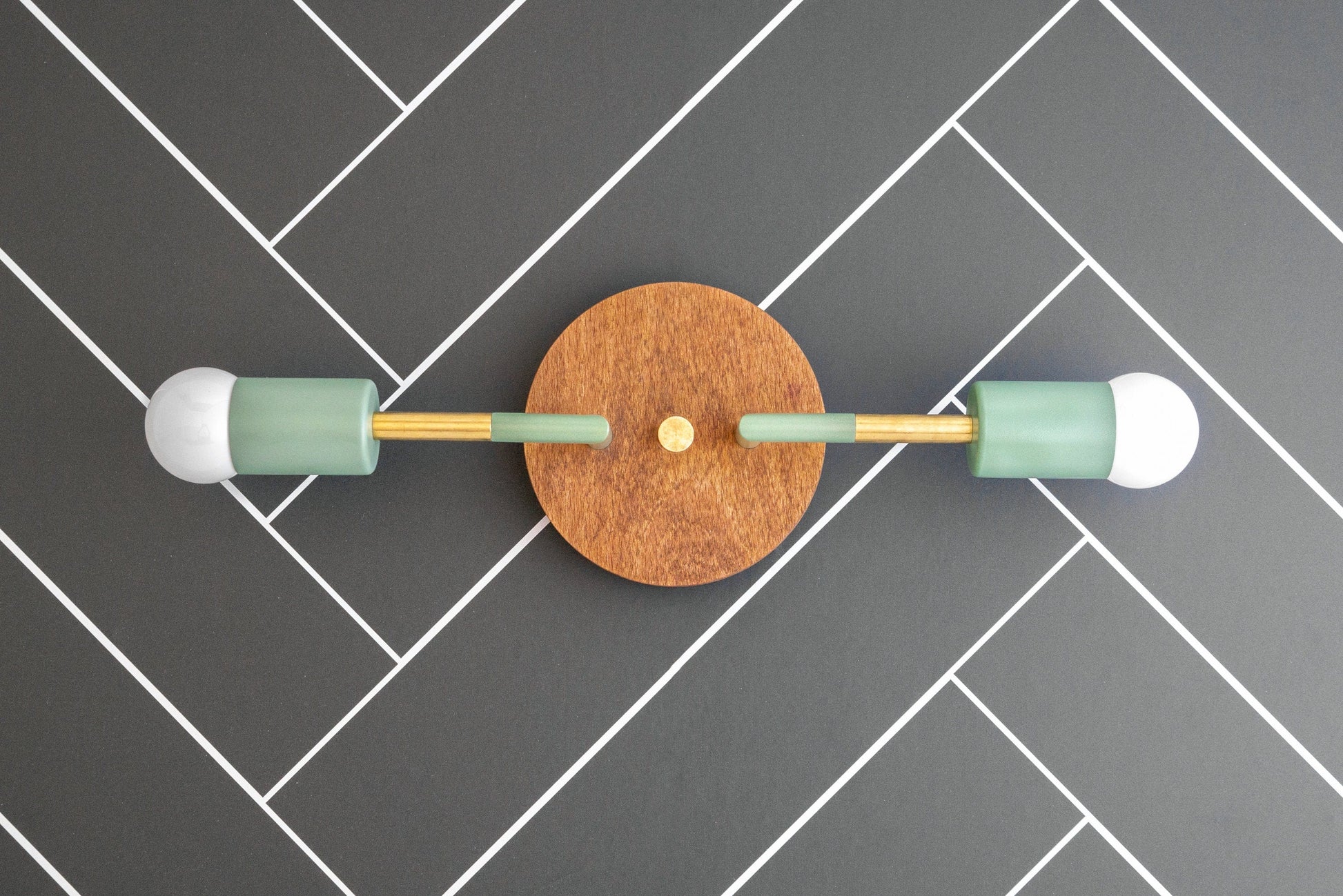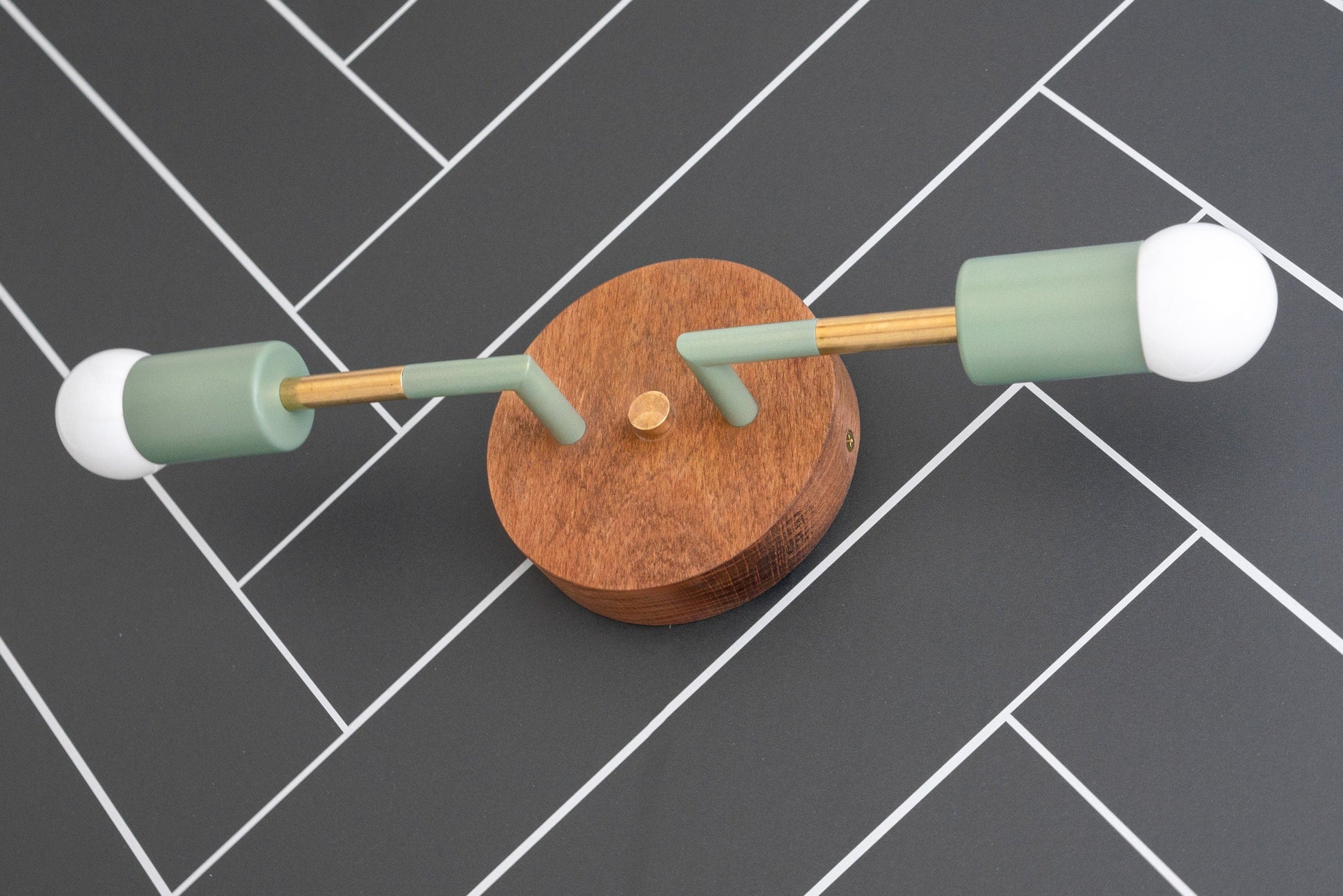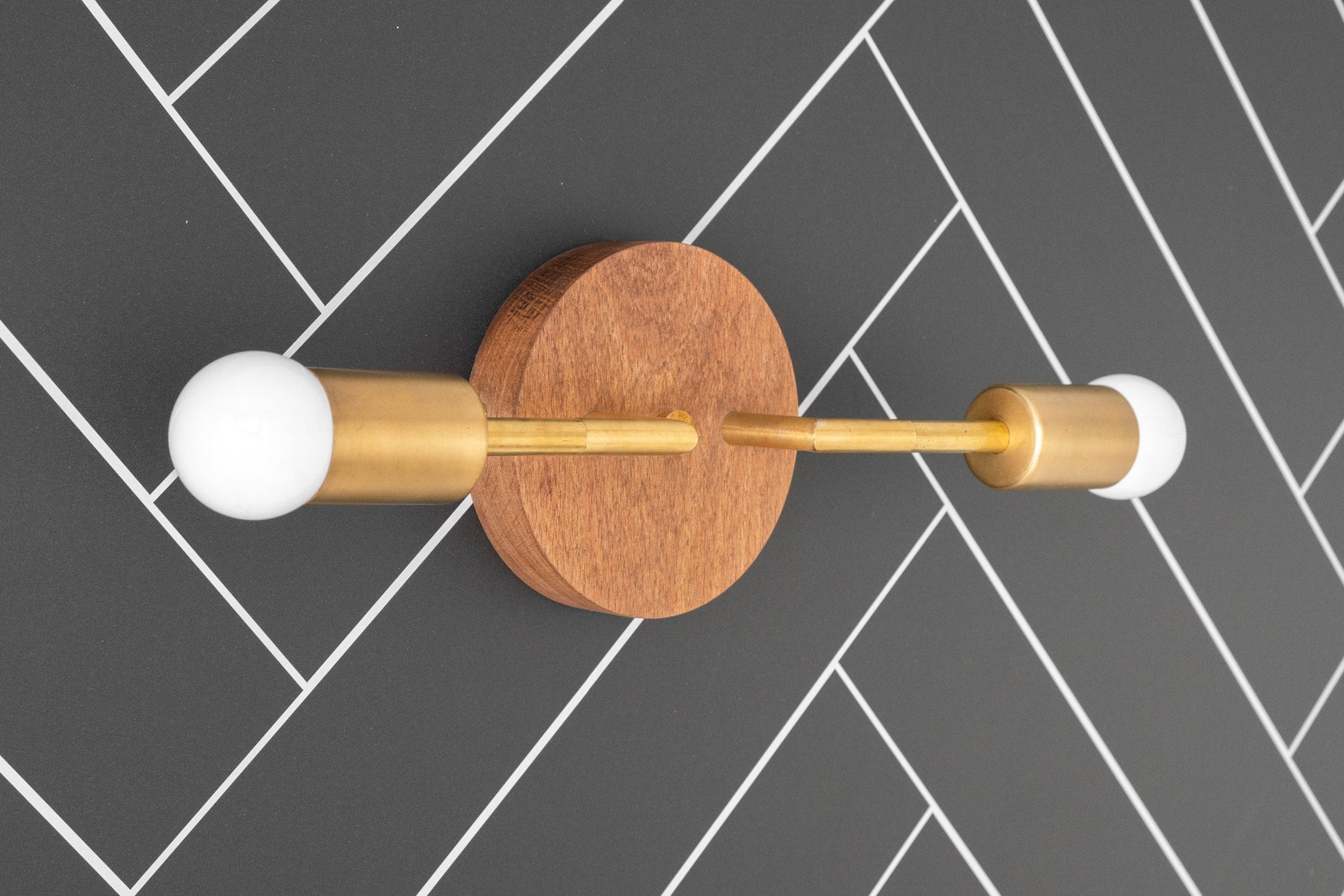 This Scandinavian inspired vanity light features oak finished beechwood.