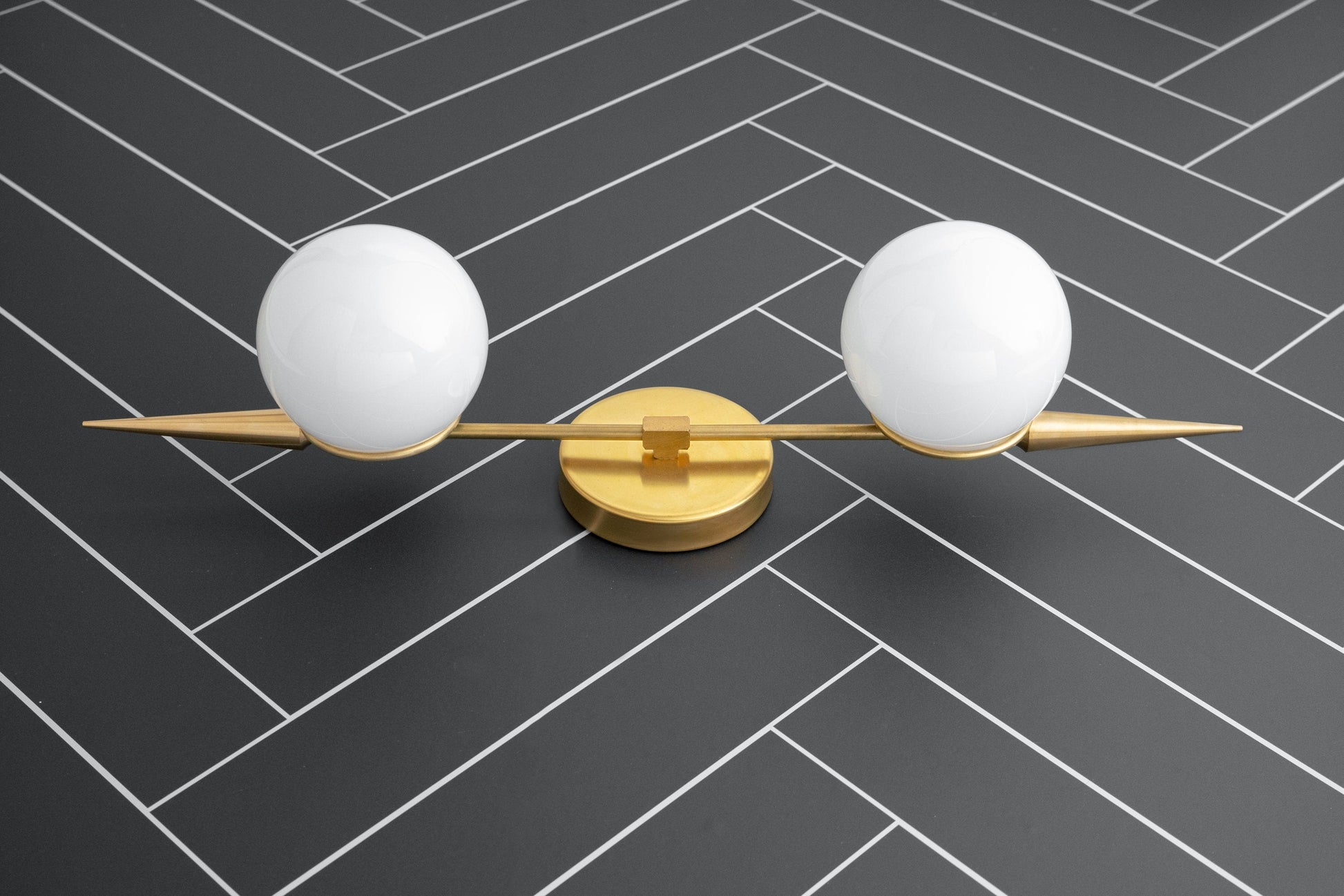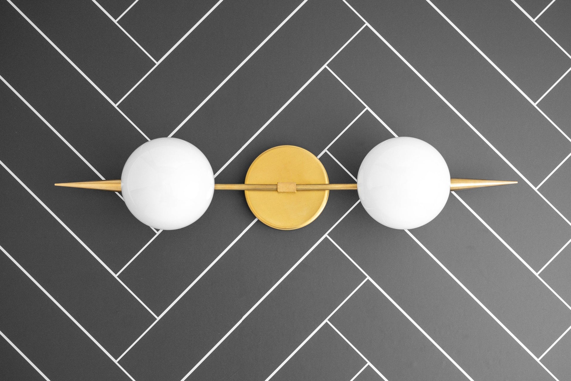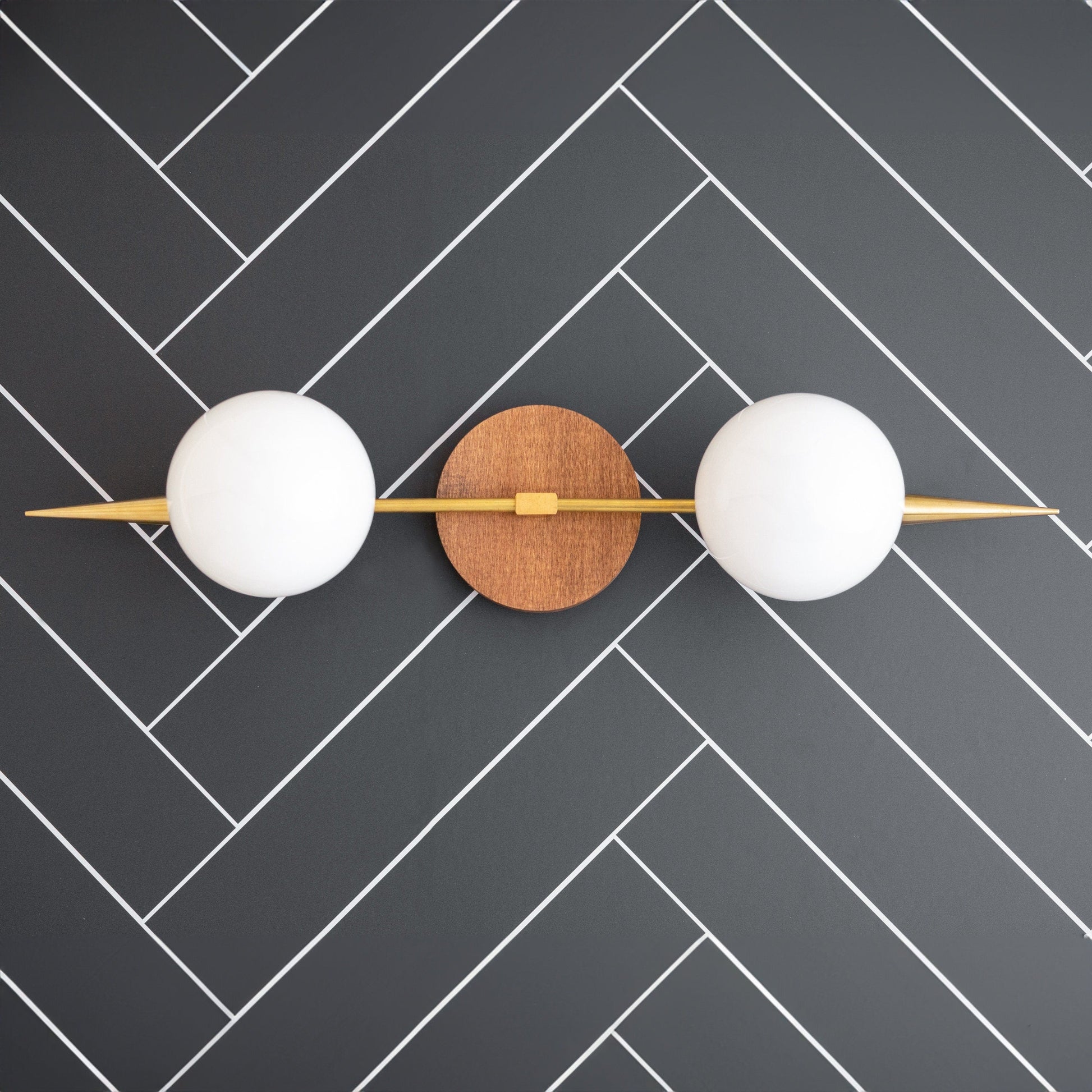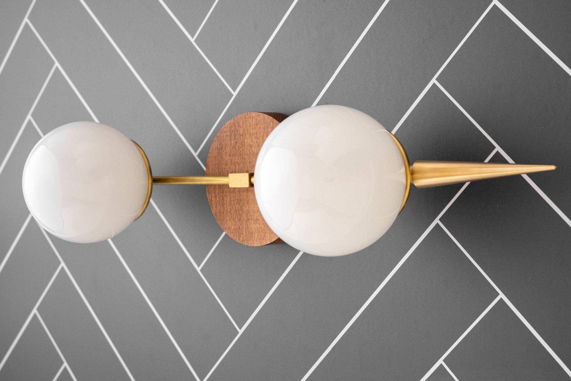 Glass Globe Vanity - Wood Sconce - Brass Light Fixture - Unique Lighting - Vanity Light - Model No. 4006