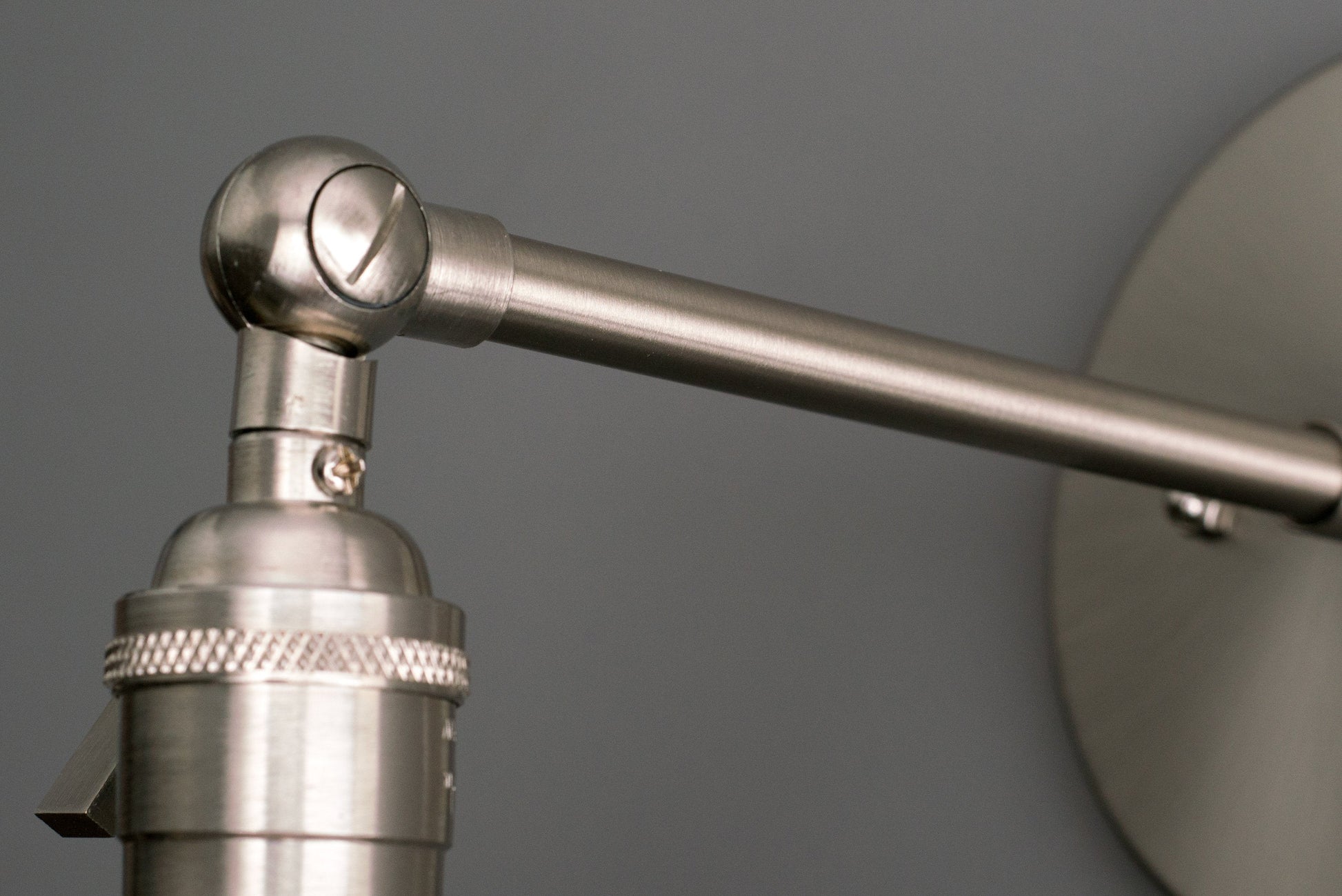 This industrial style wall sconce can be turned on/off using the key switch located on the socket. The shade tilt is adjustable from 90 to 180 degree.