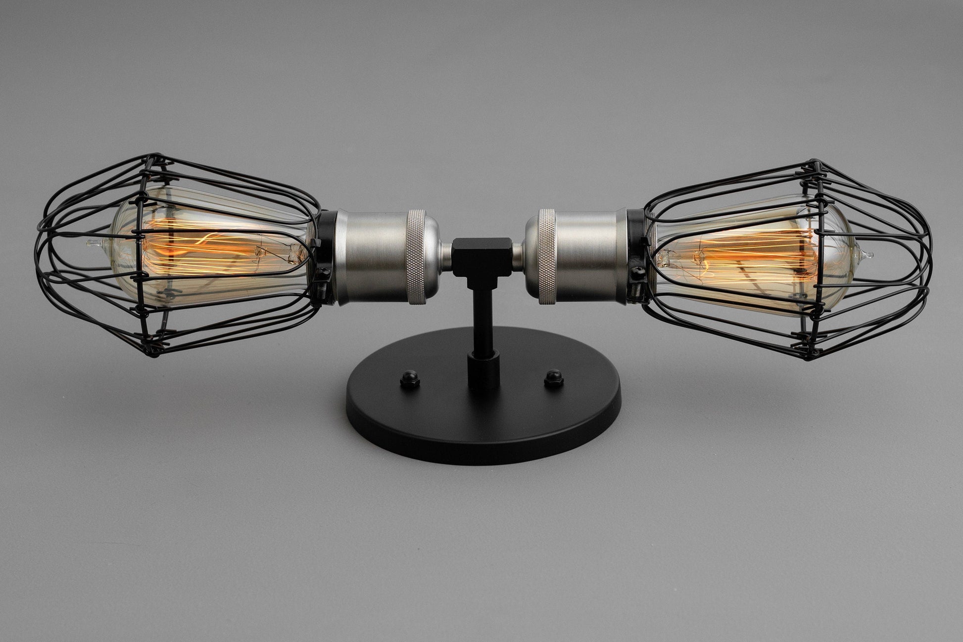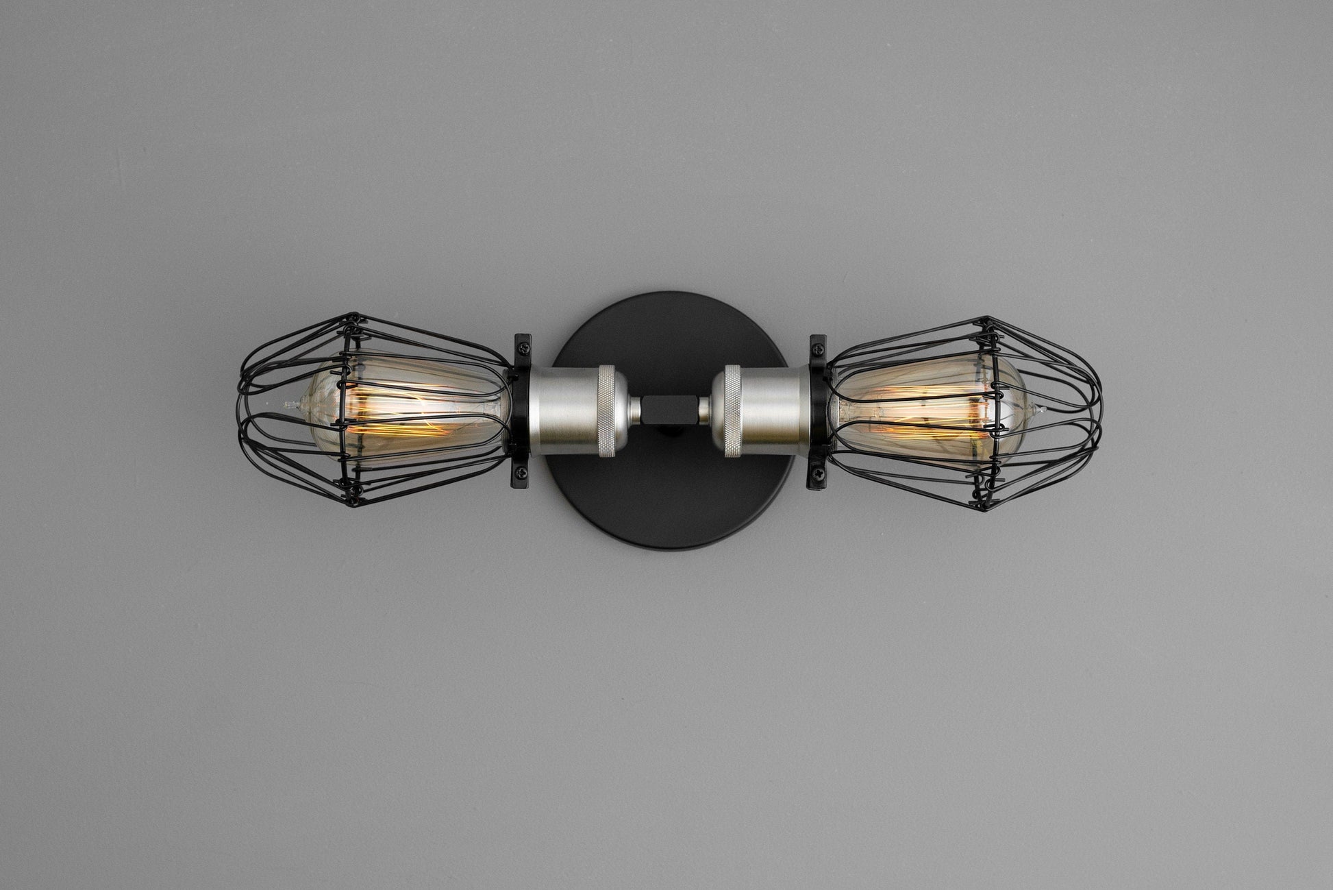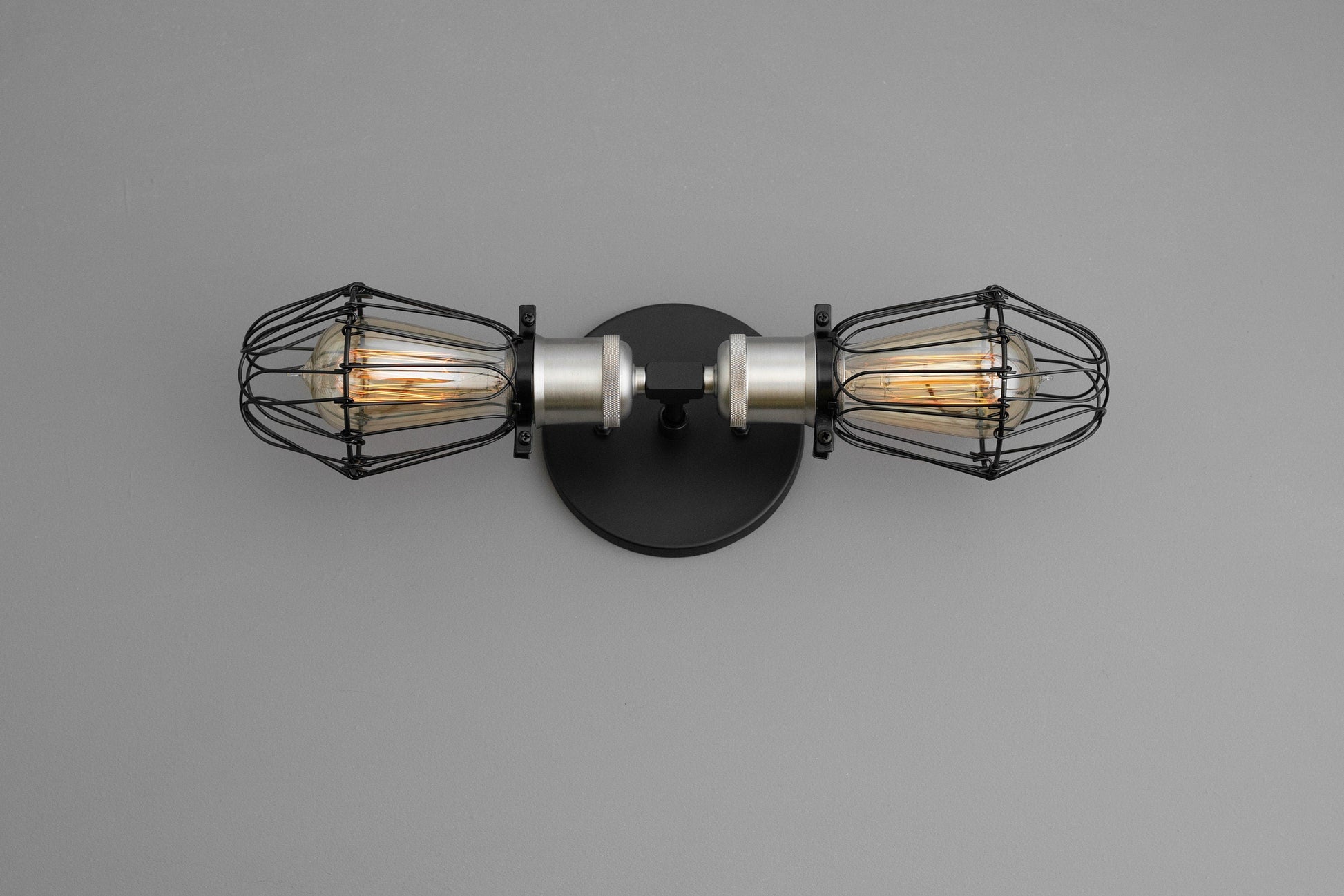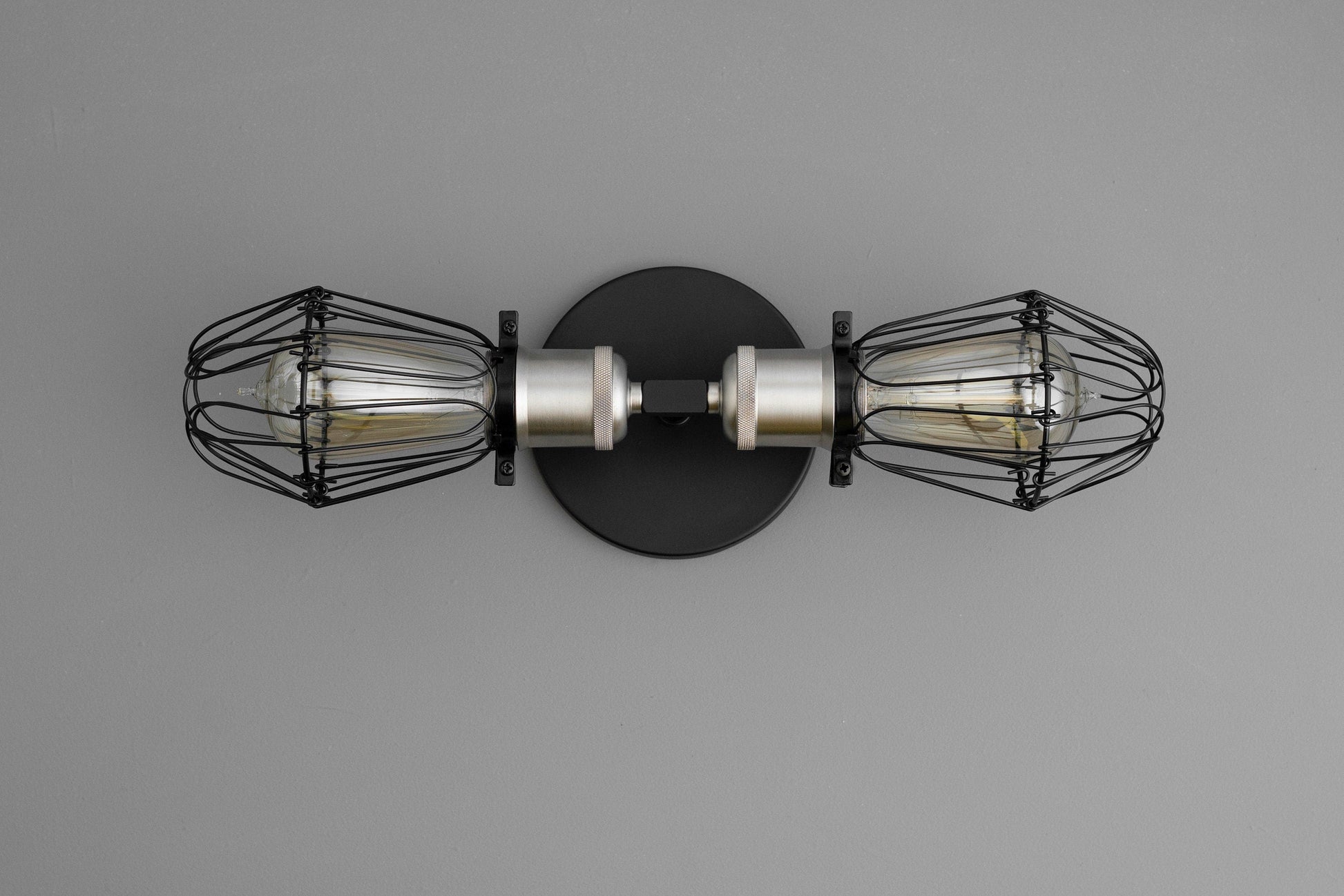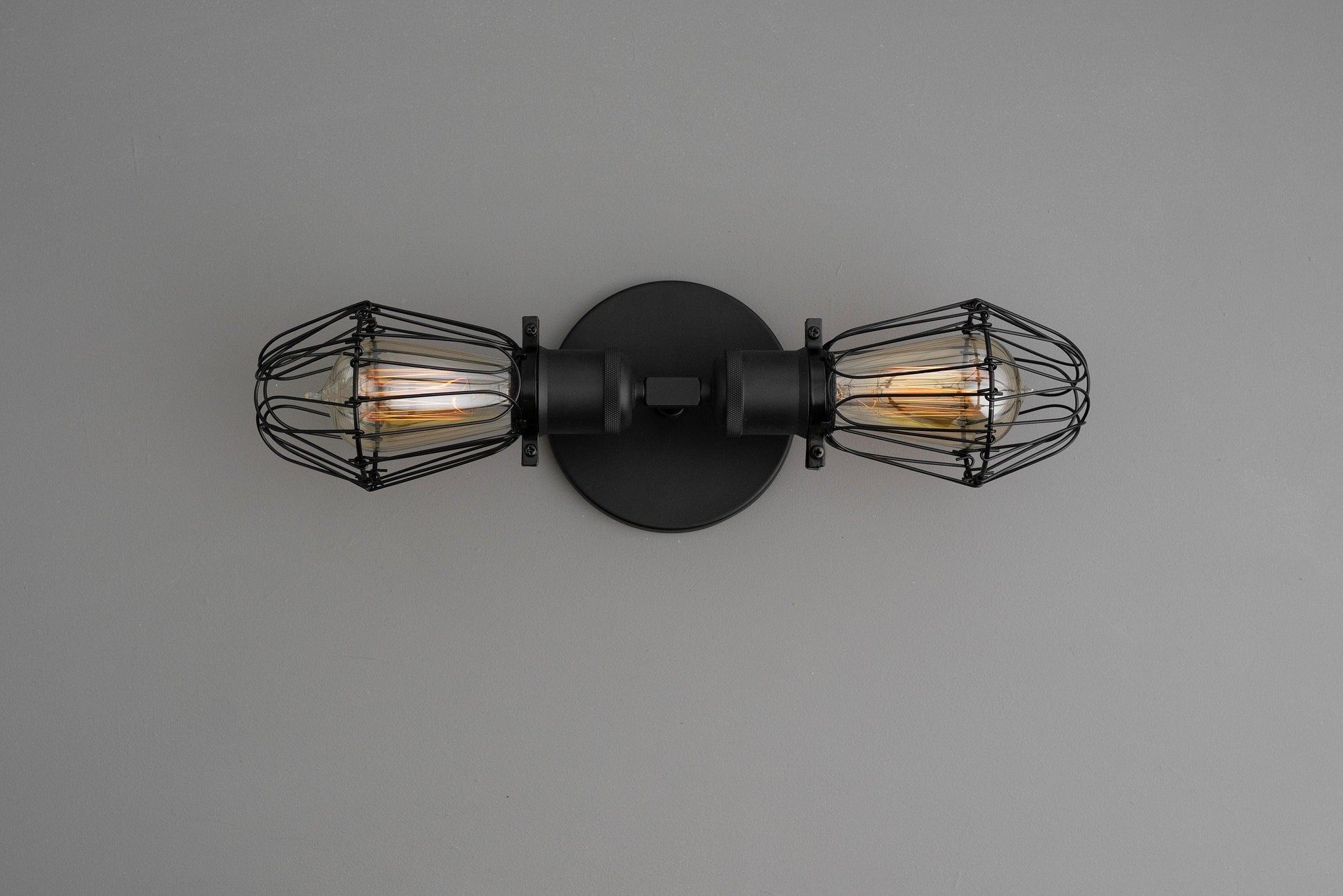 Industrial Vanity - Cage Sconce - Vintage Bulb Light - Two Bulb Wall Light - Industrial Bathroom - Light Fixture - Bulb Cage