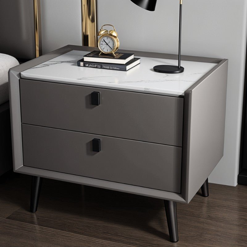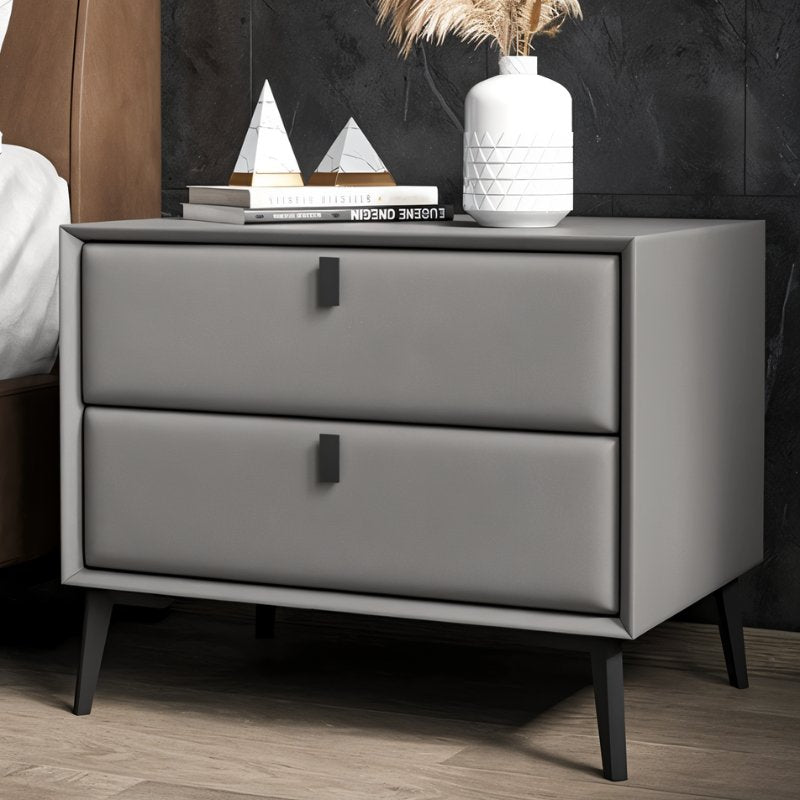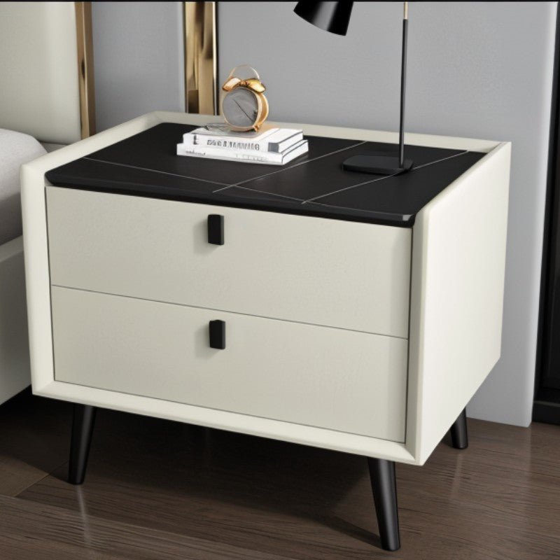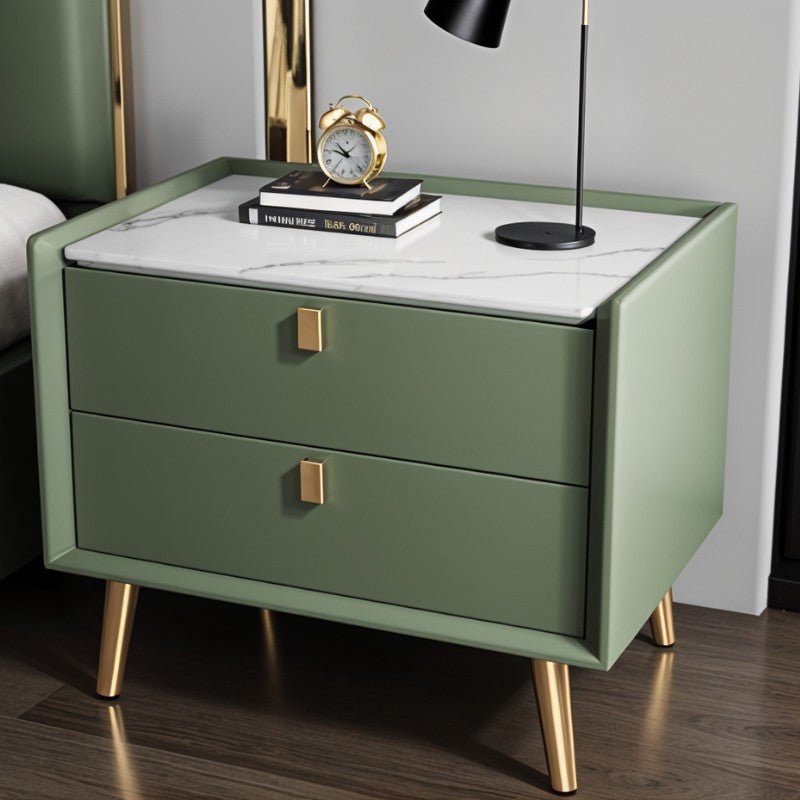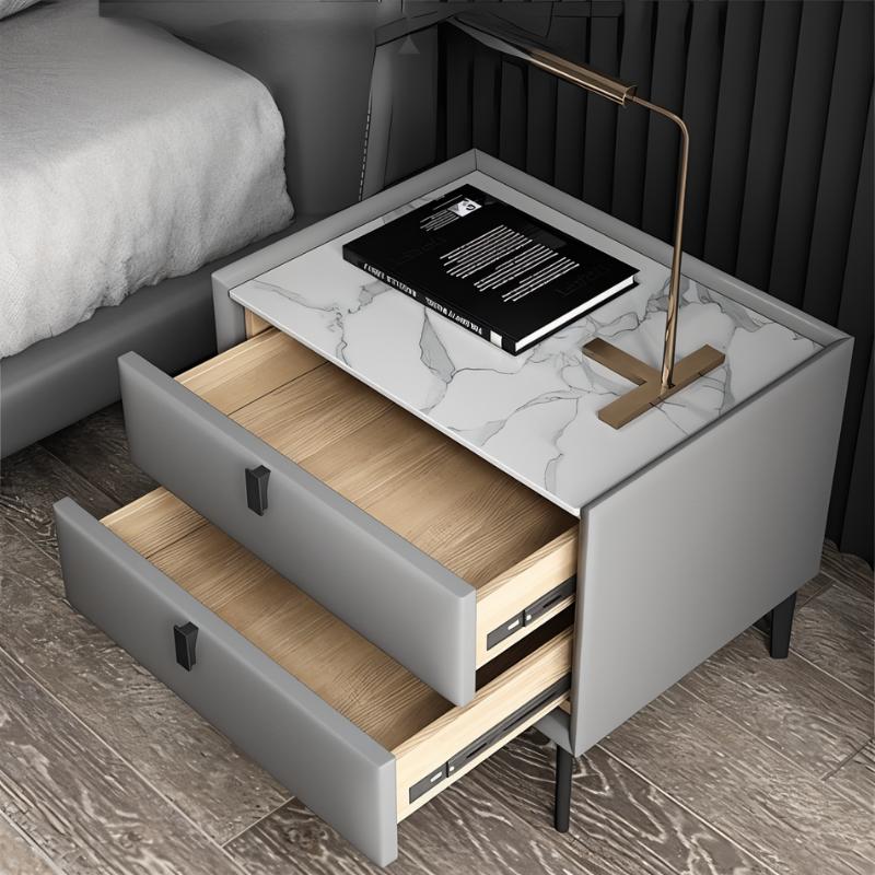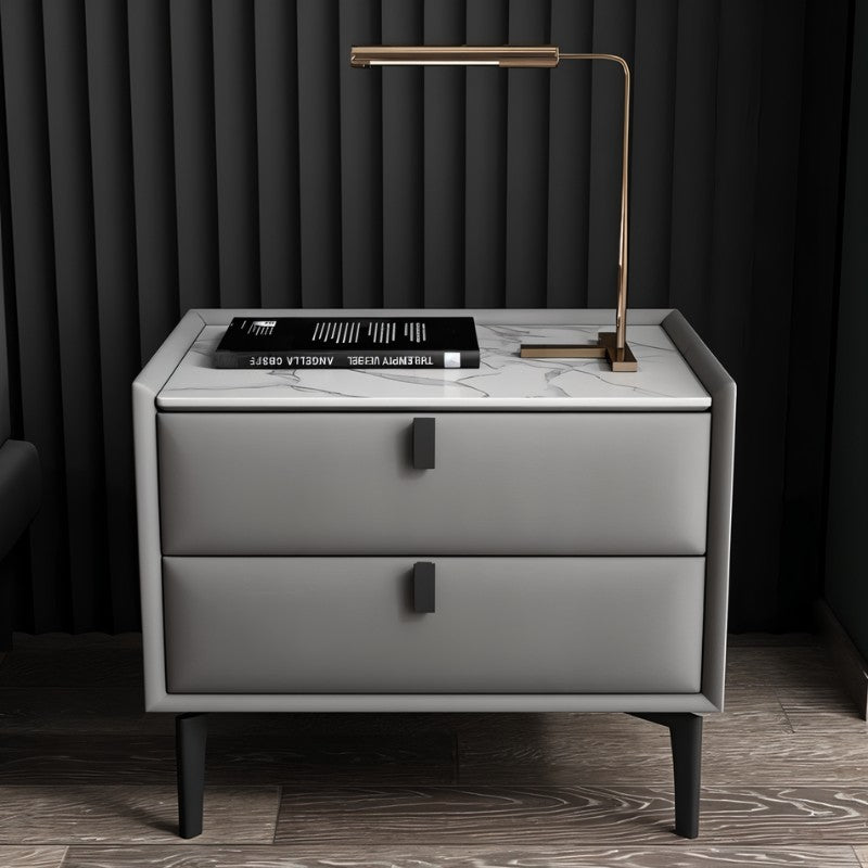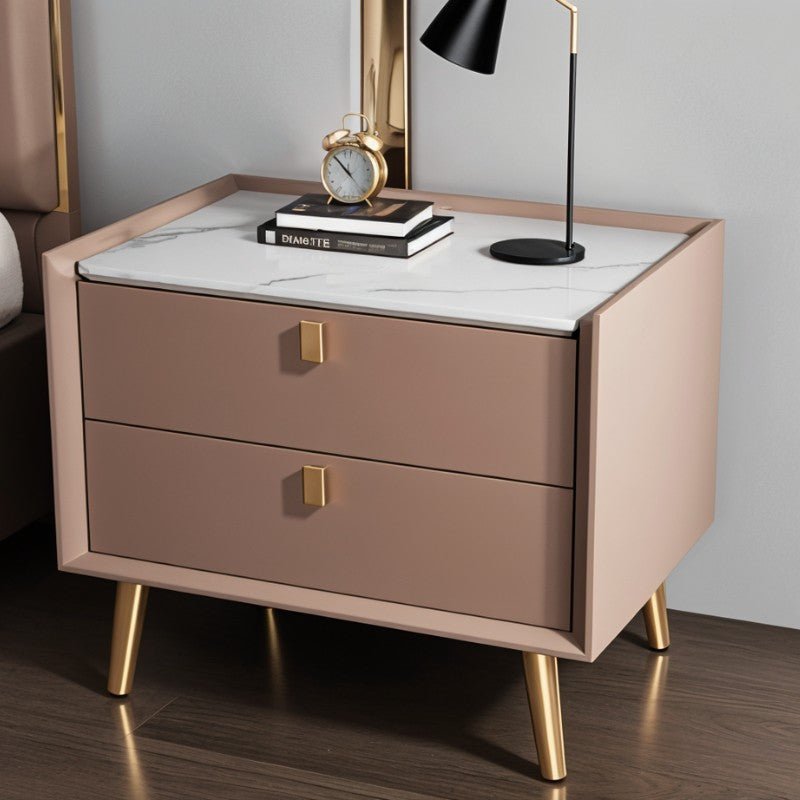 The Luam Side Table is the ideal complement to your bedside essentials. This table has a straightforward design and clean lines, featuring a rectilinear design with two roomy drawers for storing all of your bedside necessities securely in one spot. Constructed of high-quality solid wood dressed up in leather, it has solid frosted feet, that come in gold and matte black colors. It is provided with a pull handle that makes it easier to access the drawers. Available in a variety of colors with two different styles of corresponding table tops, Luam accents your bedroom decor every which way and perfectly complements other pieces of furniture in your bedroom.