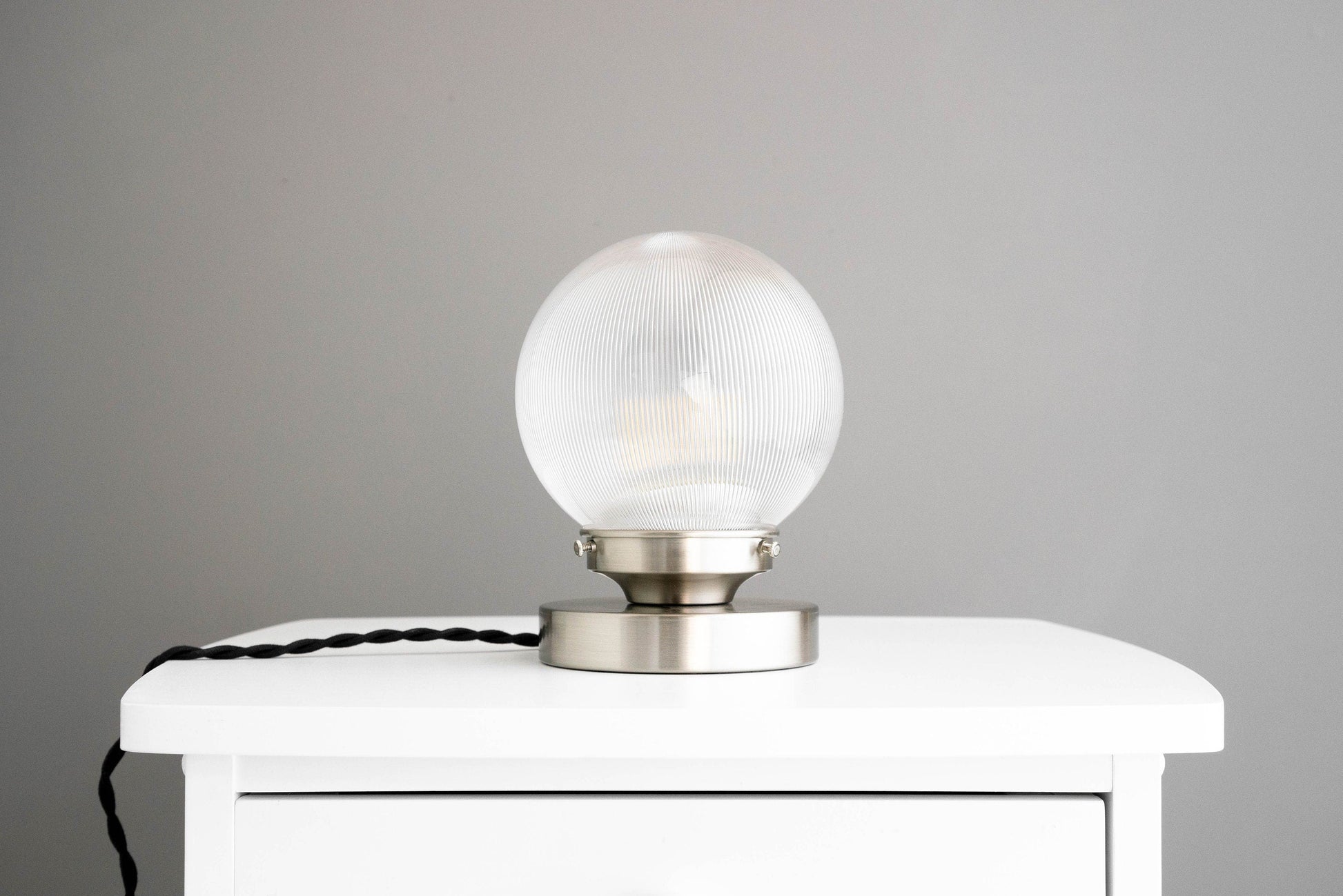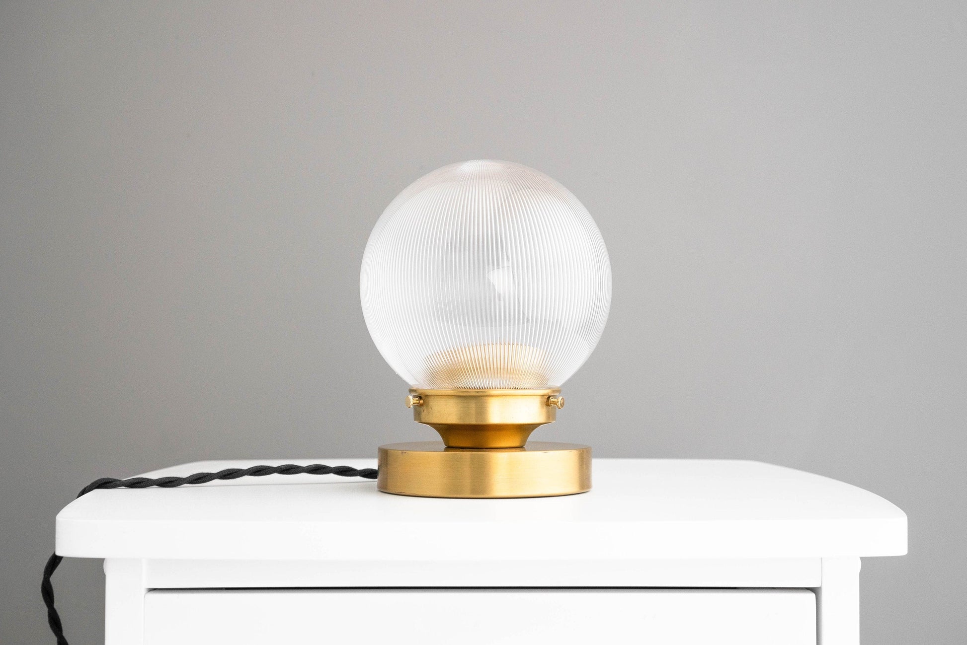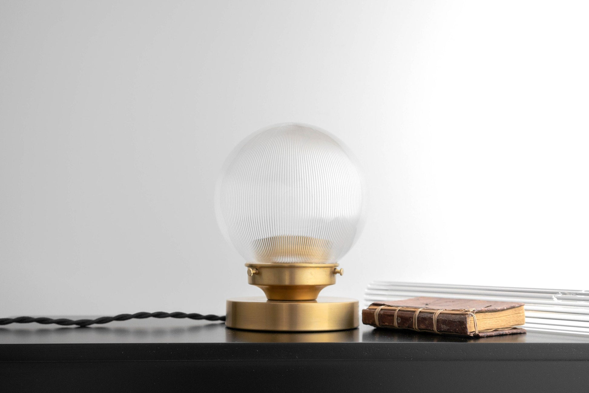 This minimalist table lamp features our 6" acrylic prismatic globe. The lacquered brass base comes in multiple other finishes to match any style or decor. If you are looking for a lamp that will cast light with personality into your unique spaces, look no further. This prismatic globe will look great in the daytime and bring a magical element to the dark spaces in the evening.