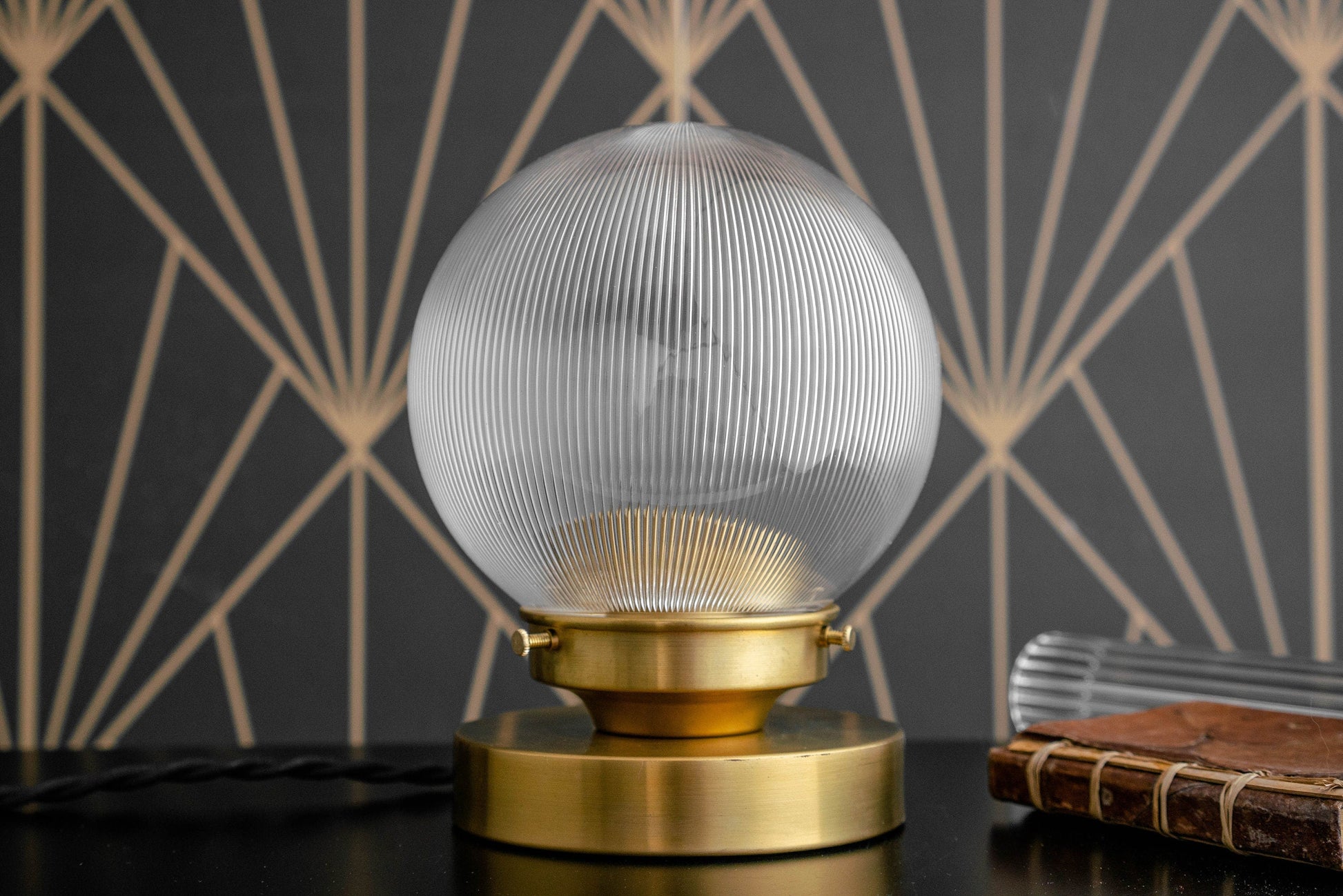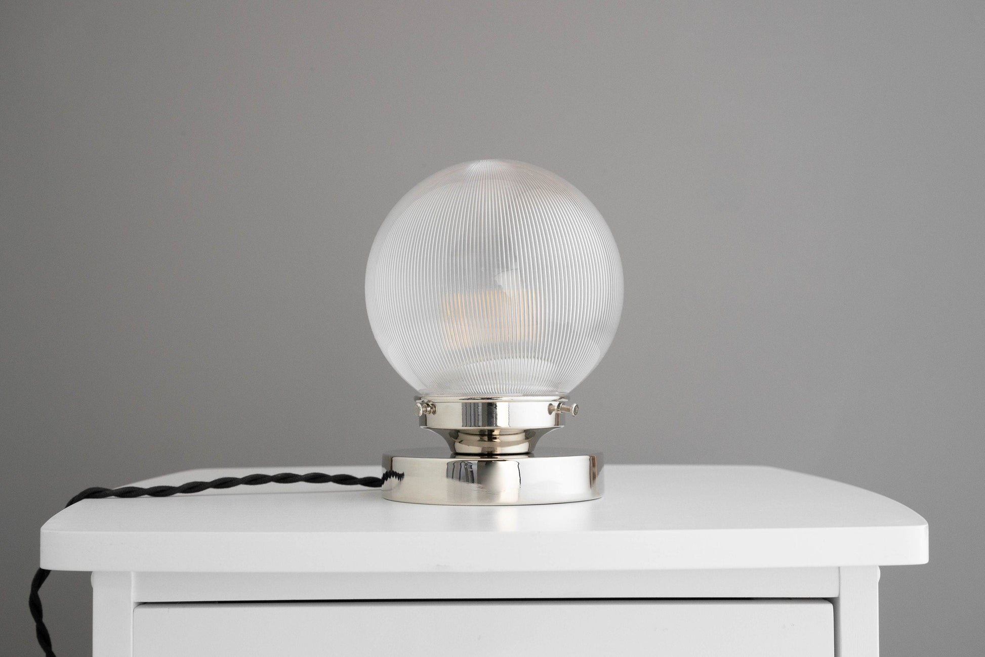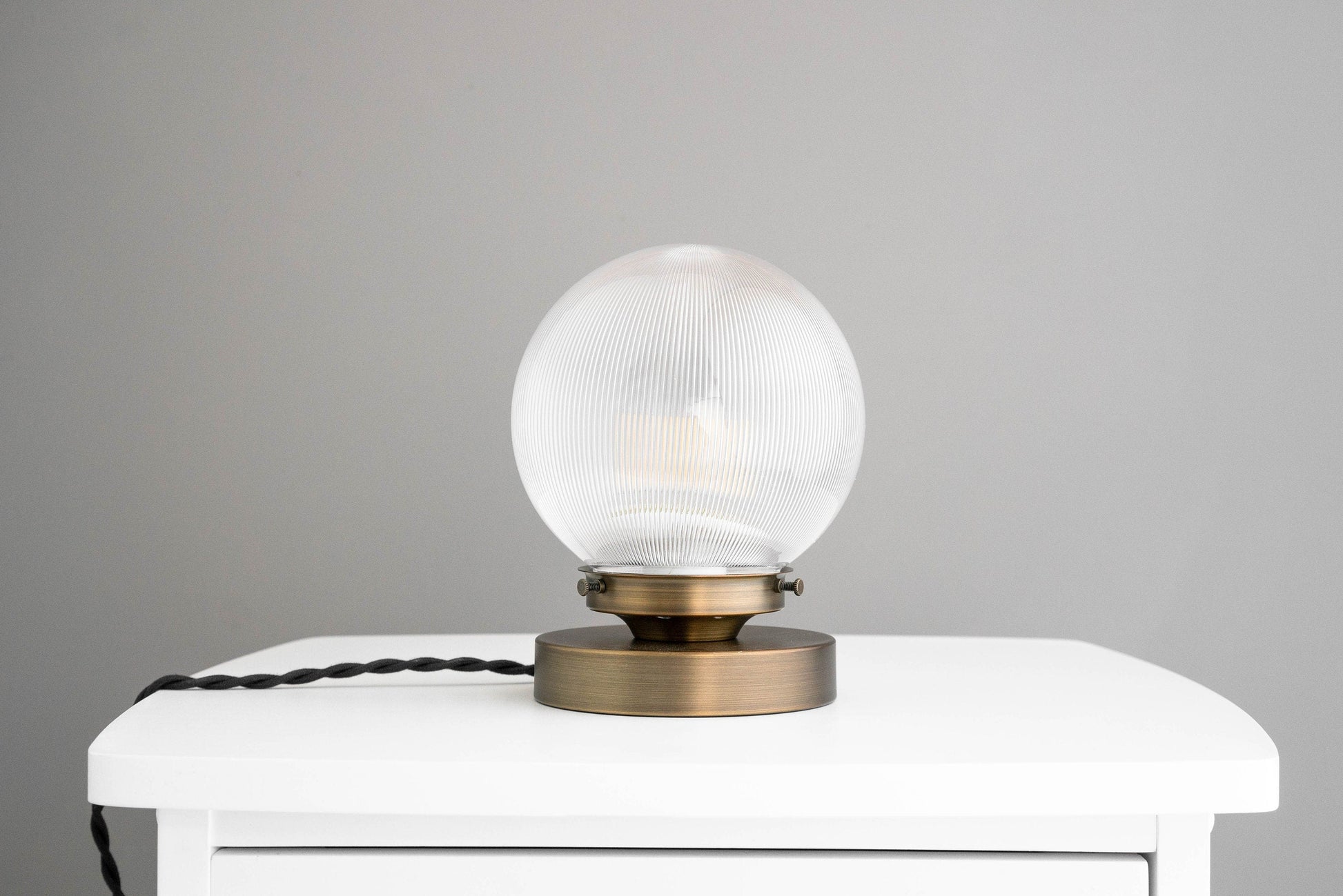 This minimalist table lamp features our 6" acrylic prismatic globe. The lacquered brass base comes in multiple other finishes to match any style or decor. If you are looking for a lamp that will cast light with personality into your unique spaces, look no further. This prismatic globe will look great in the daytime and bring a magical element to the dark spaces in the evening.