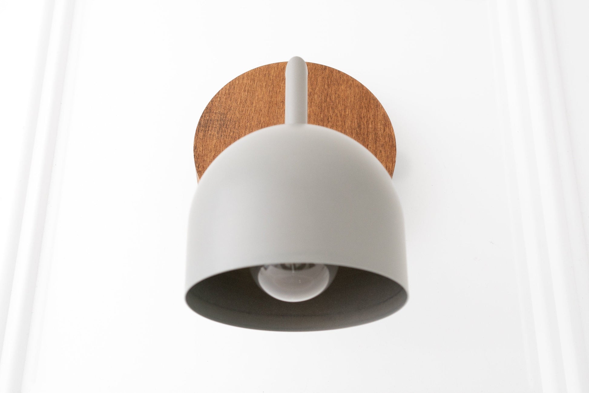 This Scandinavian inspired sconce light fixture features a dark oak stained beechwood canopy backplate.