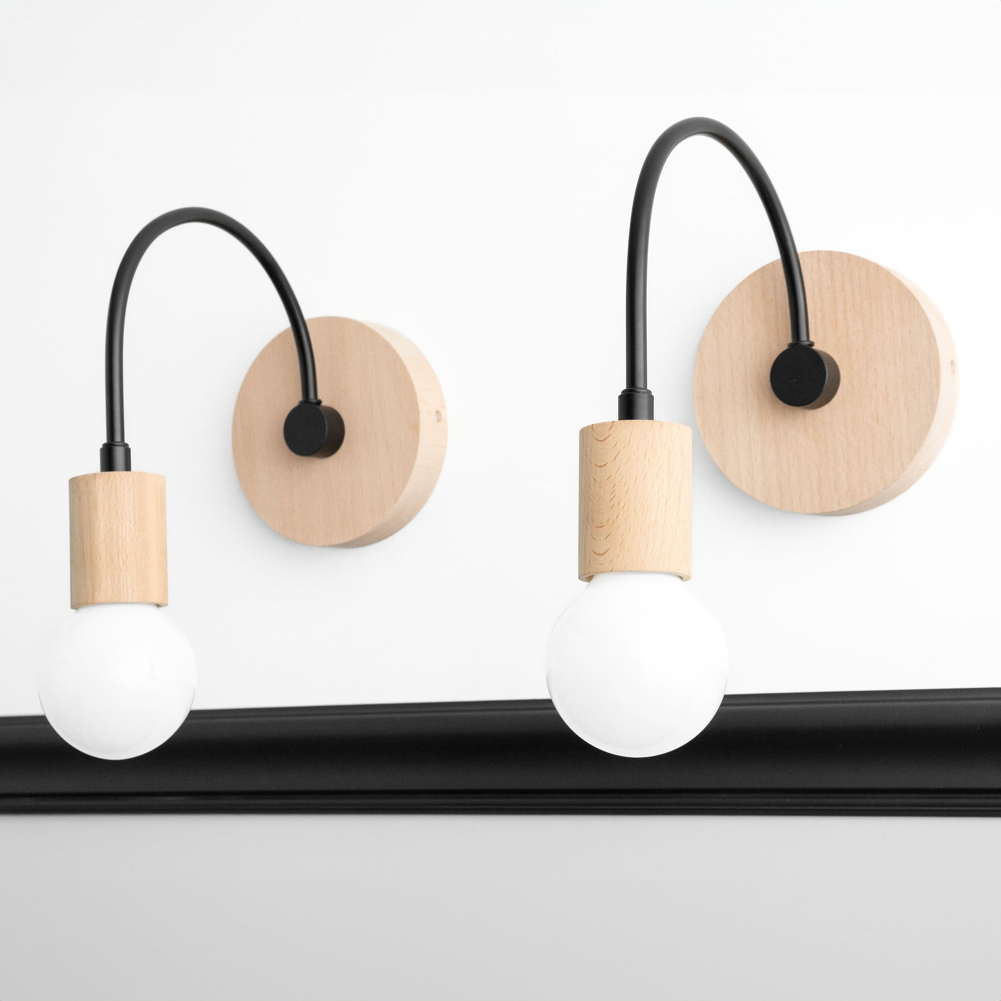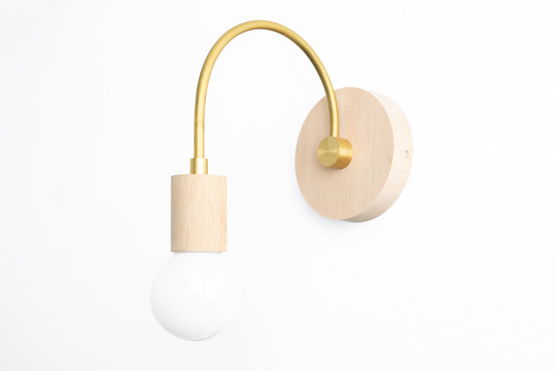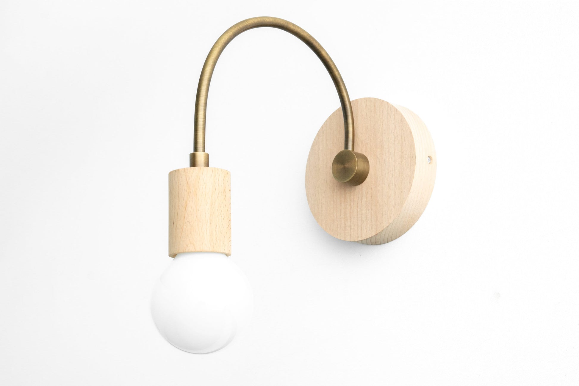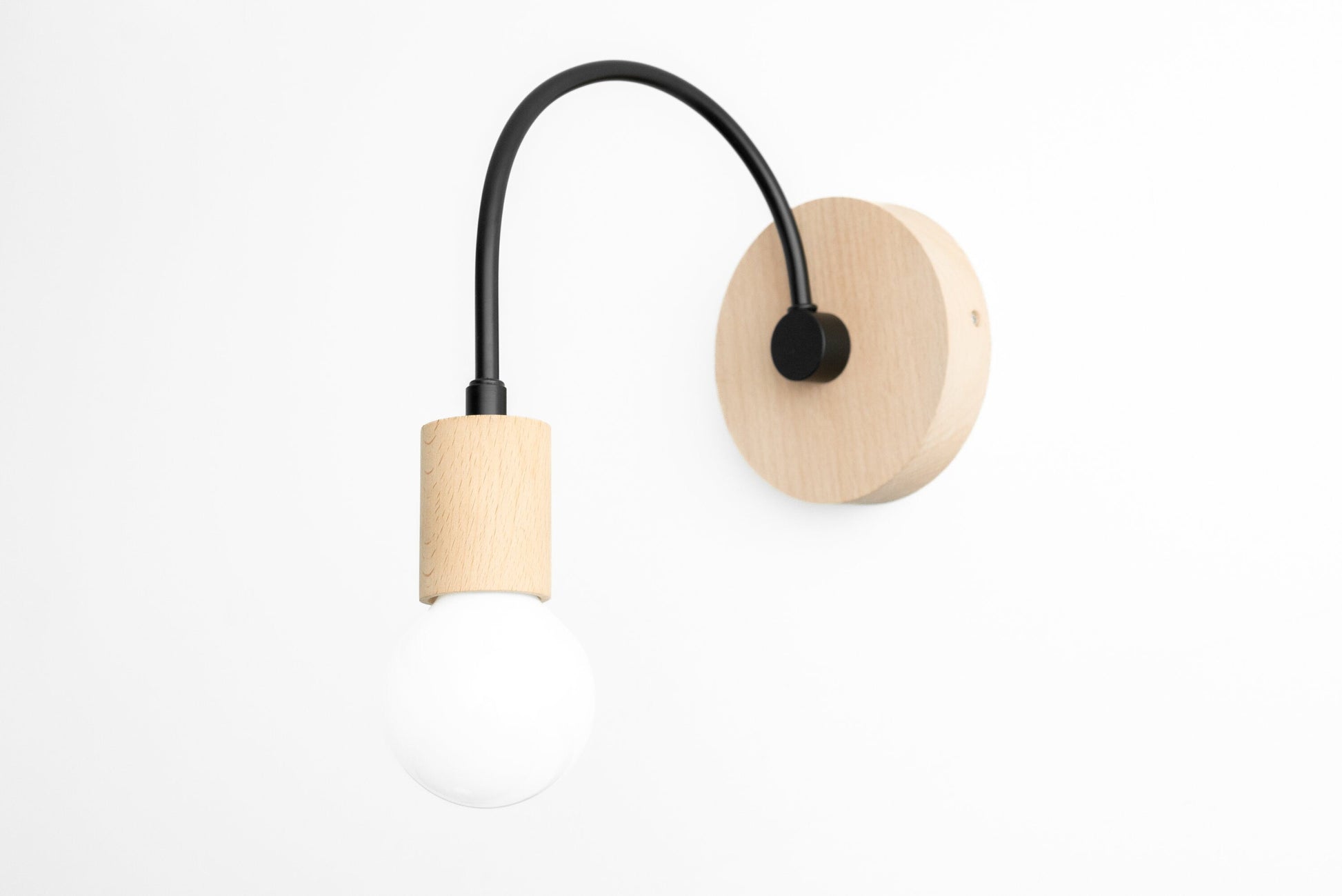 This Scandinavian inspired curve wall sconce features natural beech wood and a 7.5" diameter curved lamp arm.
