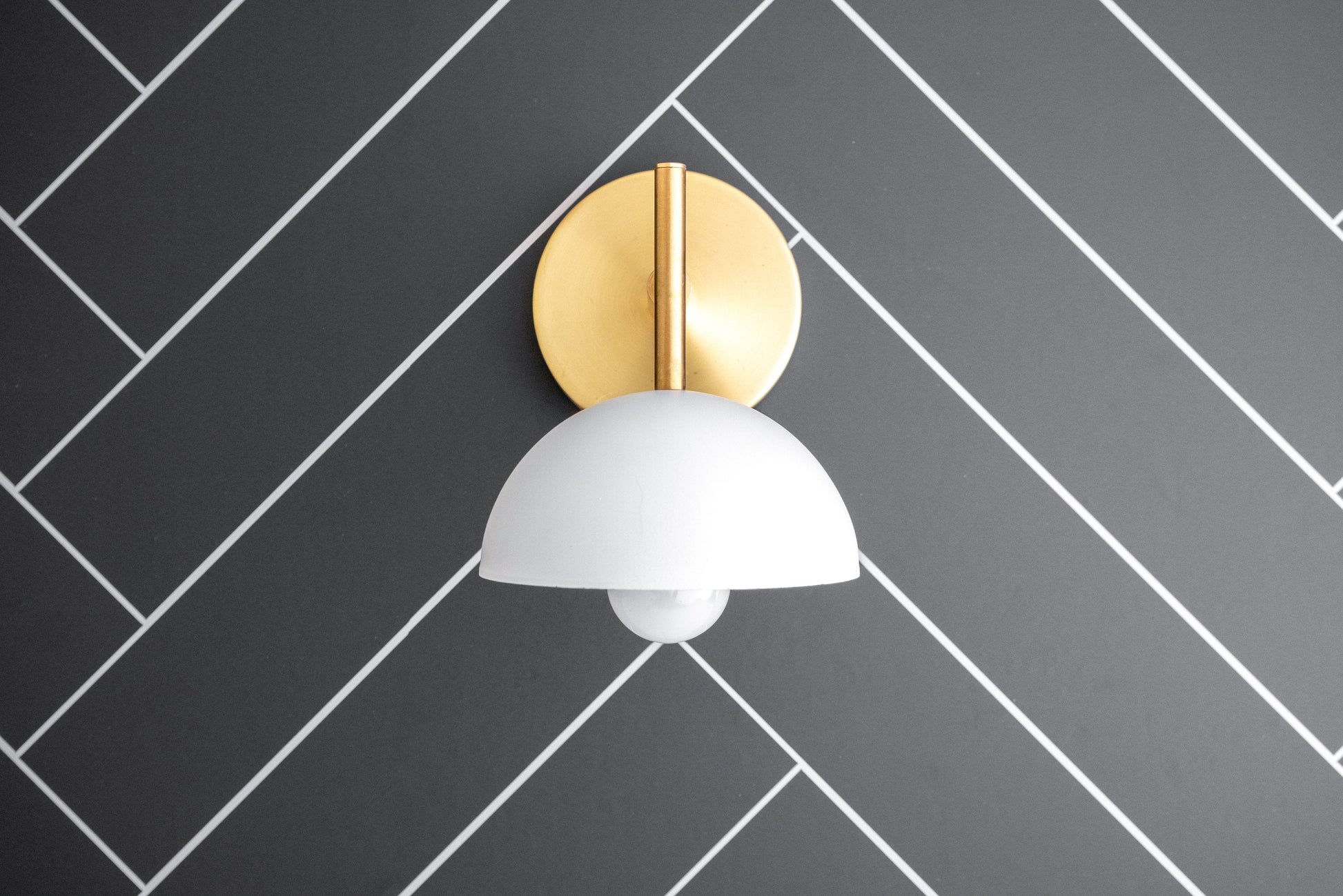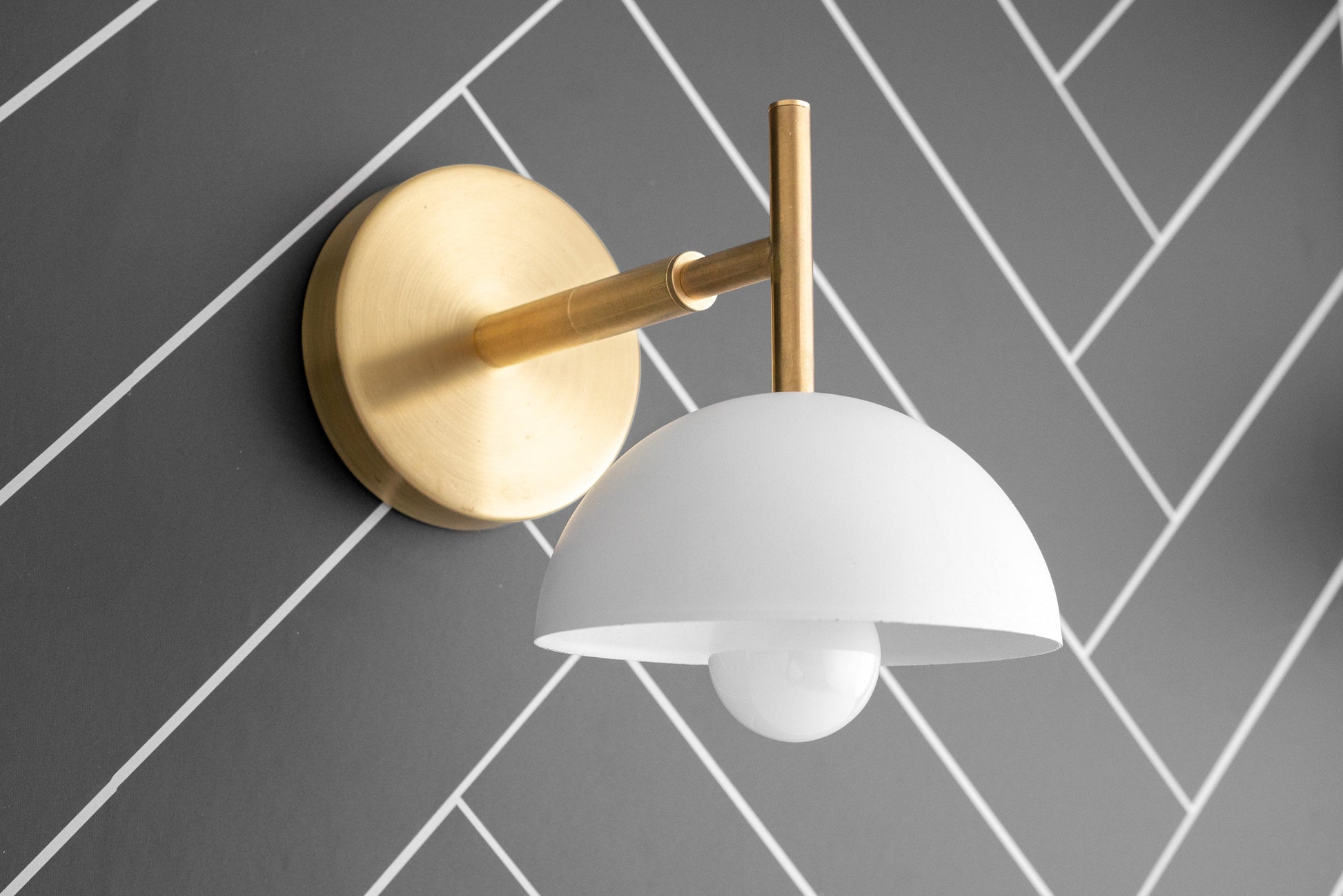 This unique Scandinavian inspired wall sconce features a 6inch matte finish white dome shade.