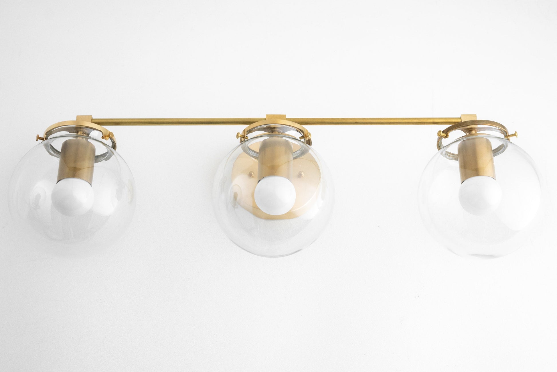 Modern Globe Vanity - 3 Shades - Soft Brass Light - Bathroom Fixture - Globe Fixture - Home Lighting - Makeup Light - Model No. 4357