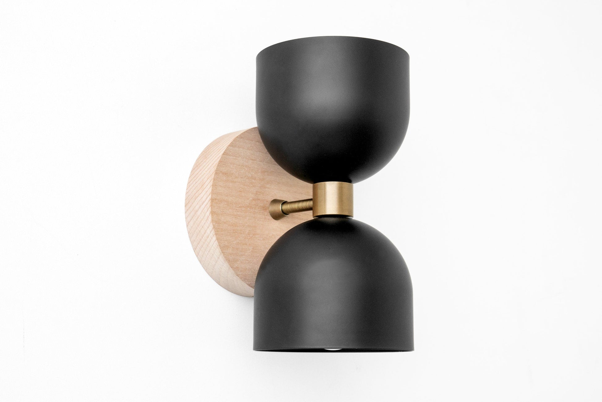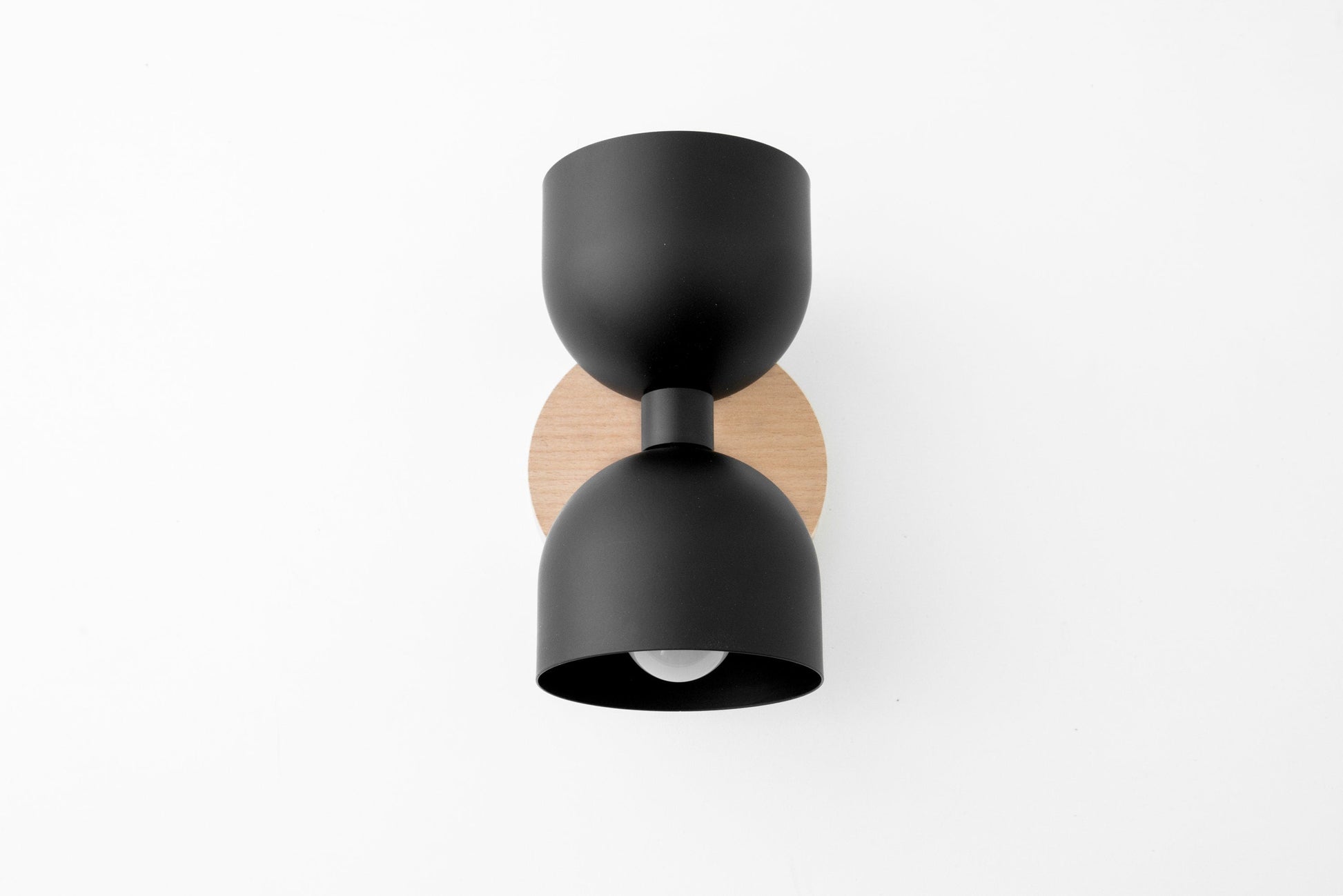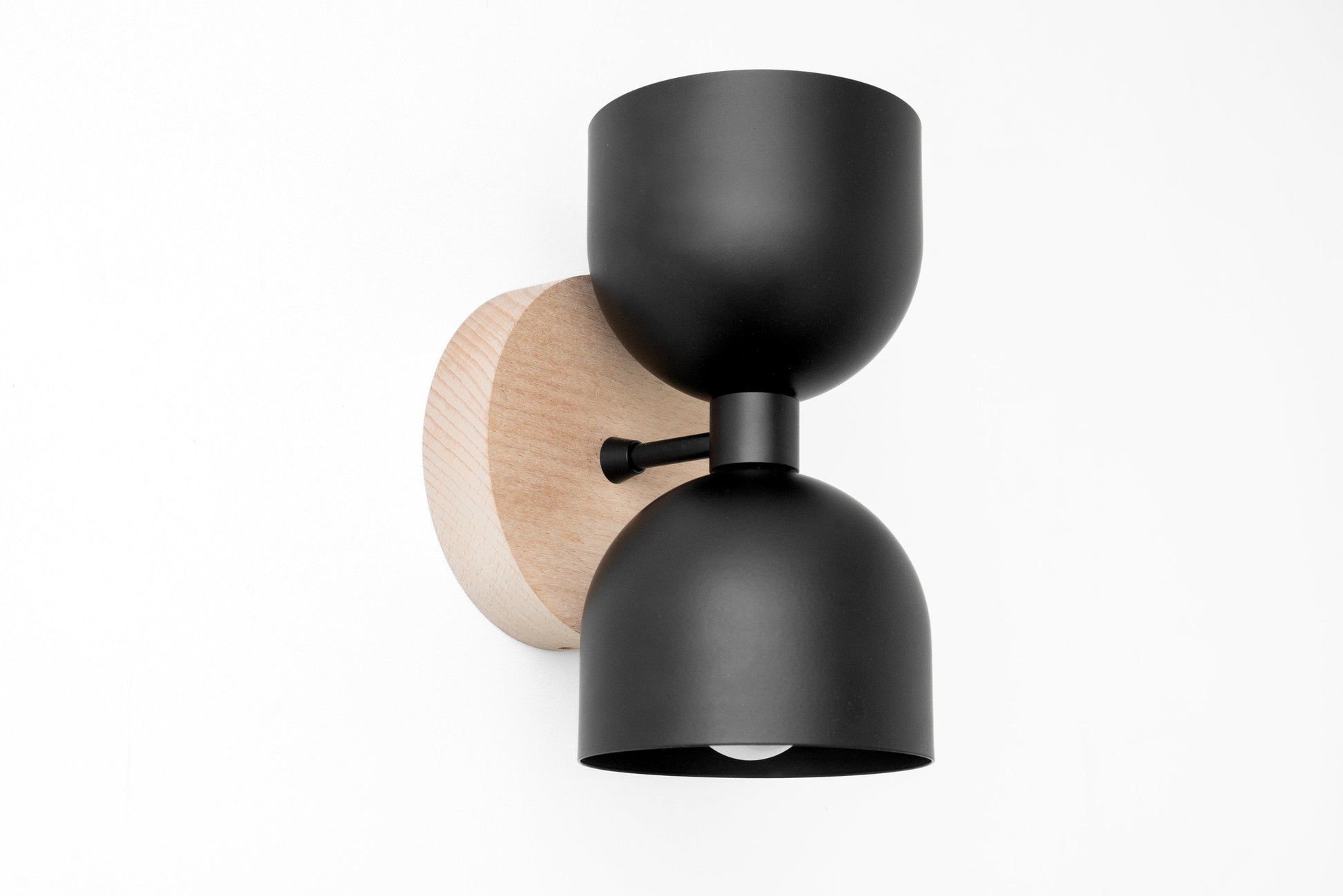 This wall sconce features a unique blend of Midcentury and Scandinavian design. The mounting plate is constructed of light natural beechwood.