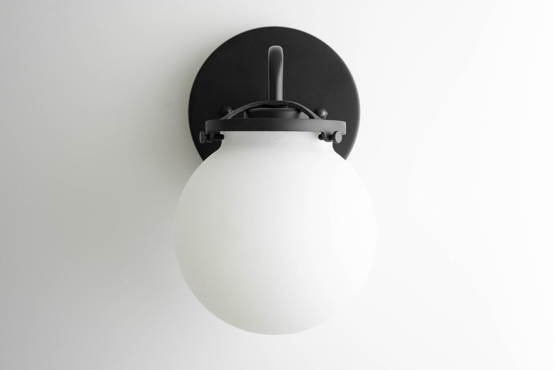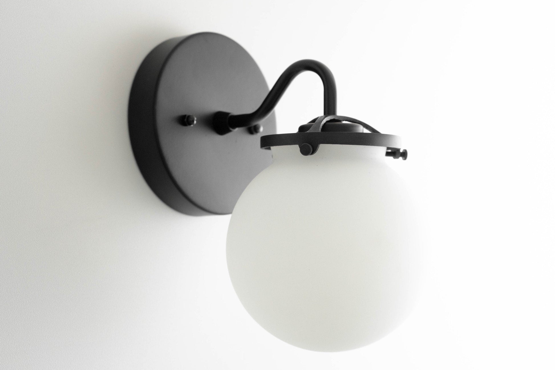Small Modern Sconce - Black Wall Sconce - Frosted Glass globe - Bathroom Wall Sconce - Modern Wall Sconce - Lighting - Model No. 3772