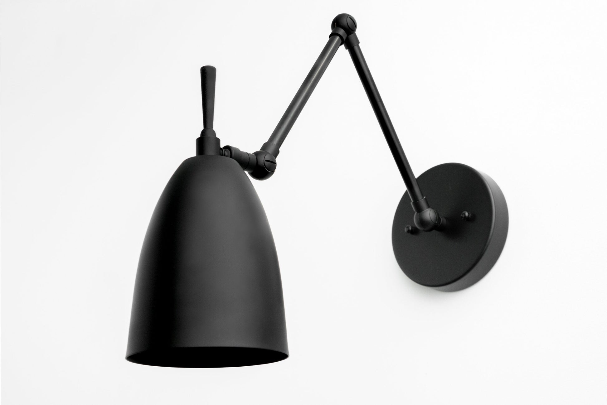 This modern deco 1 bulb sconce features articulations and an adjustable cone shade.