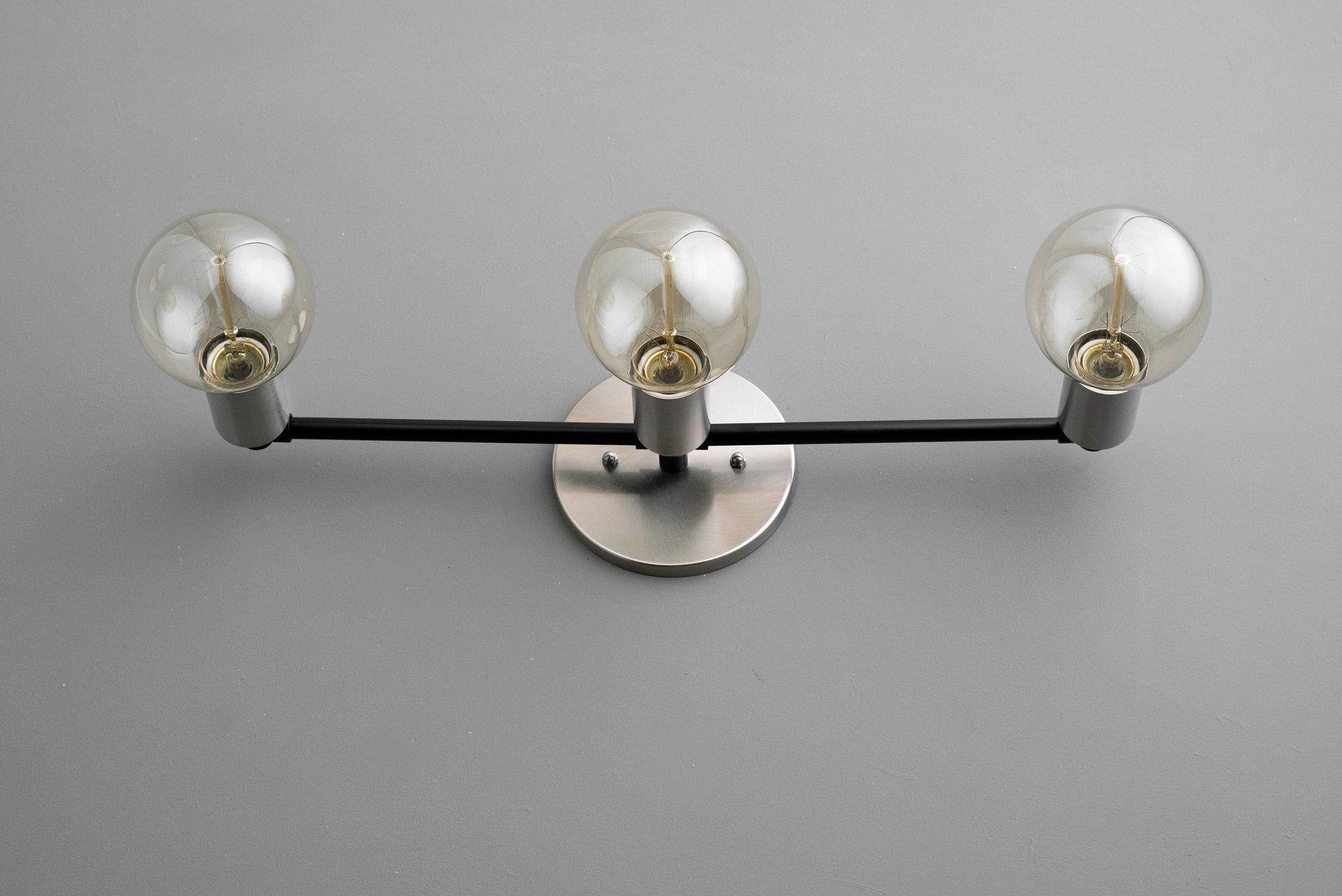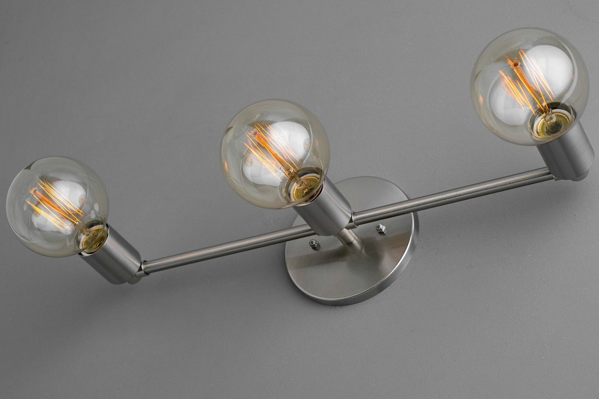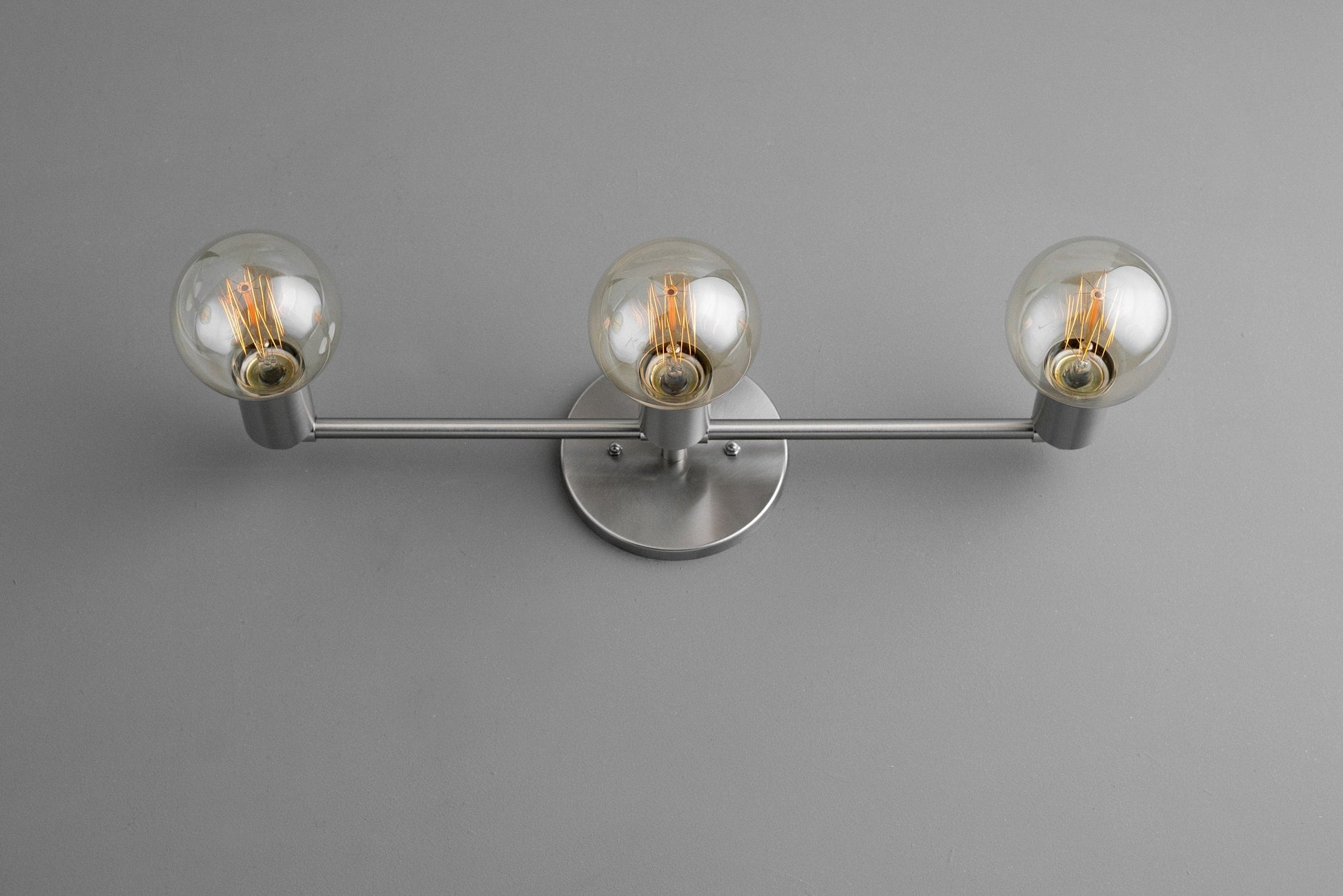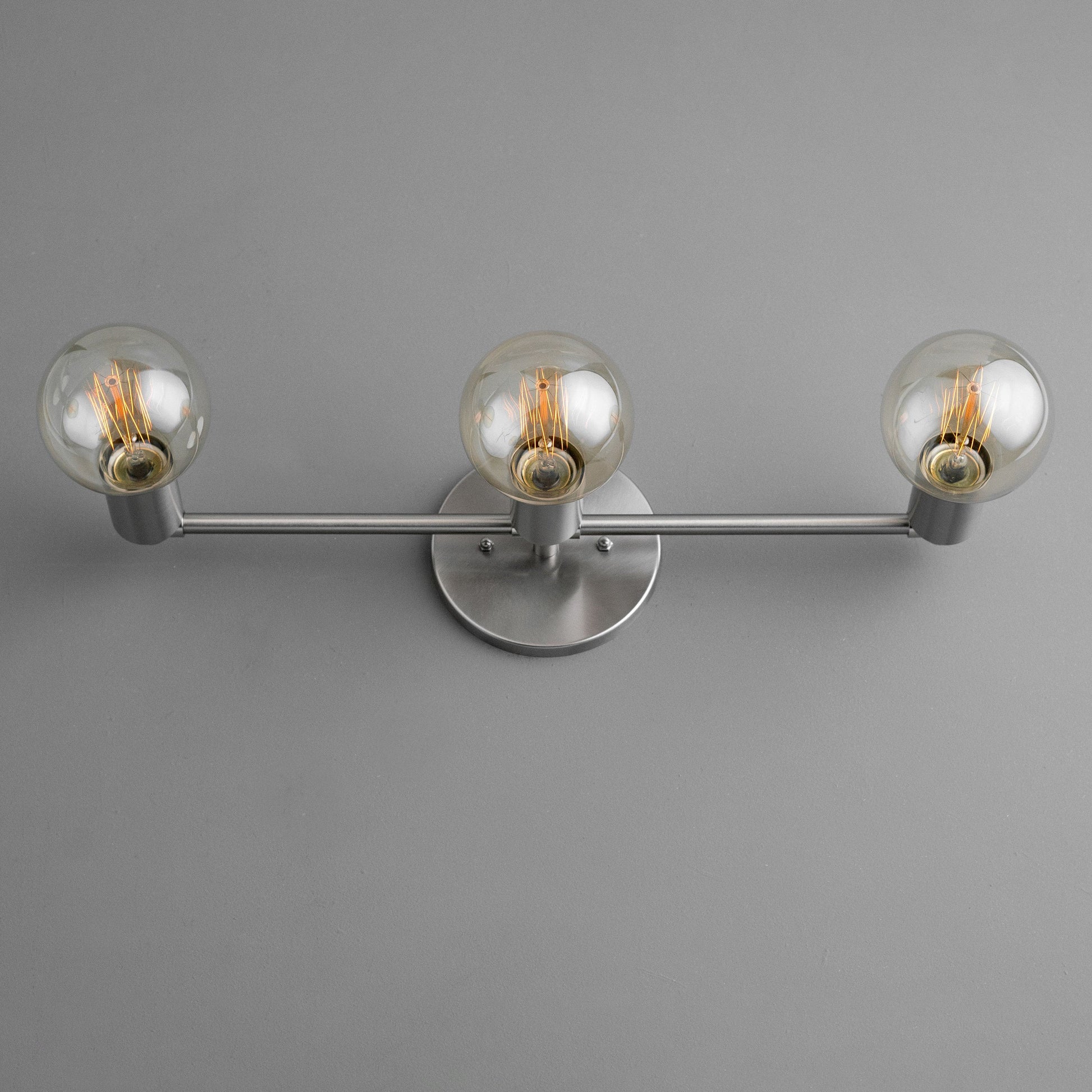 Three Bulb Vanity Light - Edison Bulb - Bare Bulb - Brushed Nickel - Minimalist Vanity - Bathroom Light Fixture - Industrial Lighting