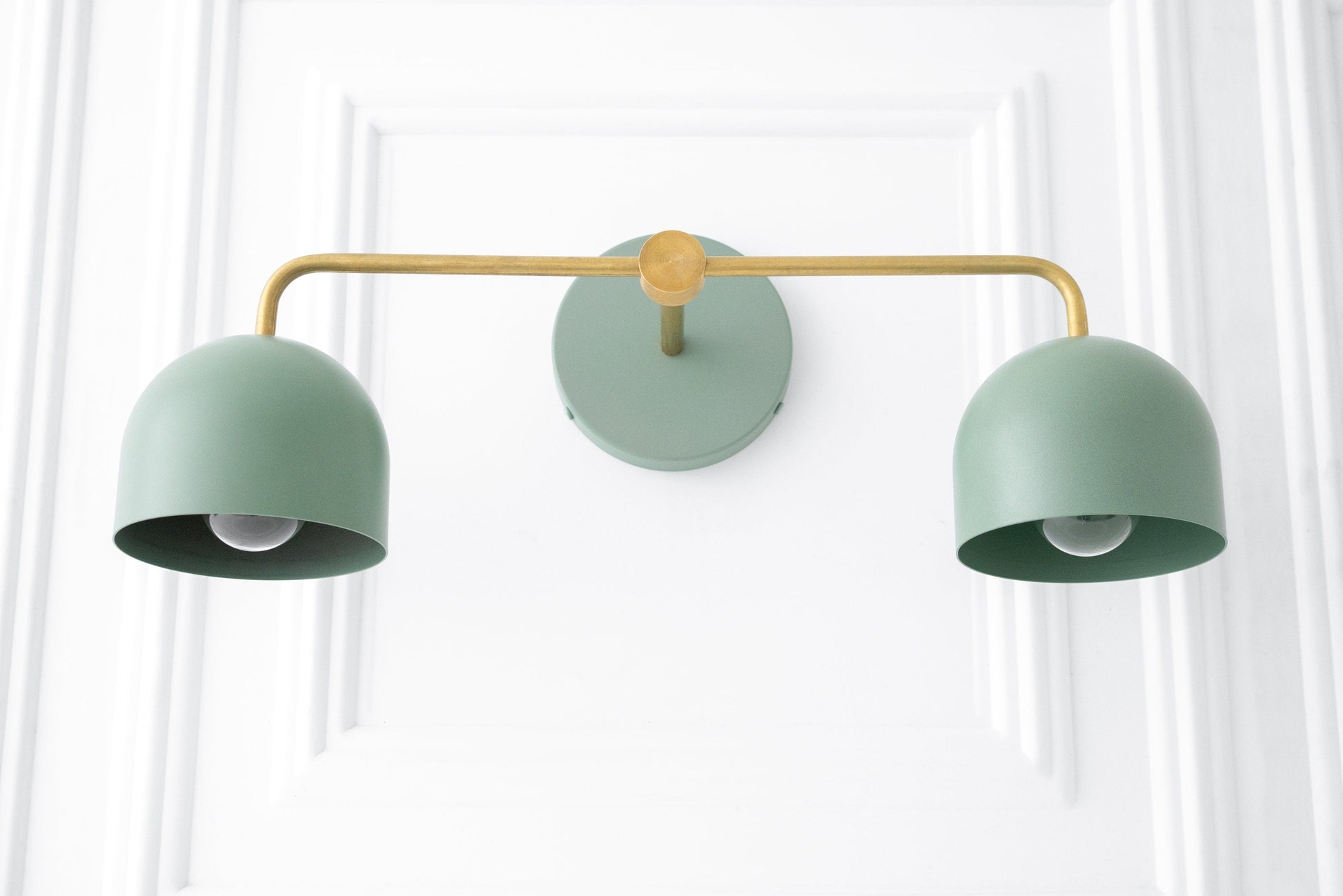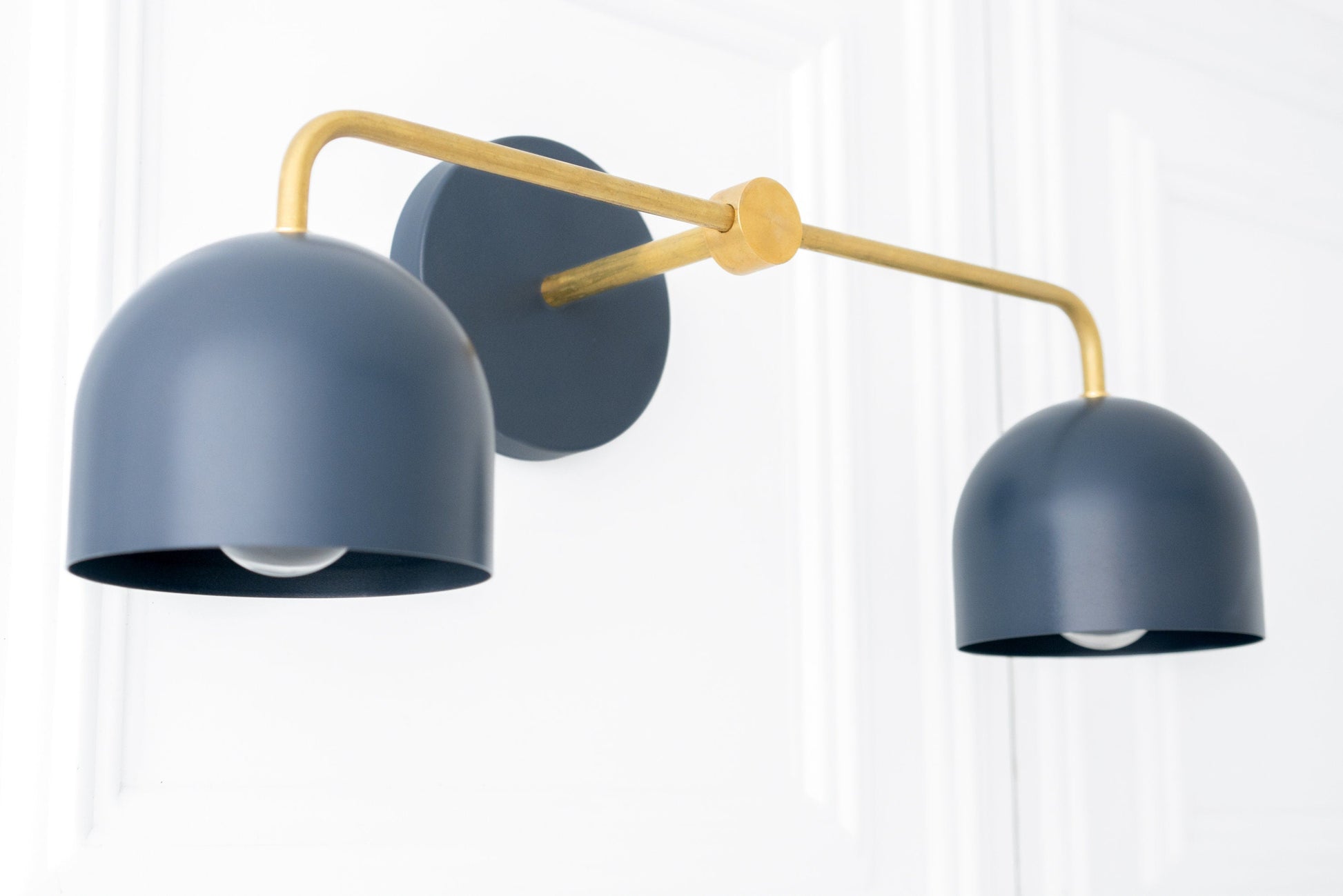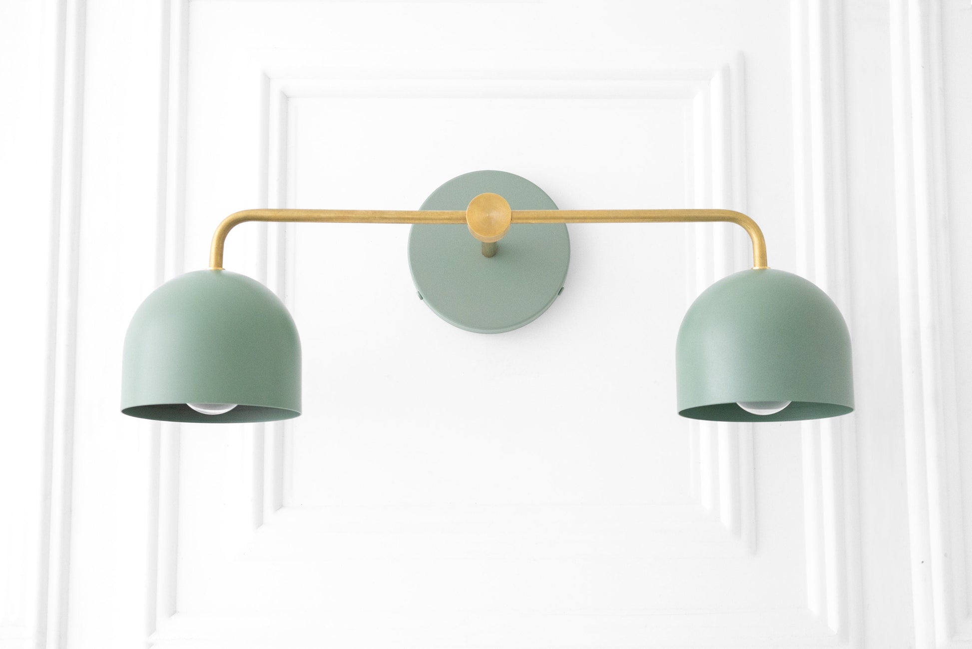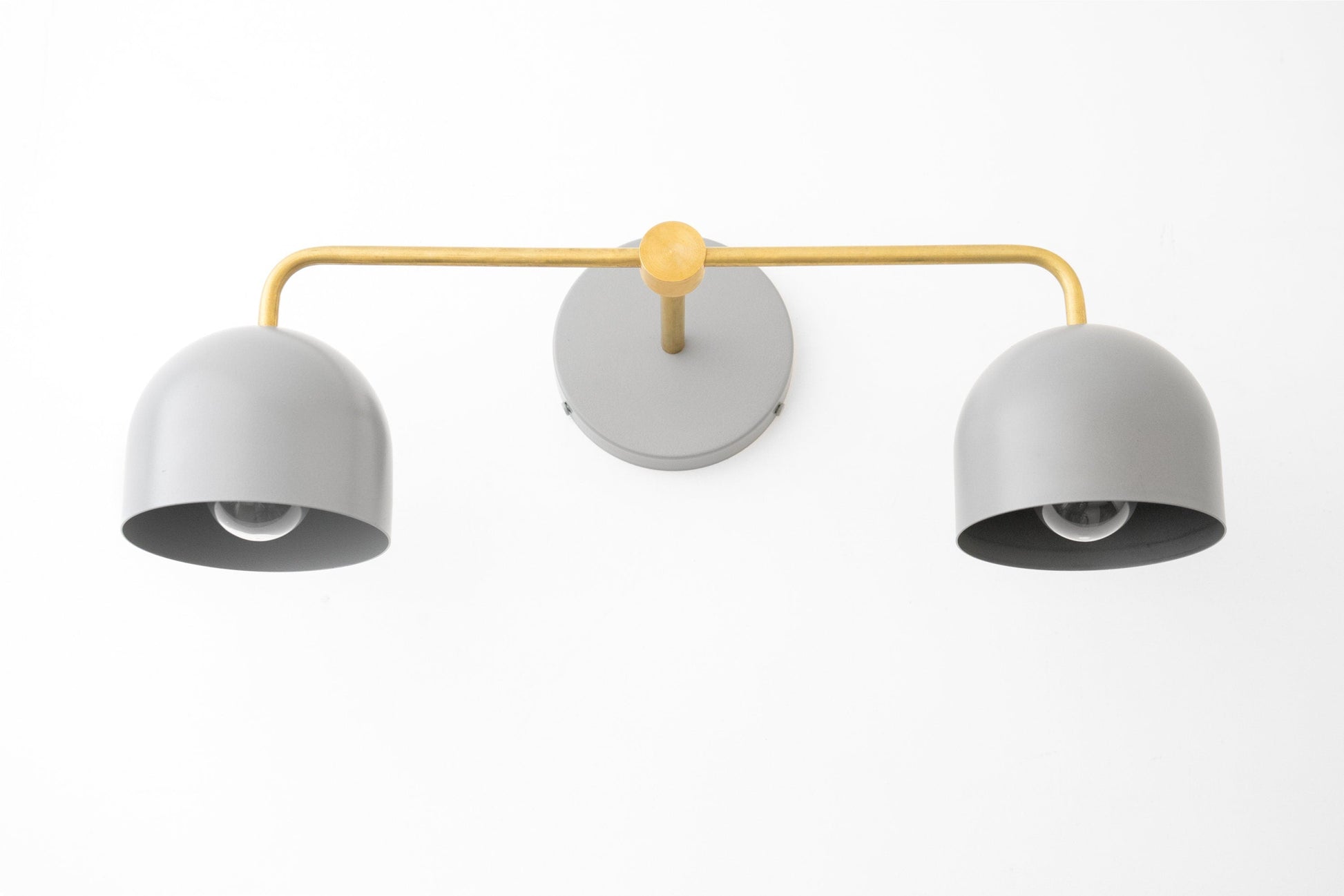 This Scandinavian inspired vanity light fixture features raw unfinished brass or sealed brass with your choice of shade and canopy backplate color.