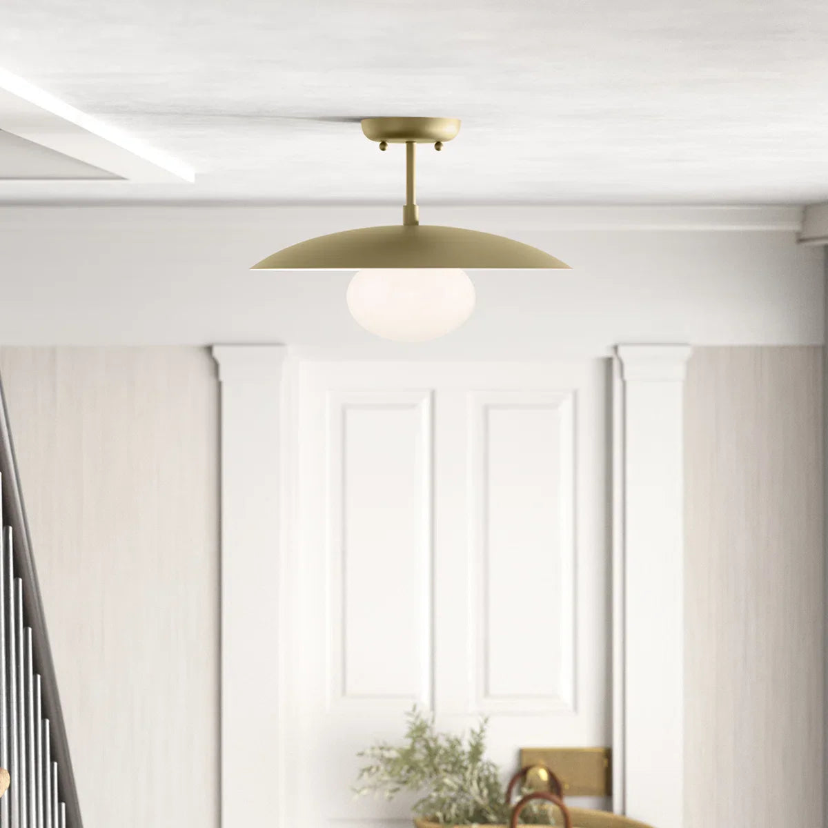 The Vianne Semi Flush Mount Light features a sleek canopy and slender downrod for a clean, modern look. Frosted glass softens the glow while a white undercoat adds subtle polish. Ideal for bedrooms and hallways.