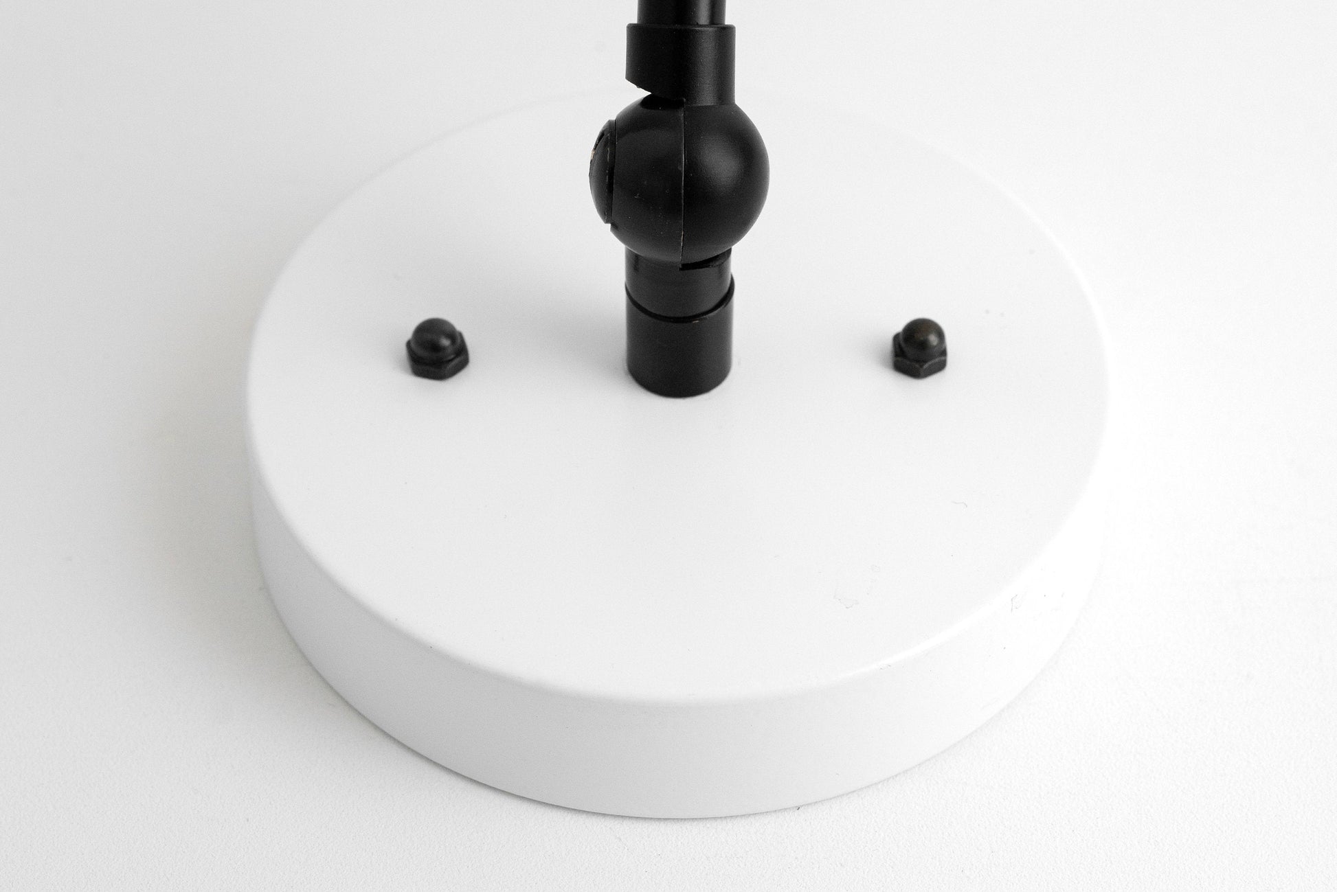 This industrial wall sconce is vertically adjustable and features a key On/Off switch located on the socket. The black gloss finish shade features a white interior which reflects the warm glow of the antique style Edison bulb.
