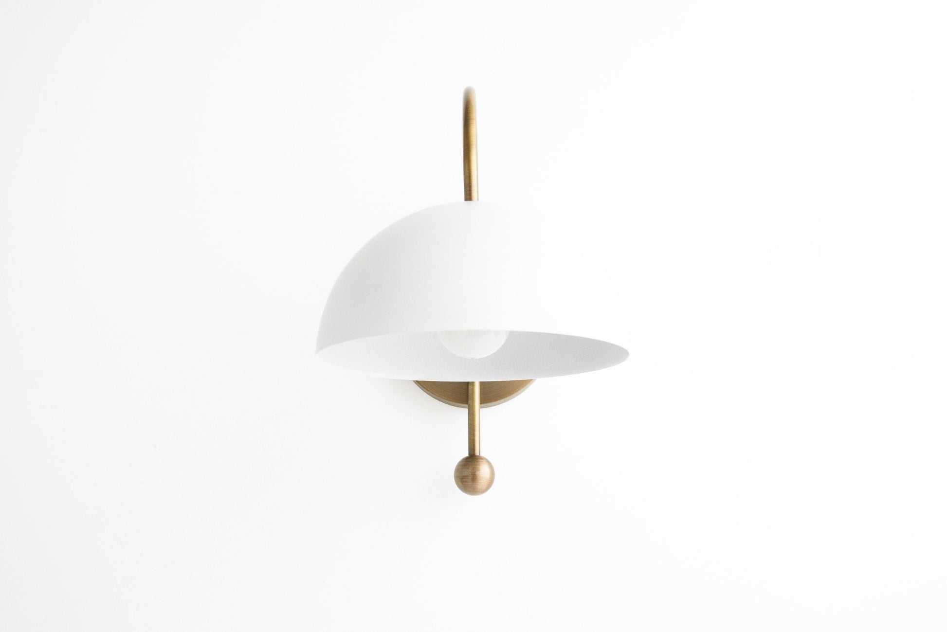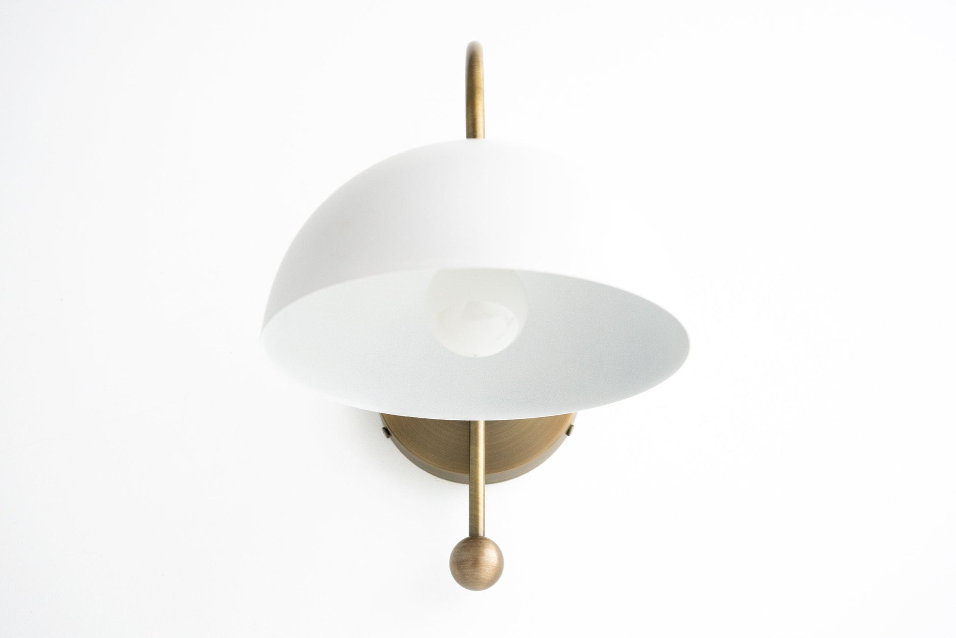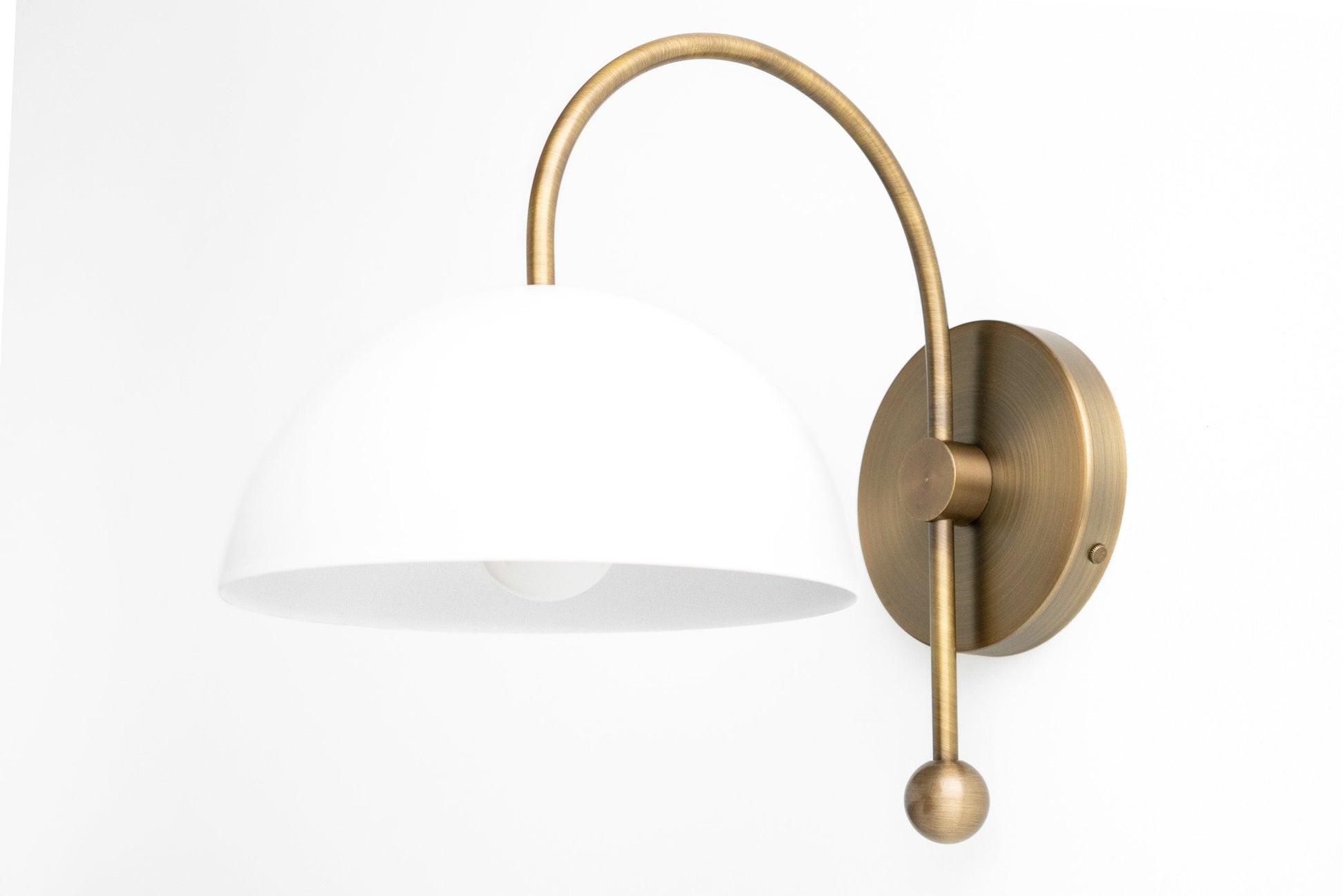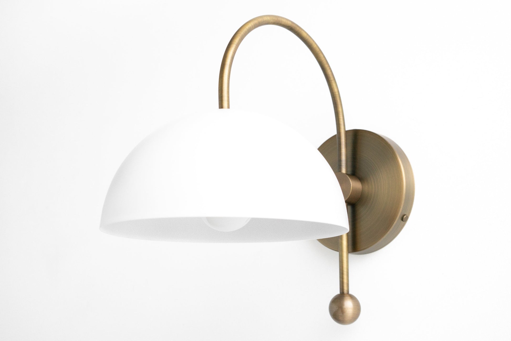 White Dome Sconce - Antique Brass Wall Lamp - Modern Lighting - Wall Light - Wood Sconce - Model No. 5732