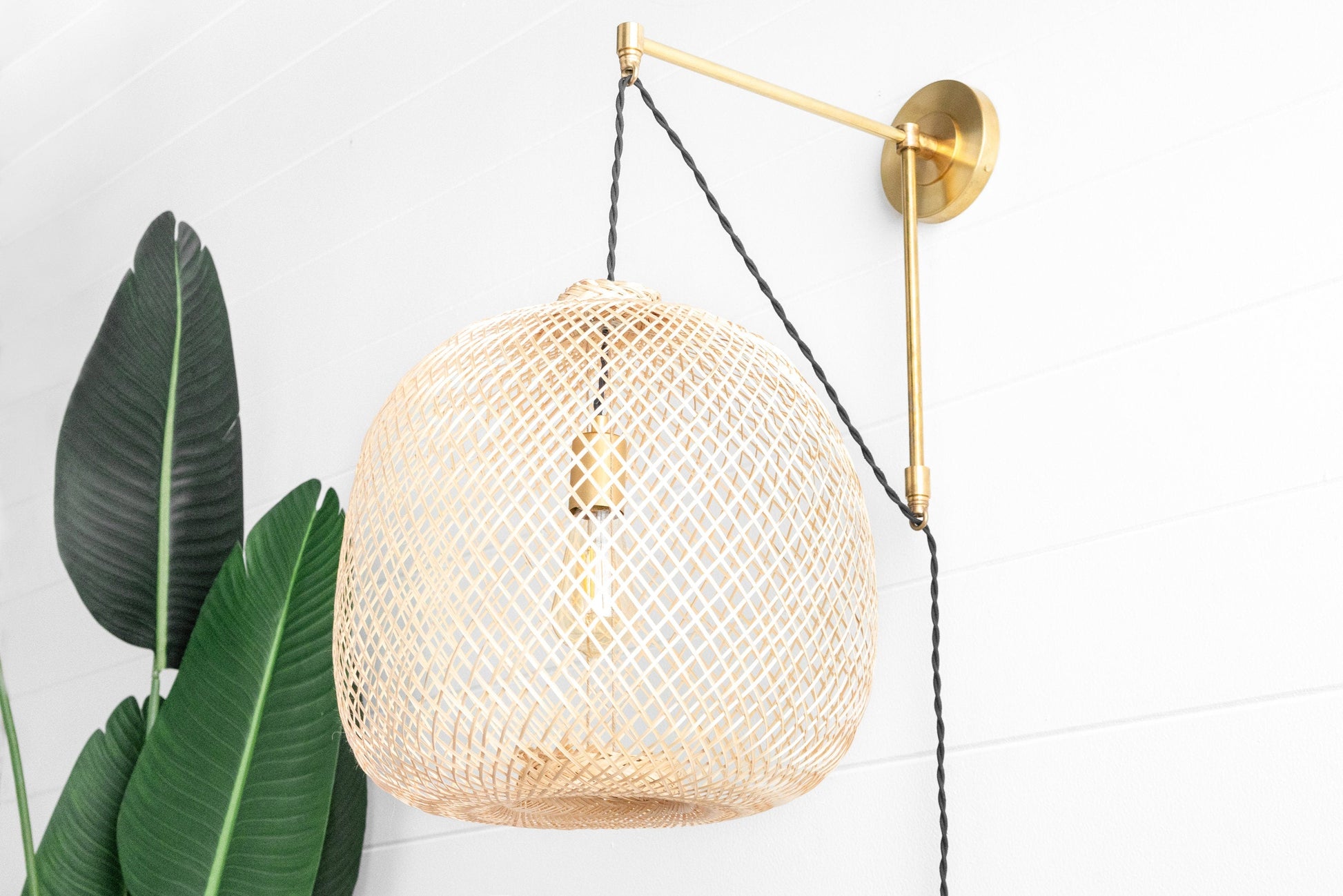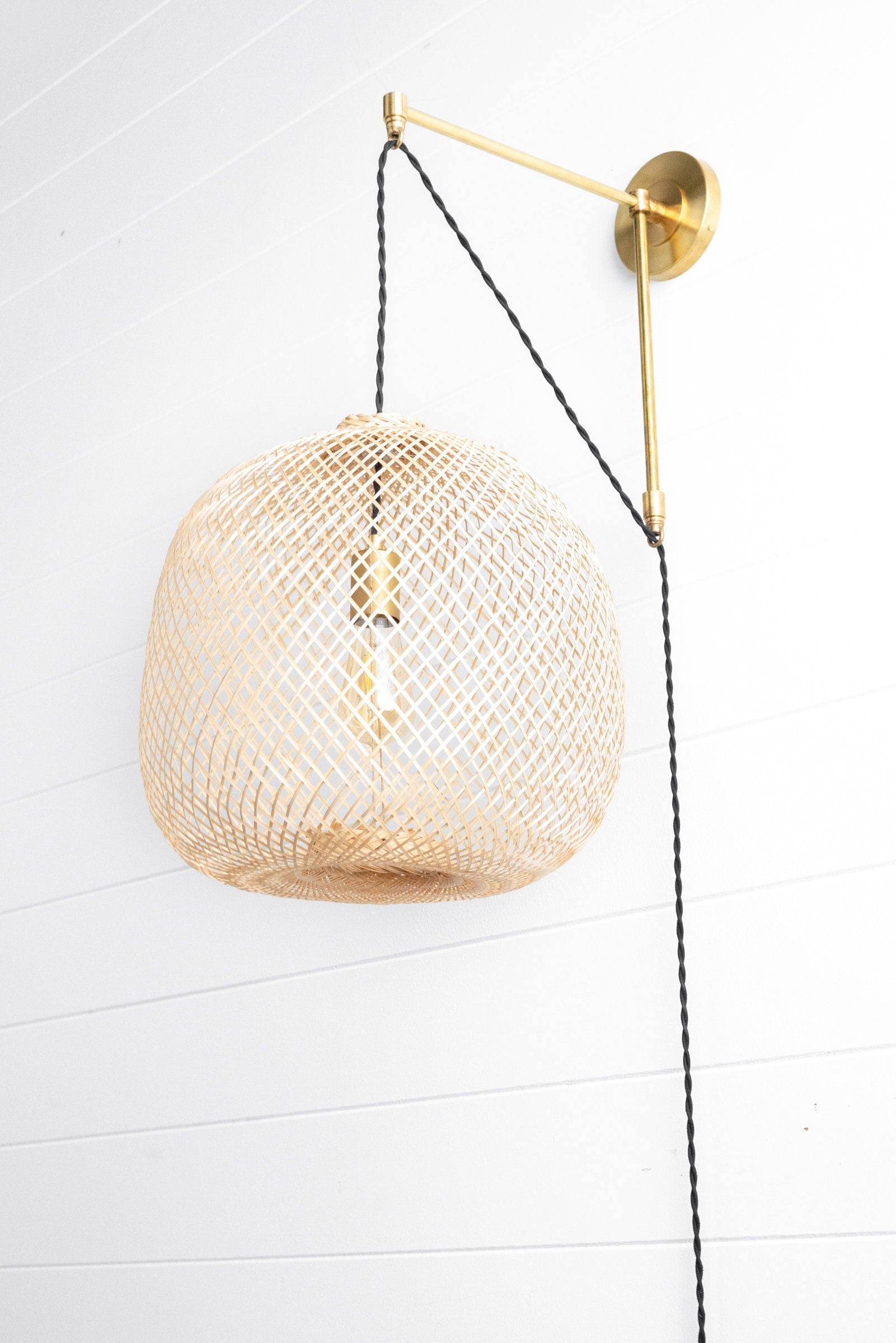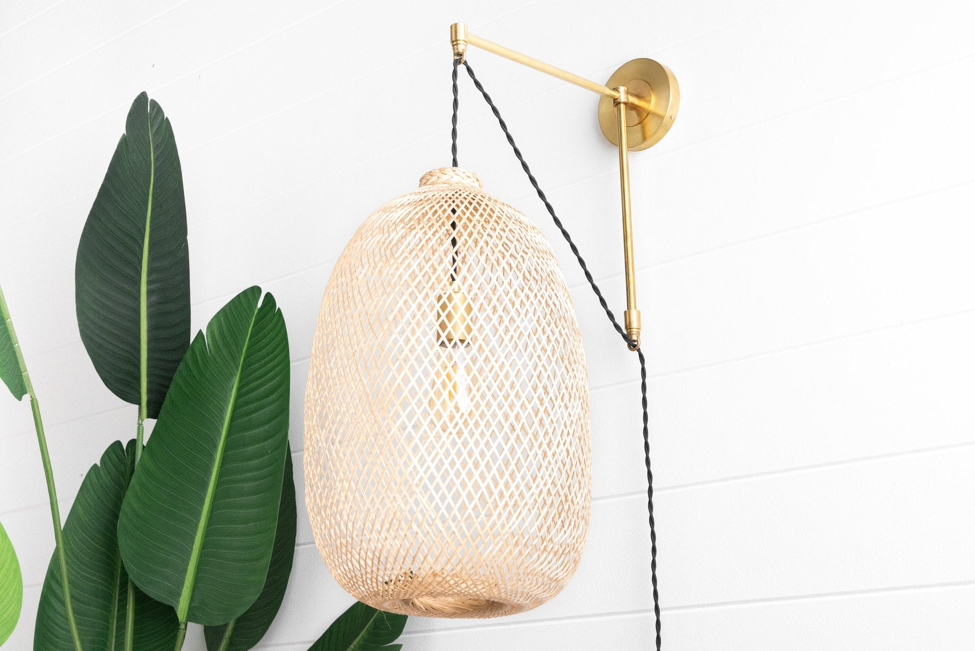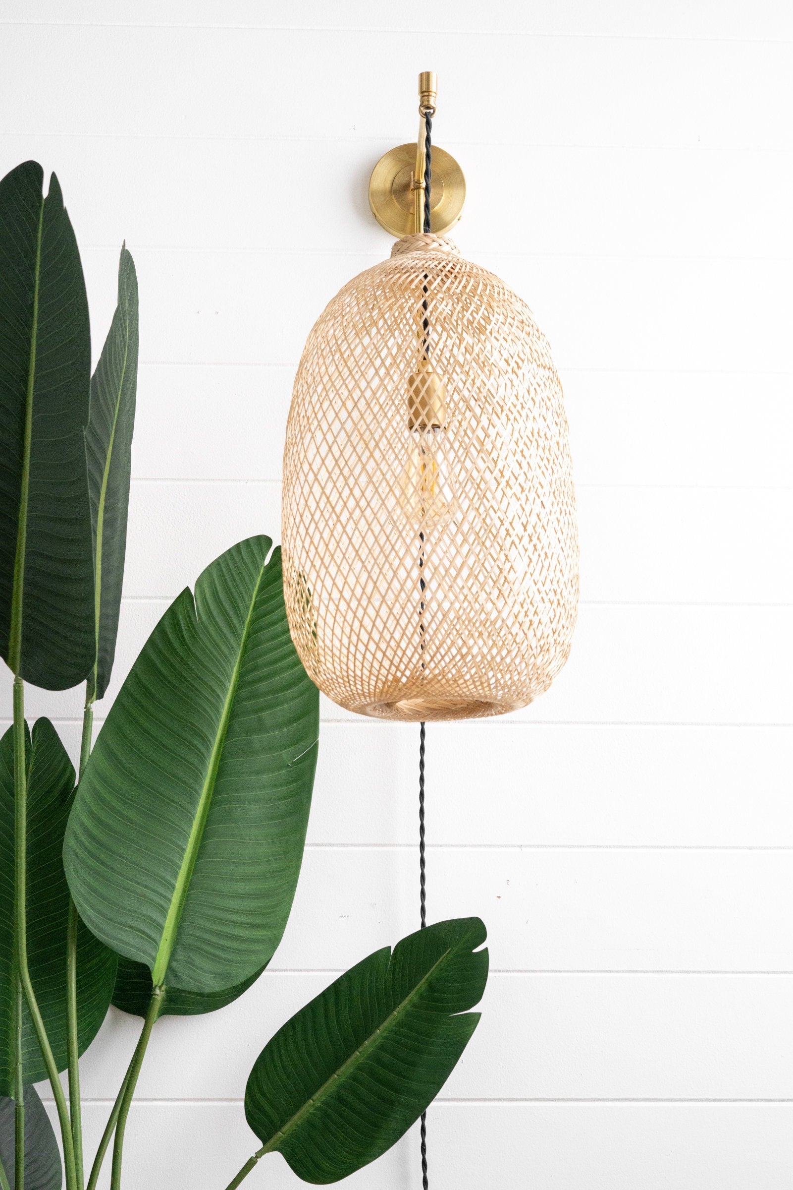 Woven Fish Trap Lamp - Bamboo Light - Plug In Sconce - Light Fixture - Bohemian Lights - Hanging Sconce - Lighting - Model No. 3541