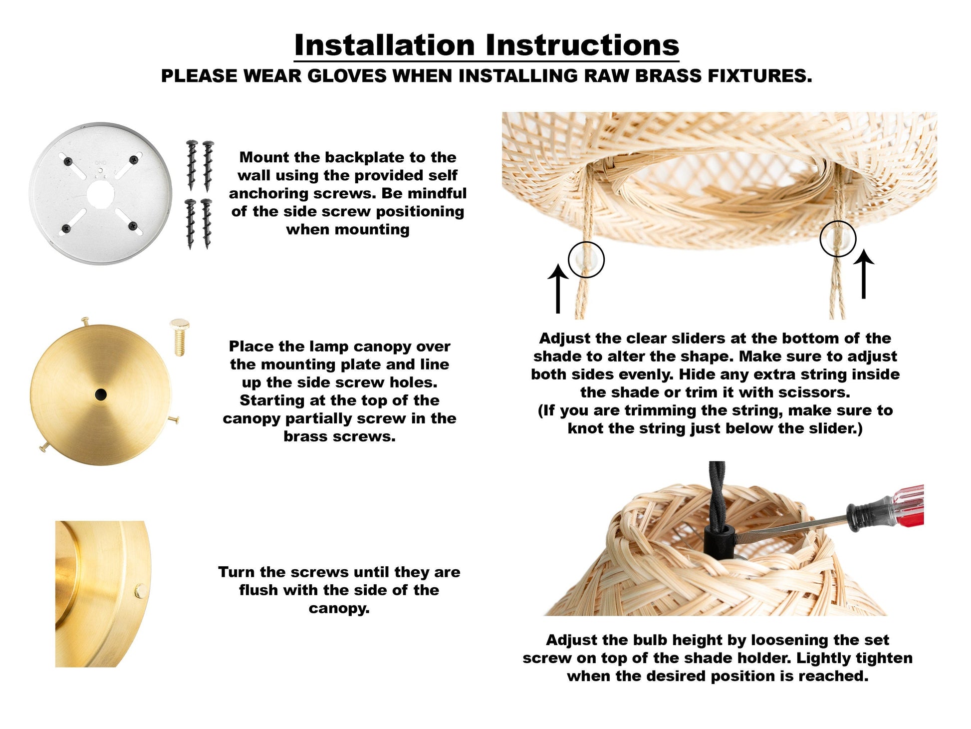 Please wear gloves while installing all fixtures. Touching raw brass with bare hands will tarnish the brass.