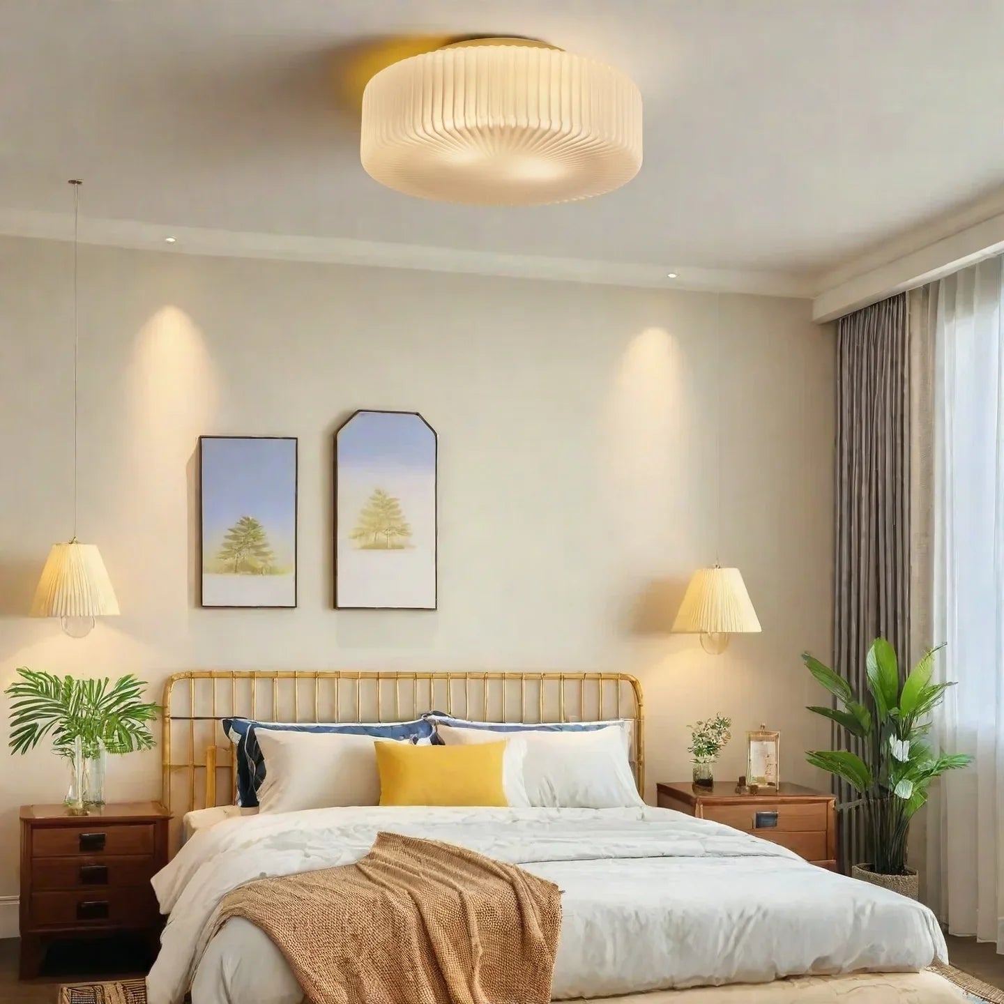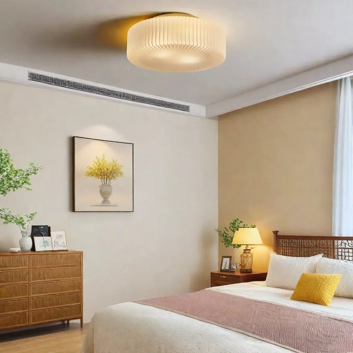 The Elowen Ceiling Lamp brings modern elegance with sleek design and opaline glass. Its ribbed shade softly diffuses light, creating a warm atmosphere. Ideal for lighting hallways, bedrooms, and living areas.