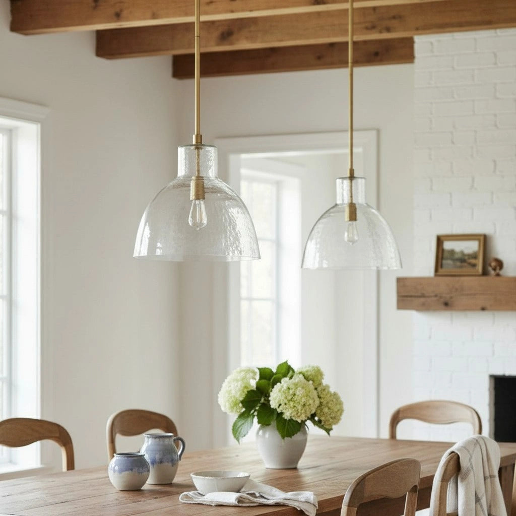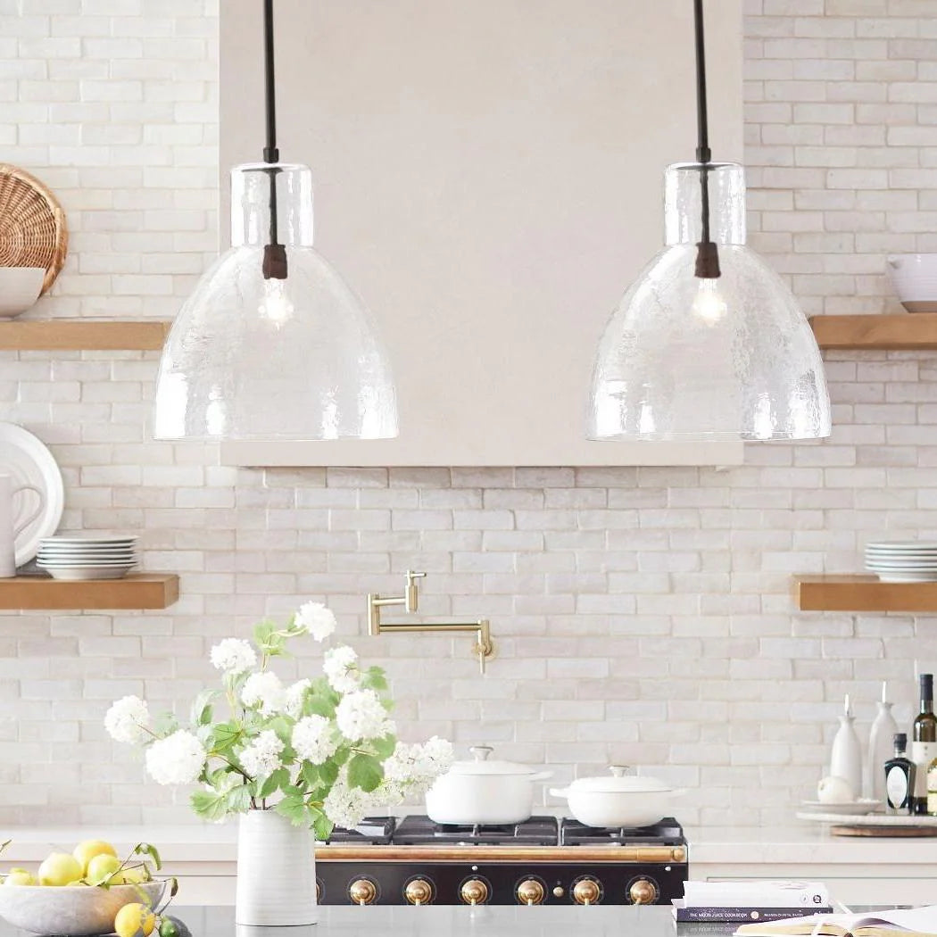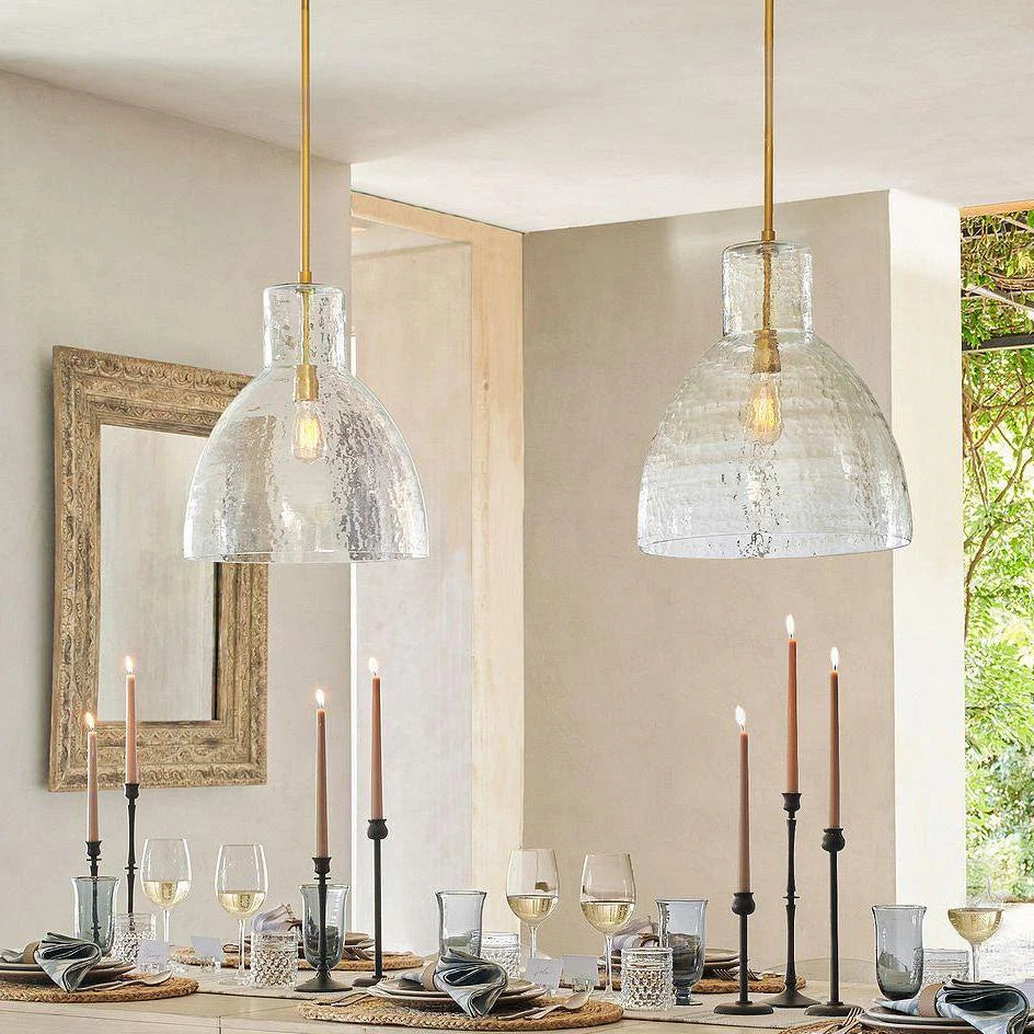 Farmhouse Recycled Hammered Glass Pendant Light for Kitchen Island