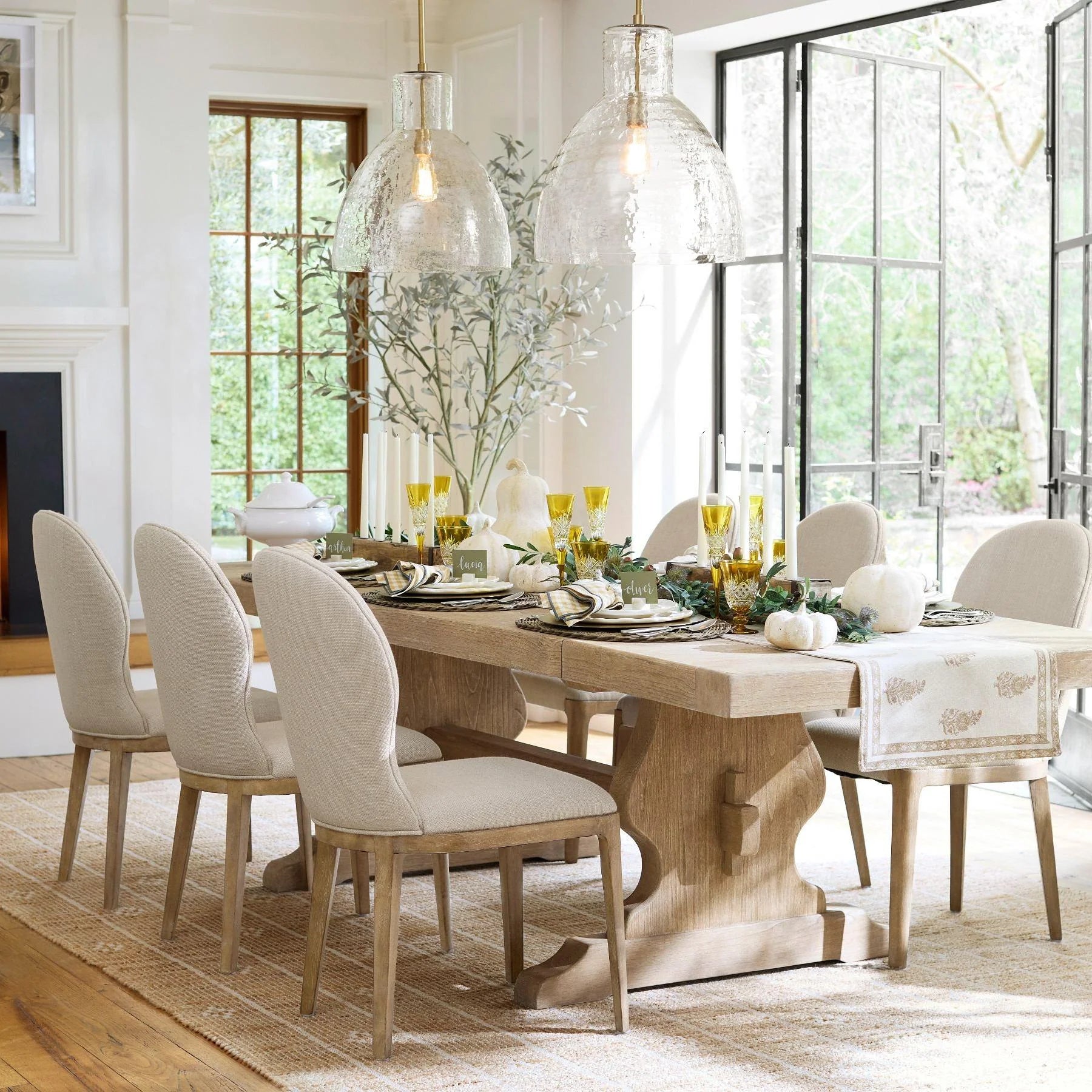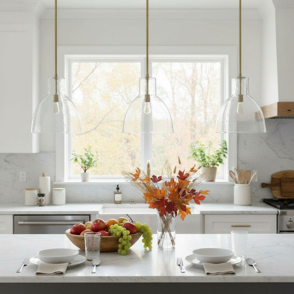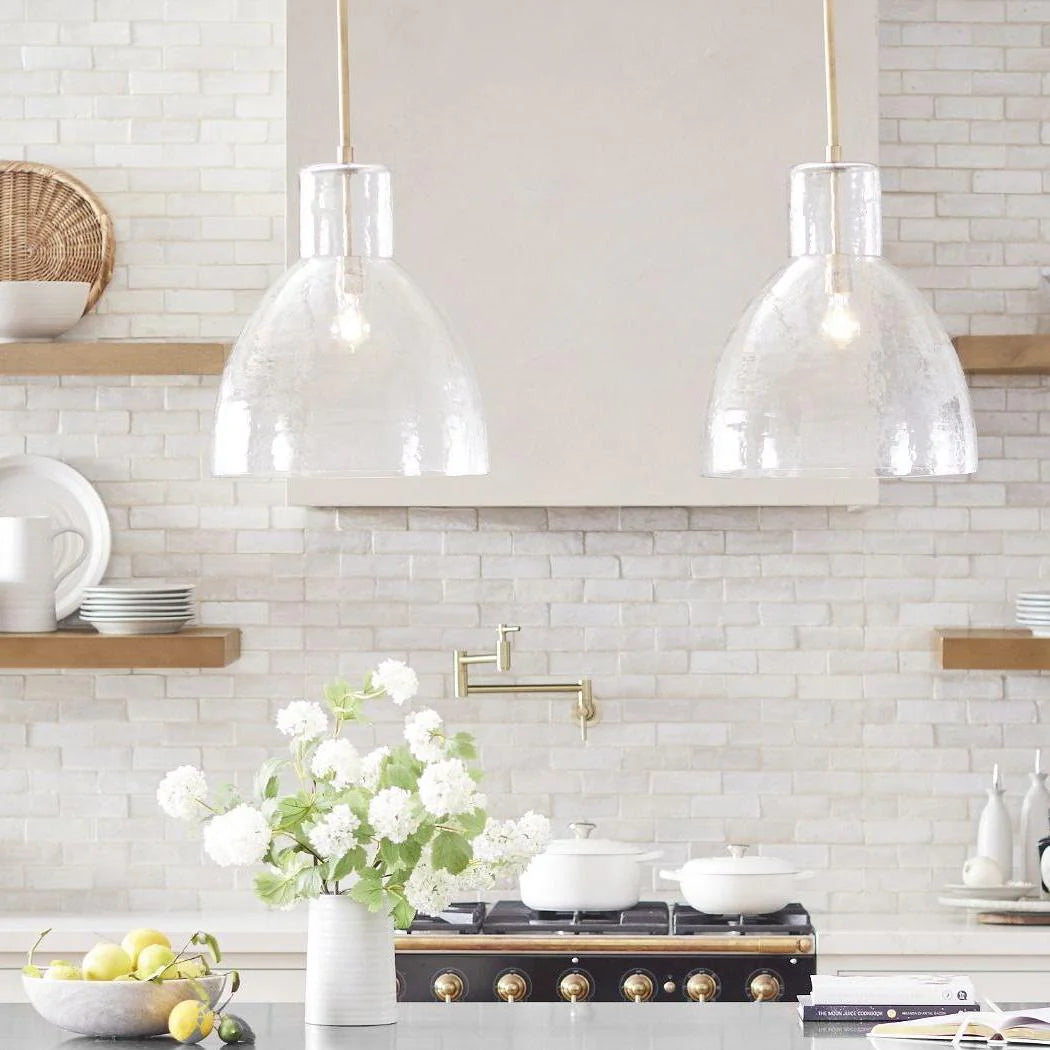 Farmhouse Recycled Hammered Glass Pendant Light for Kitchen Island