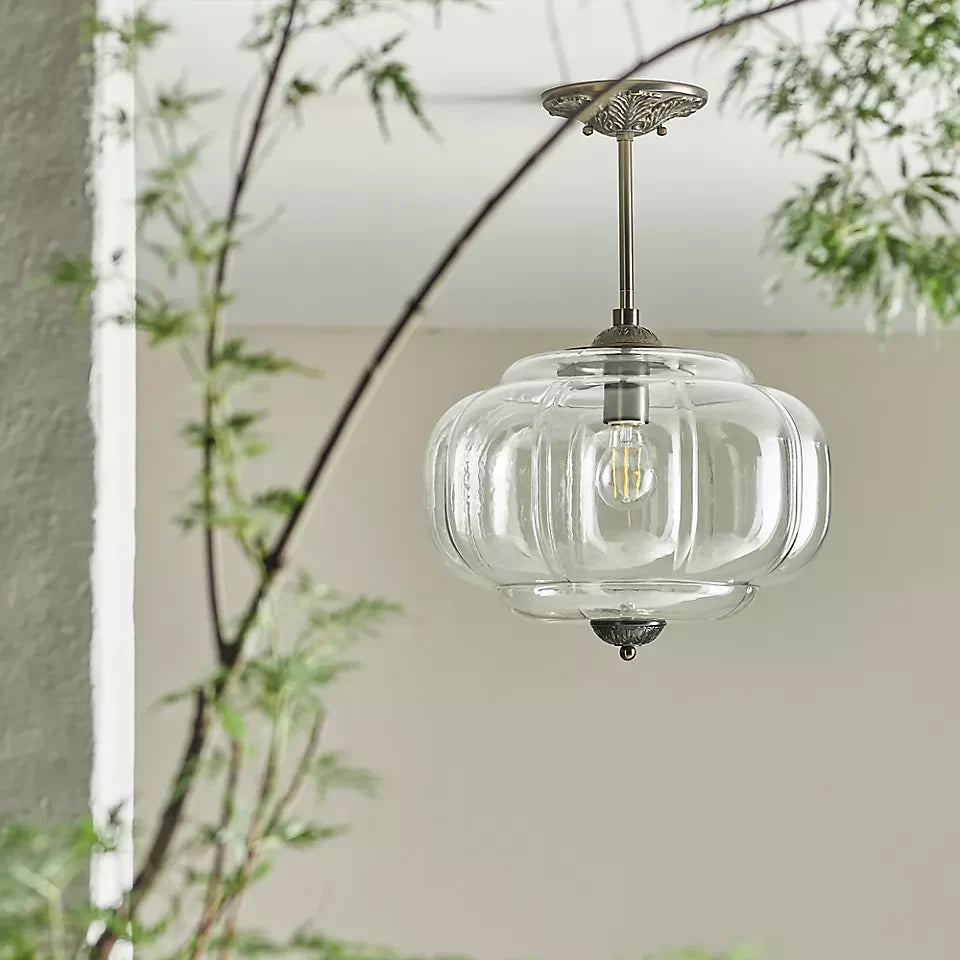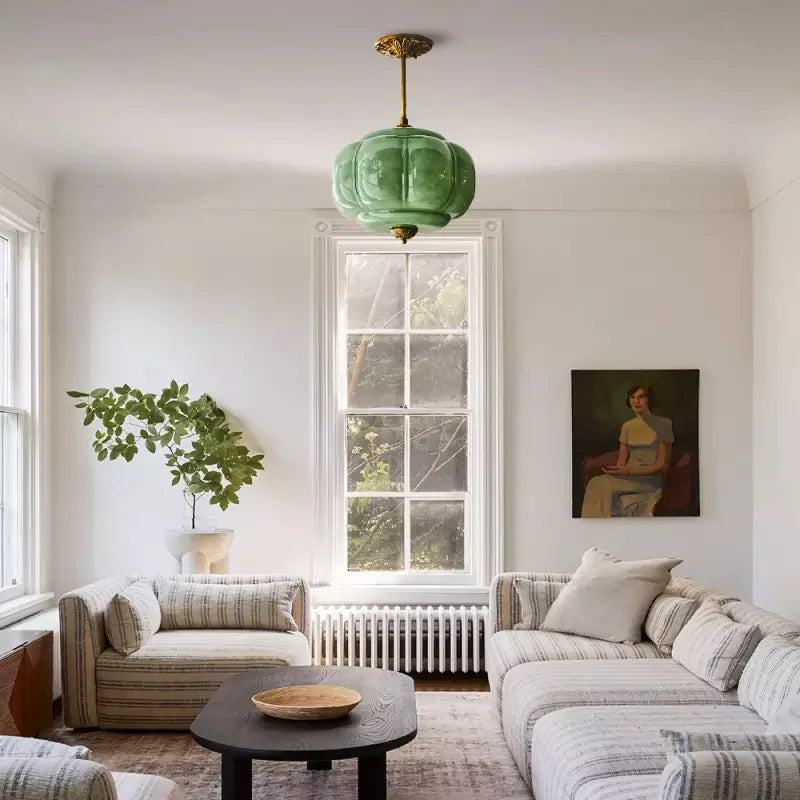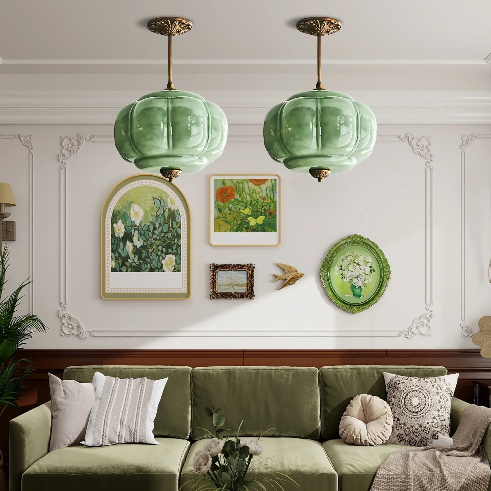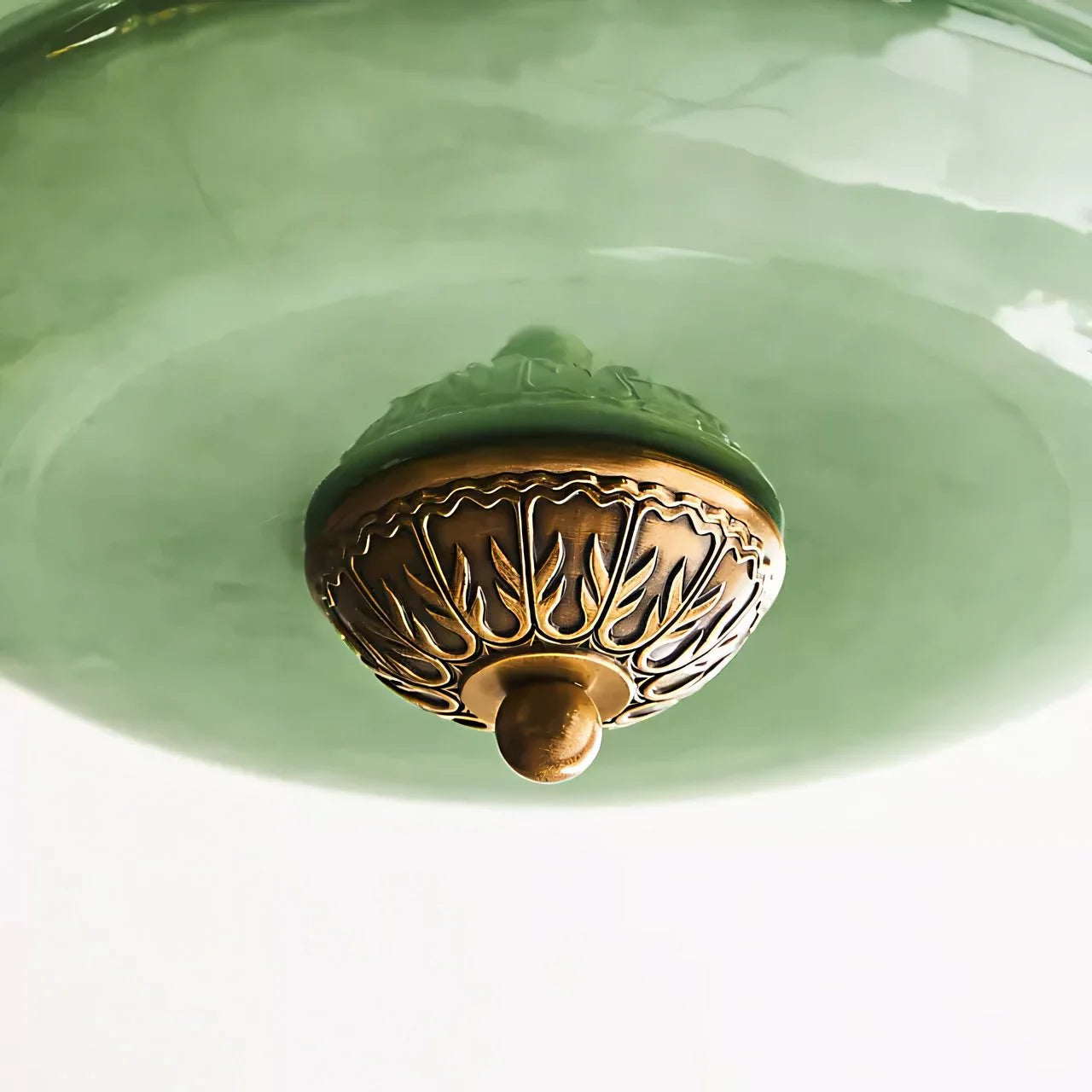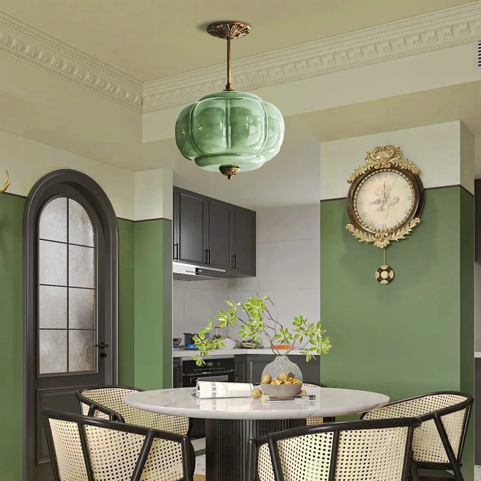 Lumi Antique Brass Green Glass Pumpkin Semi-Flush Mount Eloise Pendant
