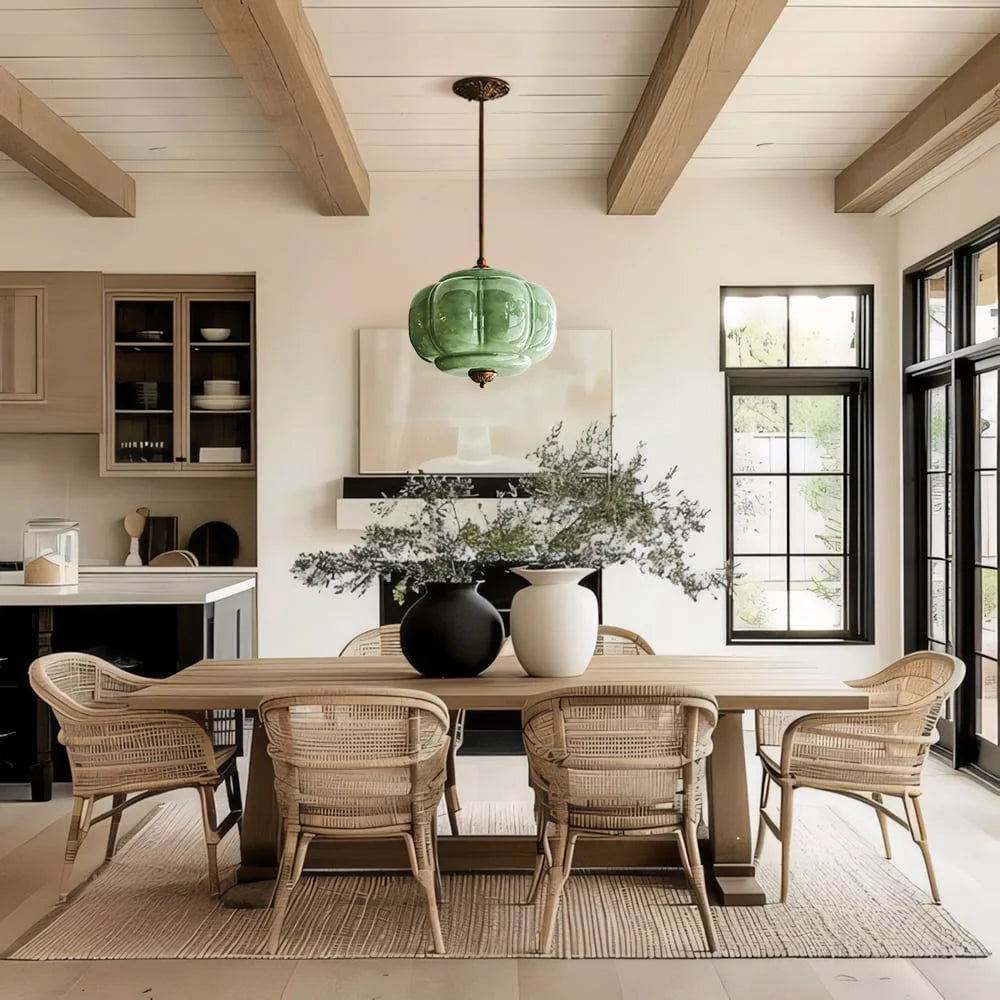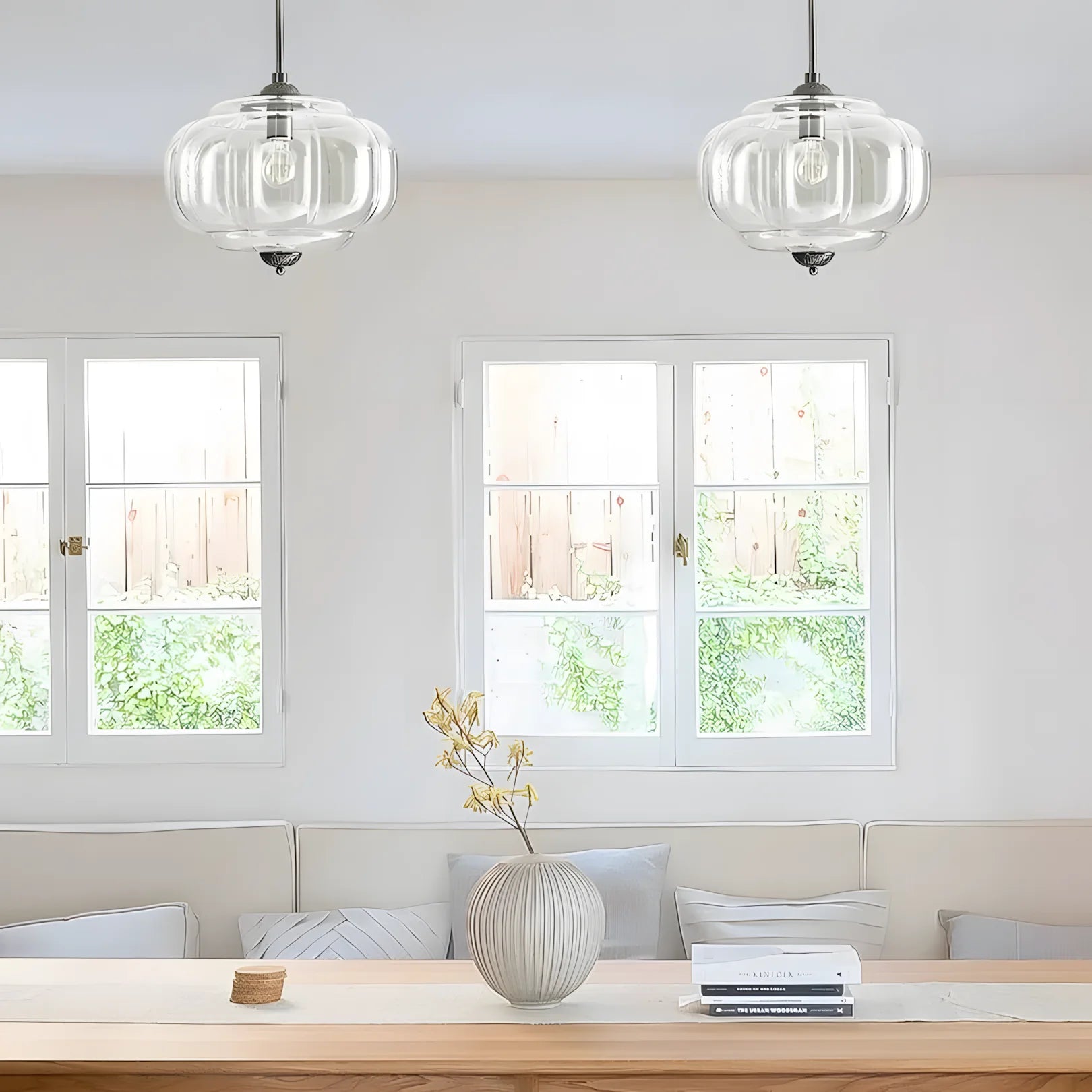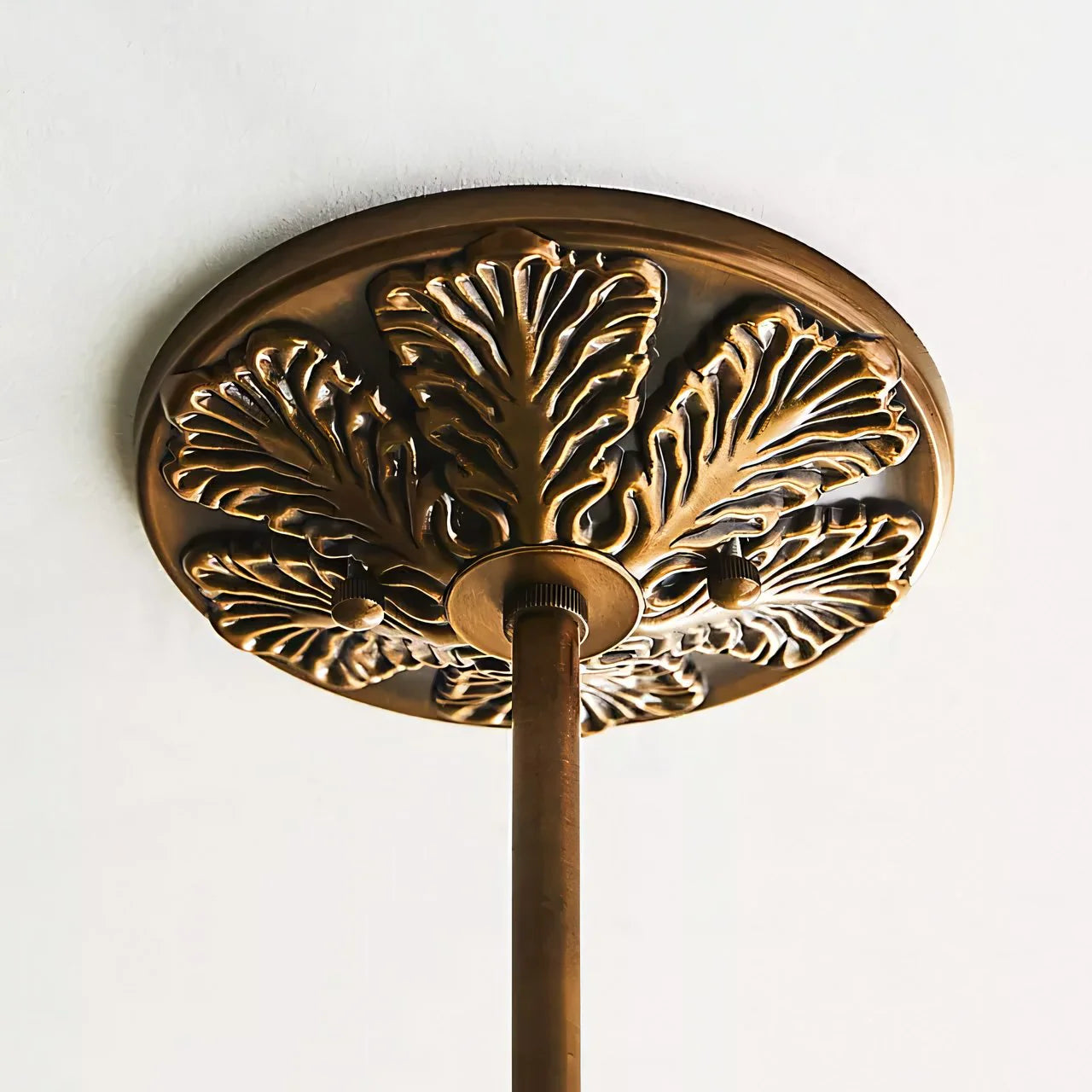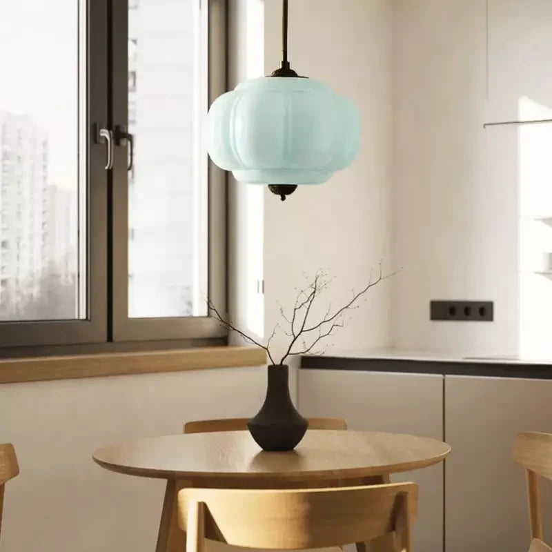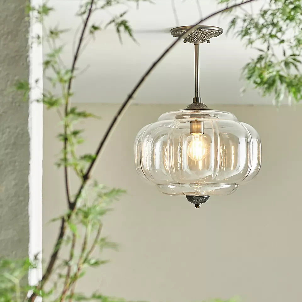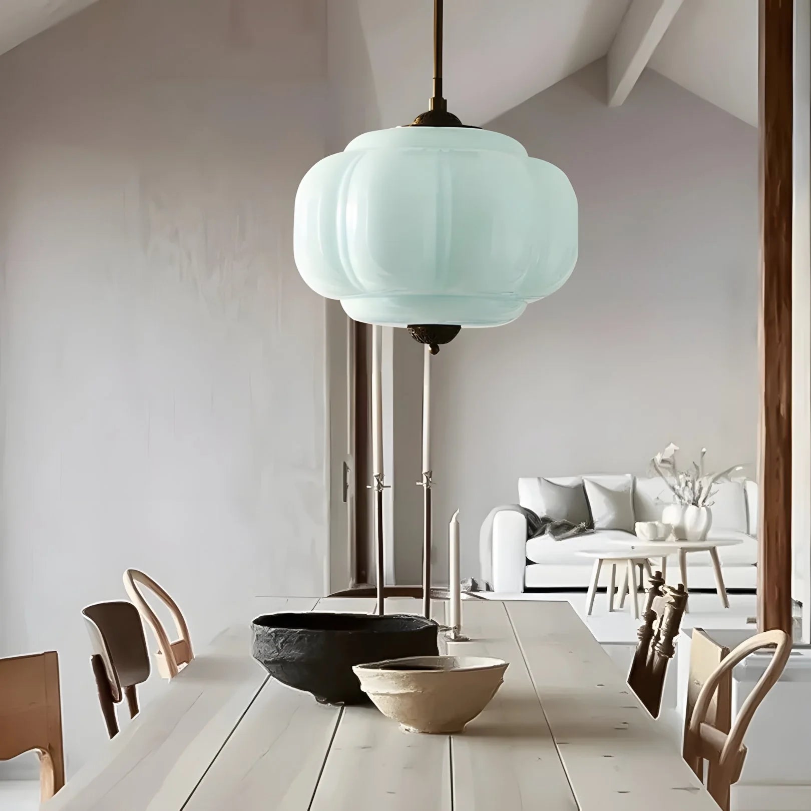 Lumi Antique Brass Green Glass Pumpkin Semi-Flush Mount Eloise Pendant
