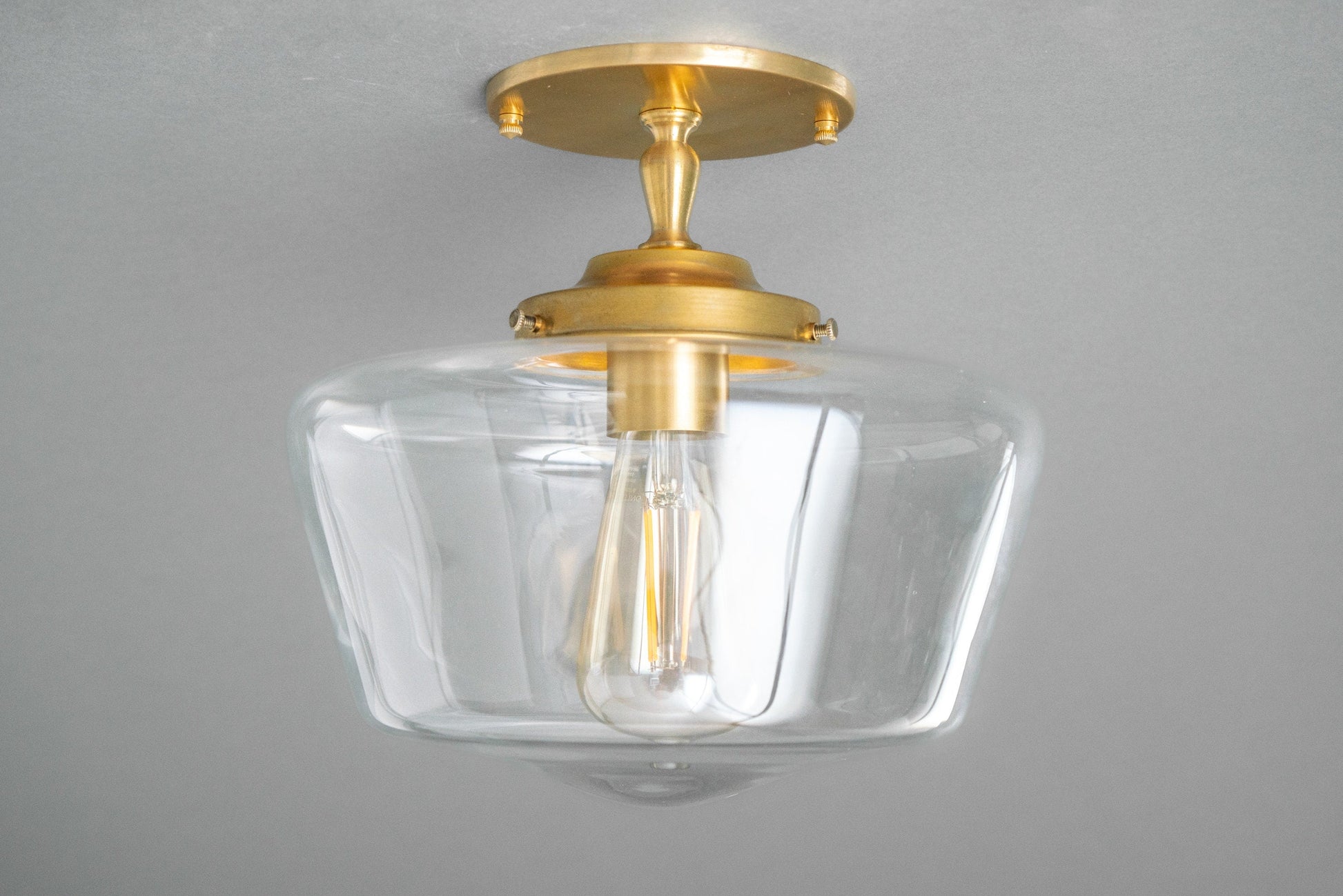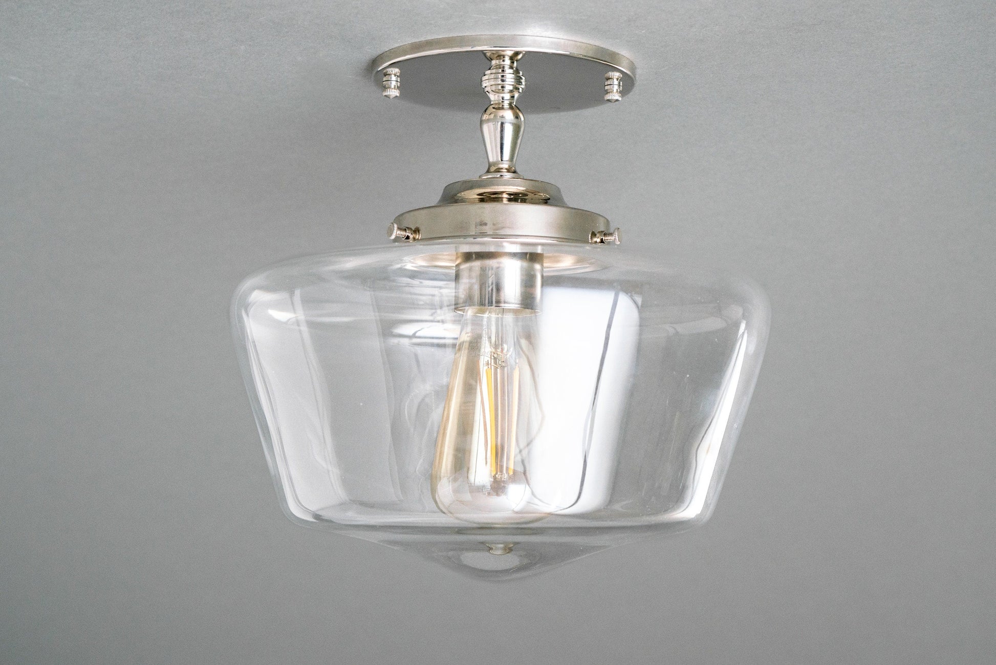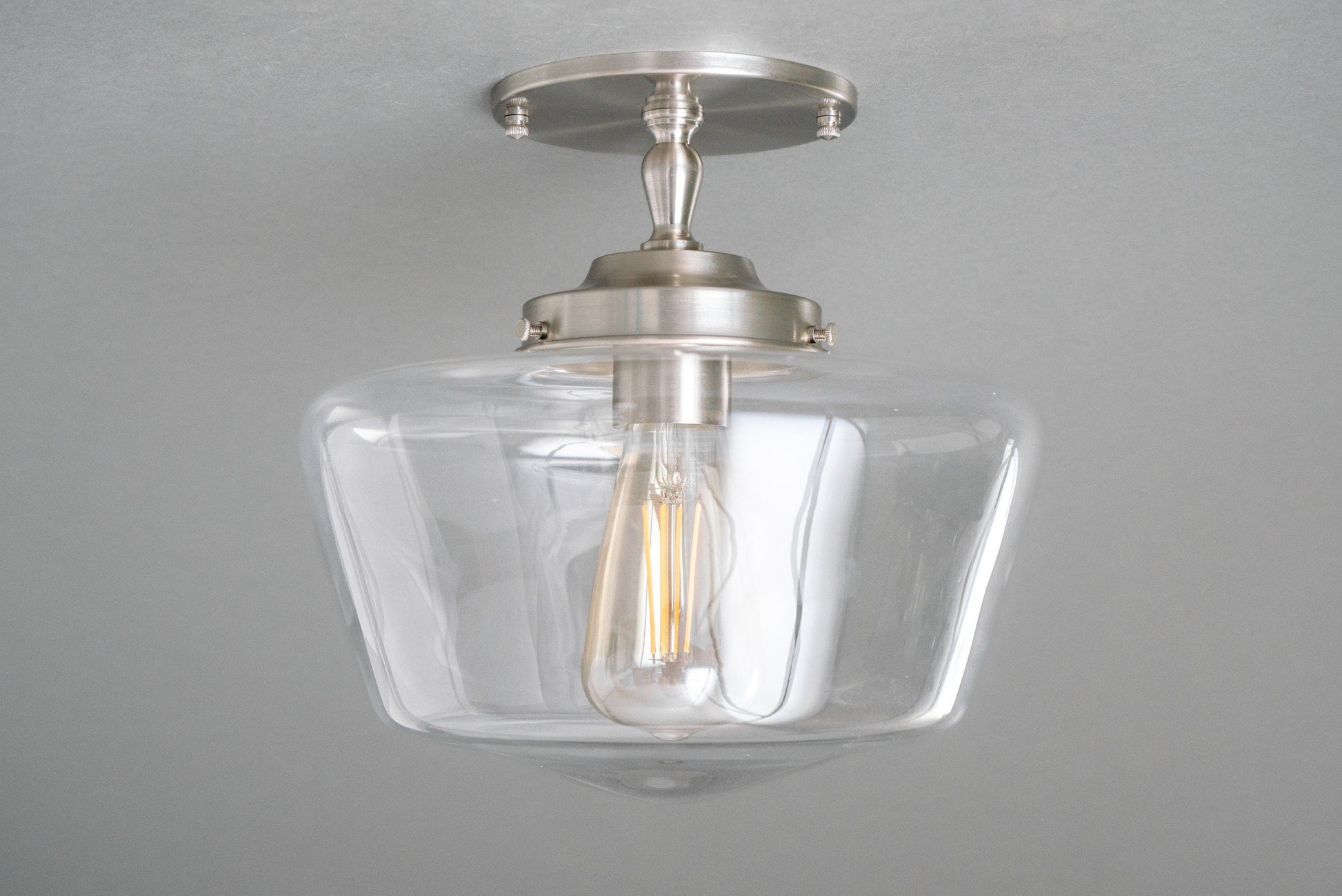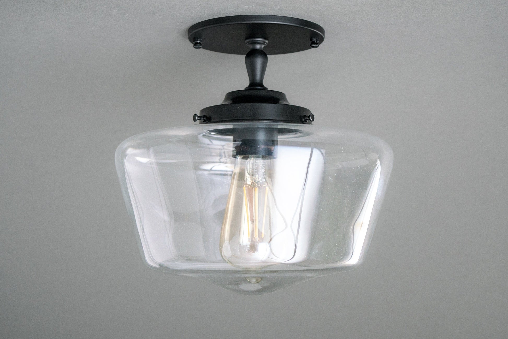 This Art Deco style semi-flush ceiling light features a 10inch clear glass schoolhouse style globe.