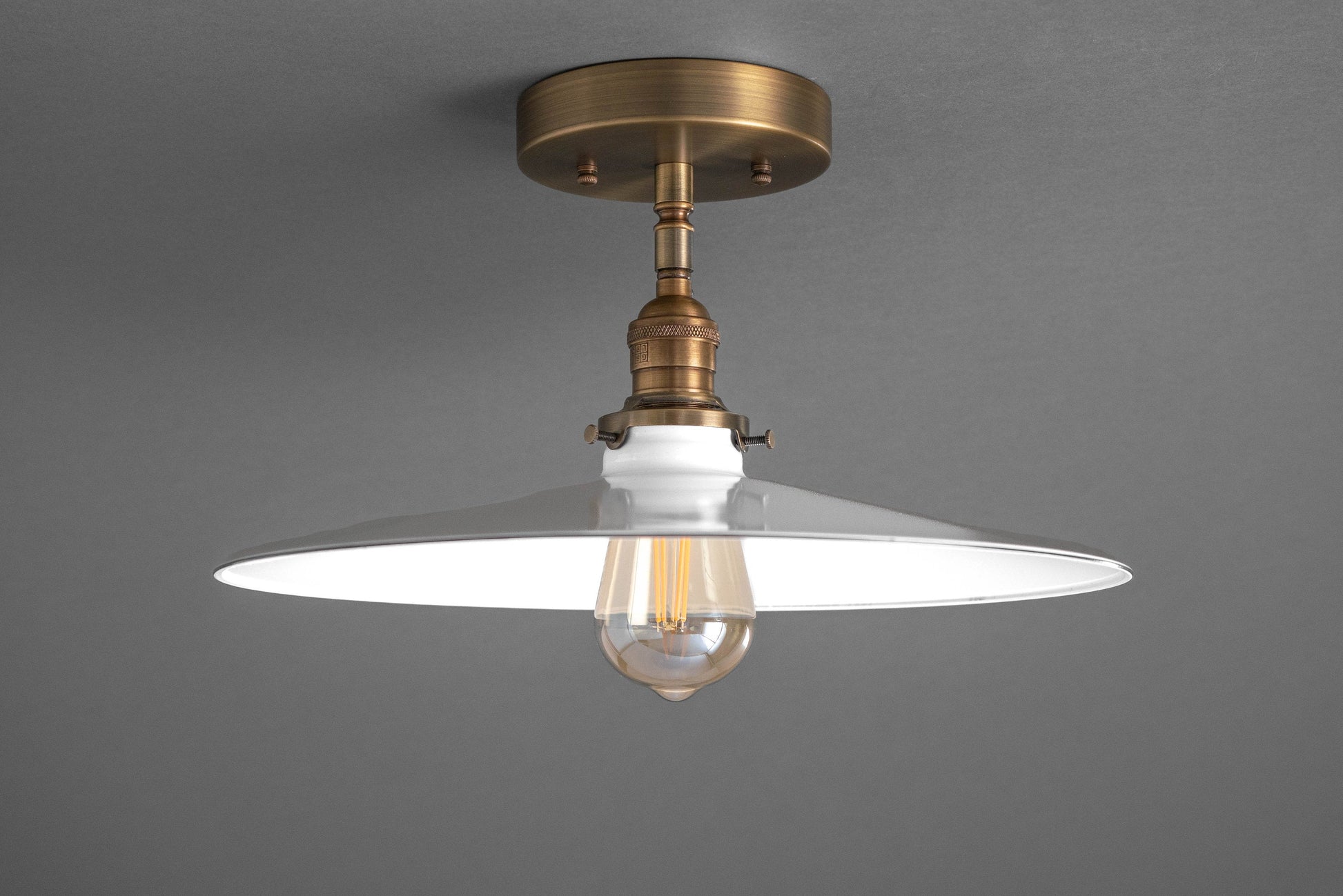 14" White Industrial Ceiling Fixture - Semi Flush Mount - Industrial Style - Pendant Lamp - Model No. 0206