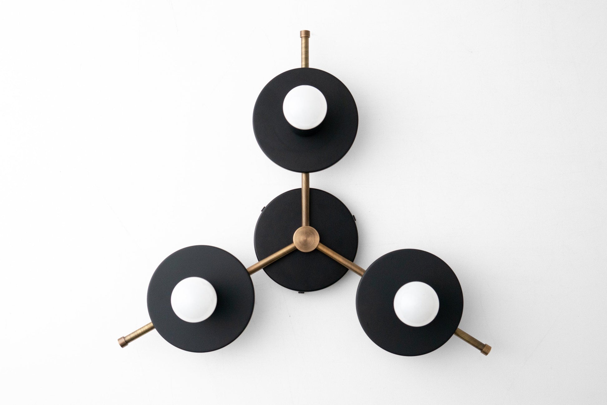 3 Bulb Ceiling Light - Antique Brass Light - Colorful Lighting - Multi Light Fixture - Wall Light - Model No. 9526