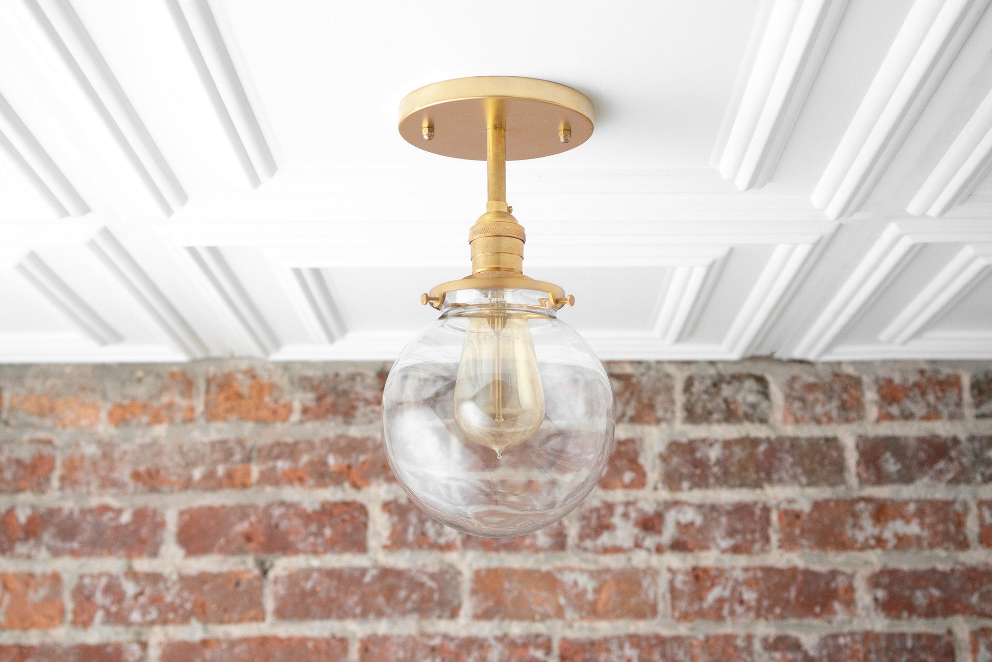 This modern semi flush ceiling light features a 6" Clear Glass Globe, and shallow canopy