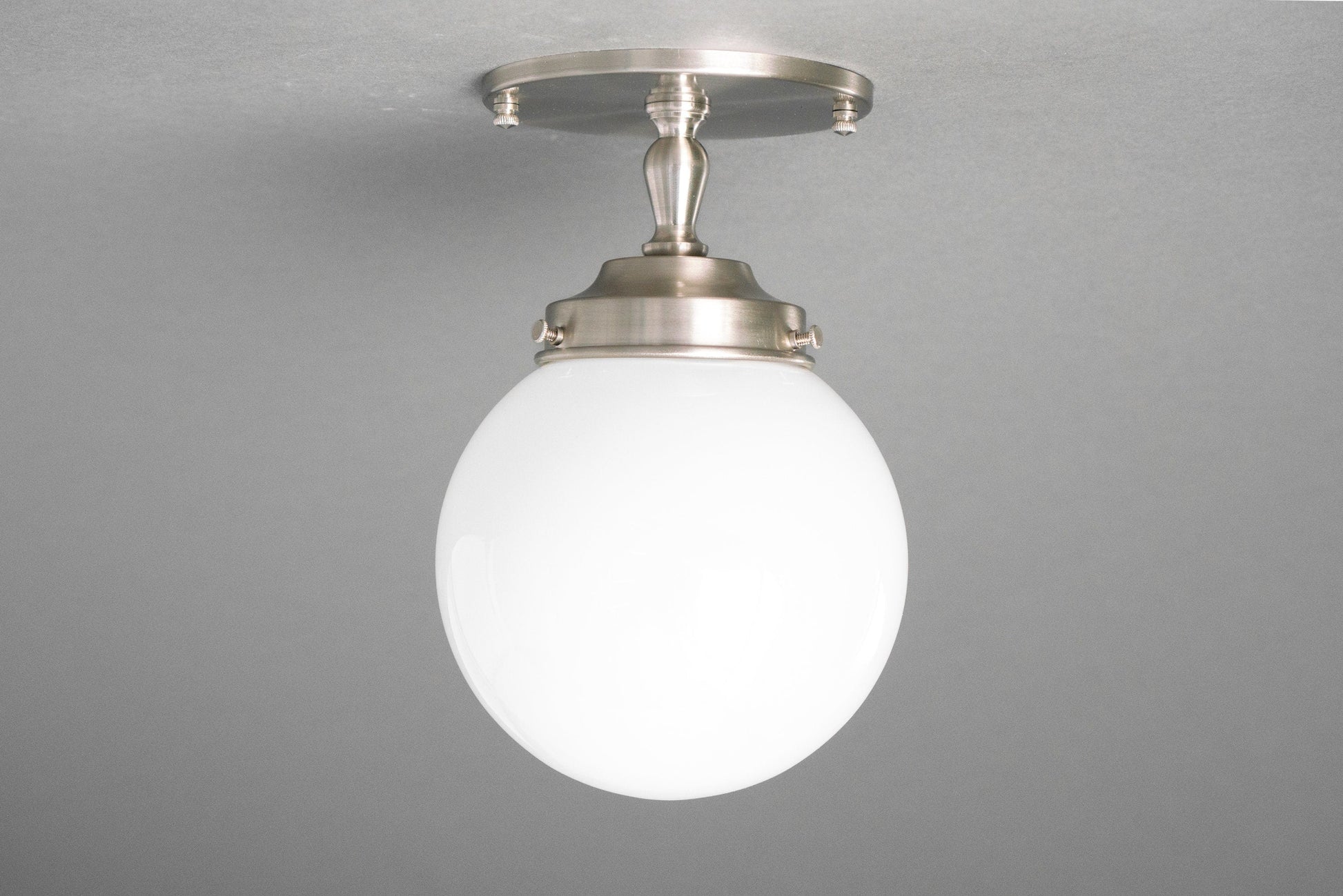 This Art Deco semi-flush ceiling light features a 6inch white opal glass globe.