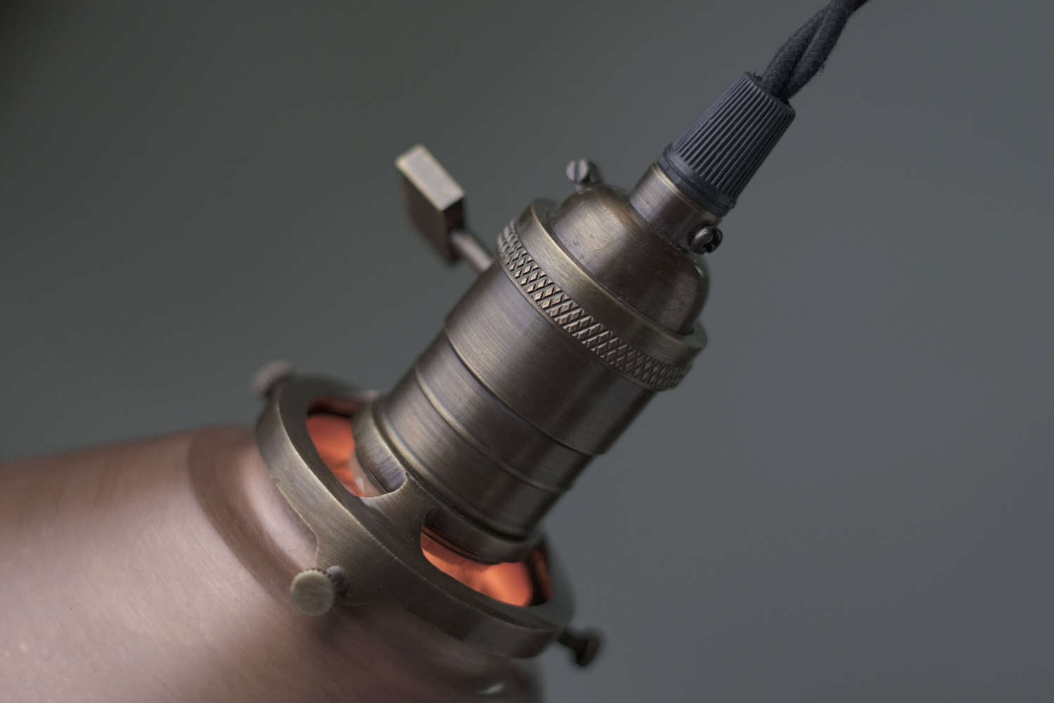 The vintage theme continues with the early style socket with turn key switch as well as the cloth covered cord made from braided cotton.