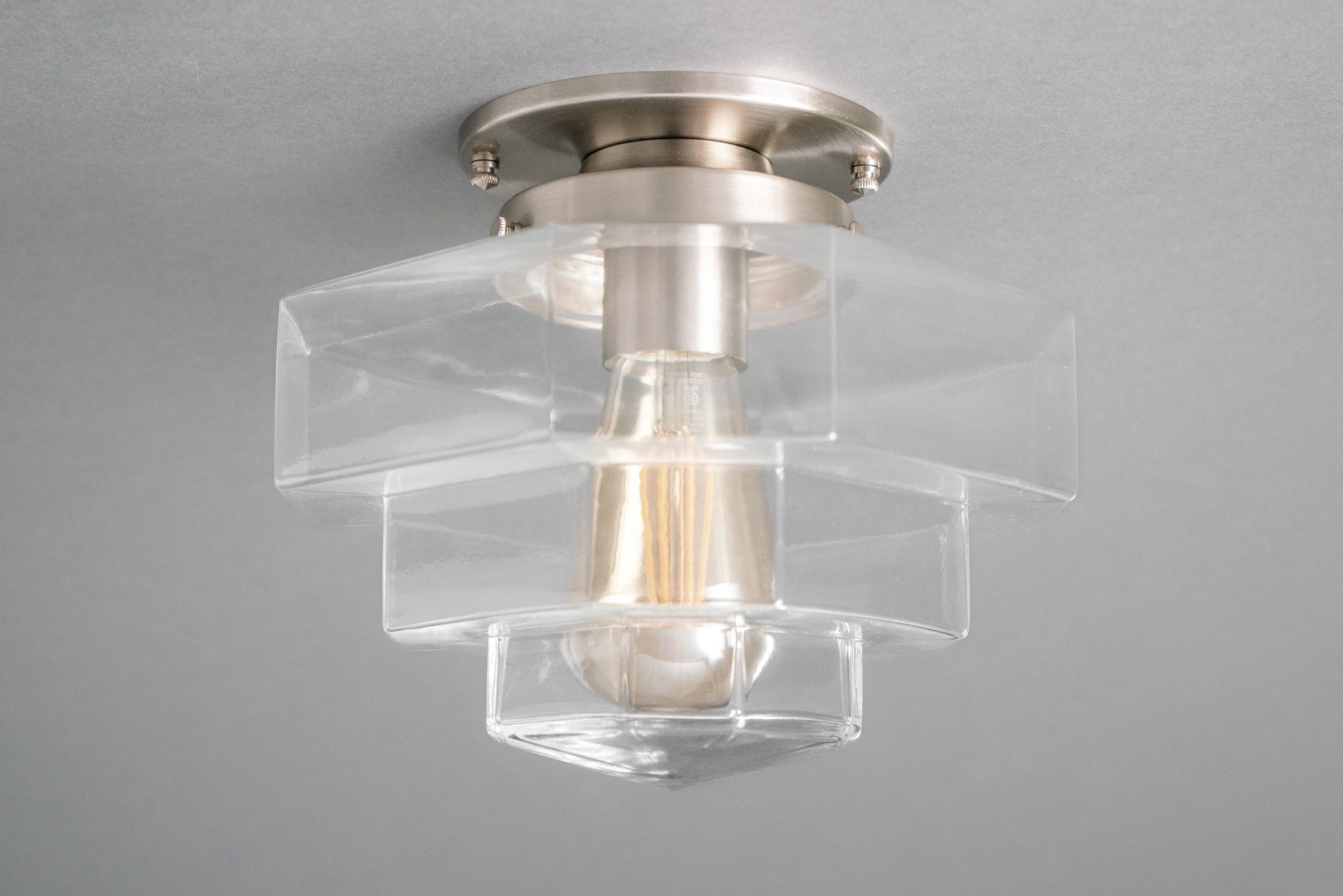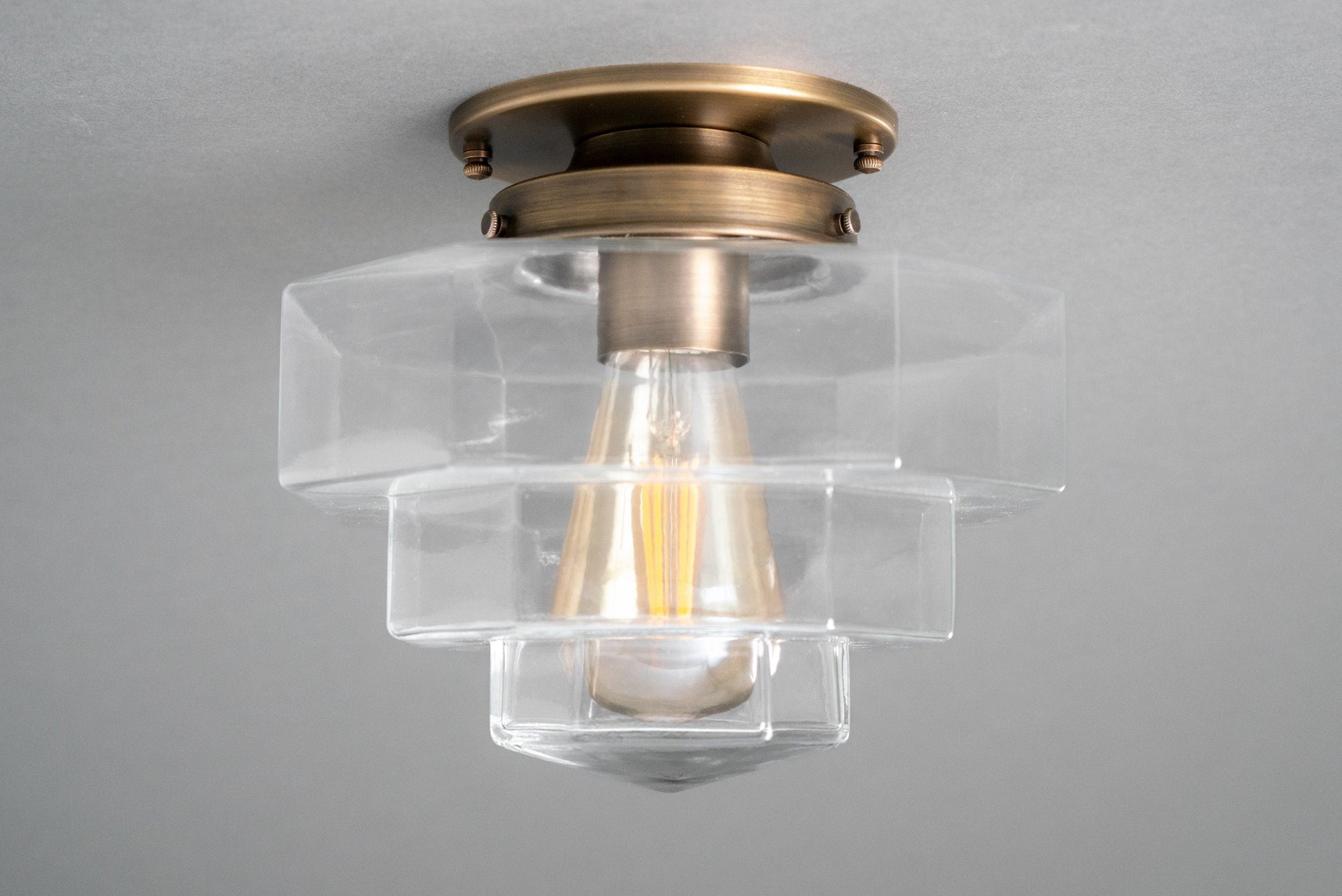 Art Deco - Clear Glass Shade - Art Deco Lighting - Flush Mount Light - Brass Ceiling Light - Deco Light - Light Fixture - Model No. 8273