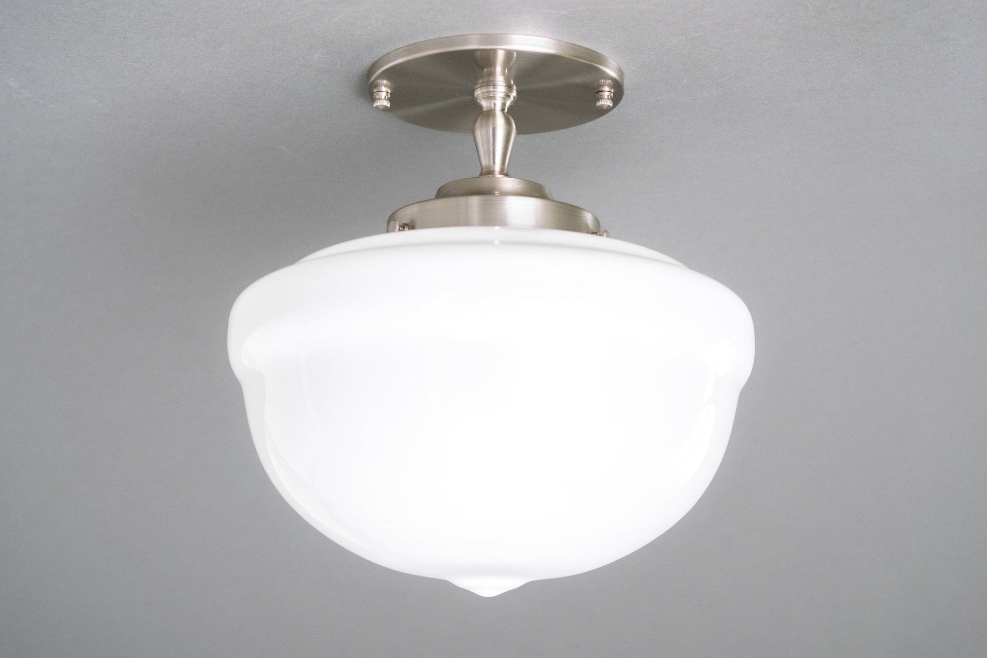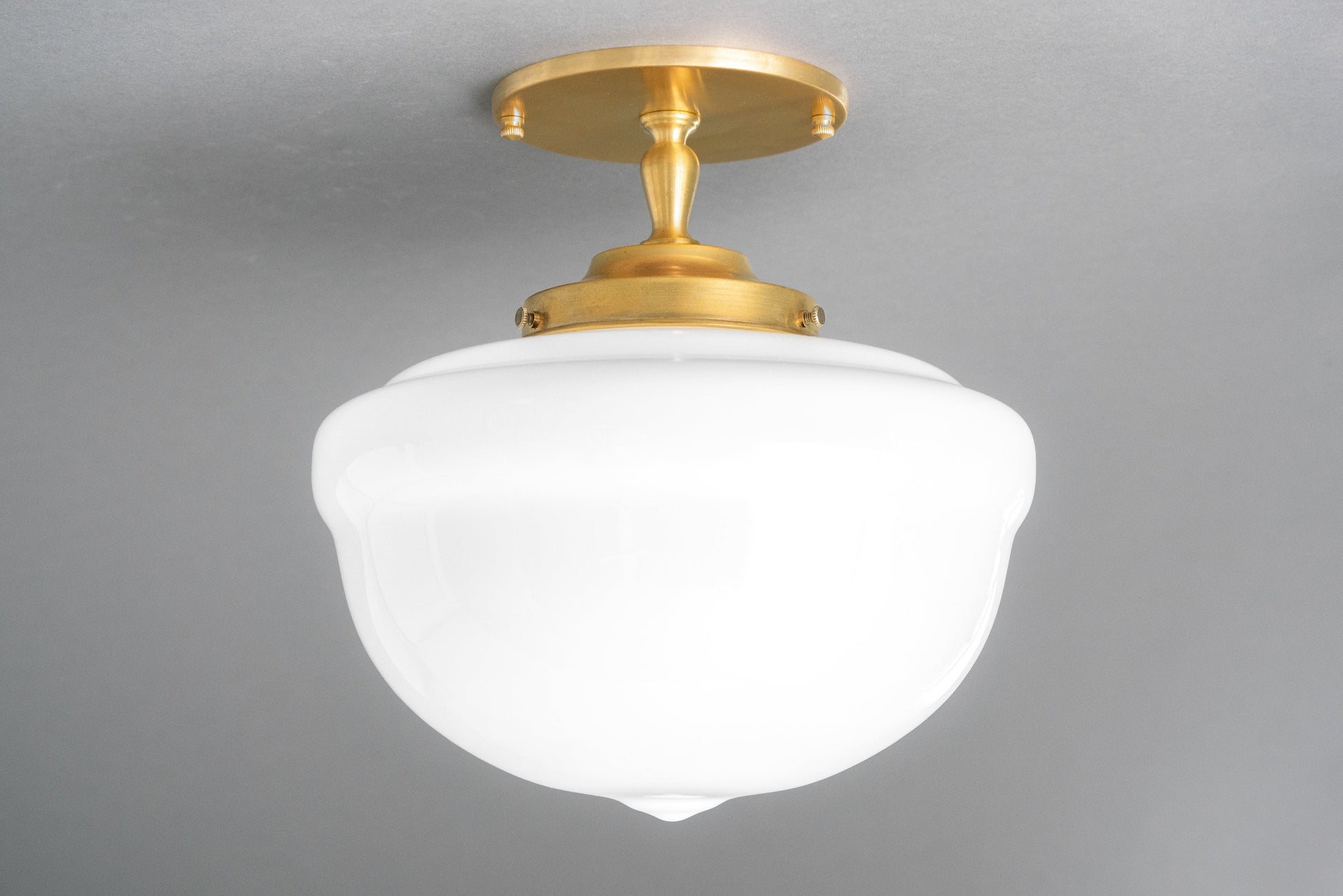 Art Deco Lighting - 10" Opal Glass Shade - Semi Flush Mount - Ceiling Light - Made in USA - Model No. 6677
