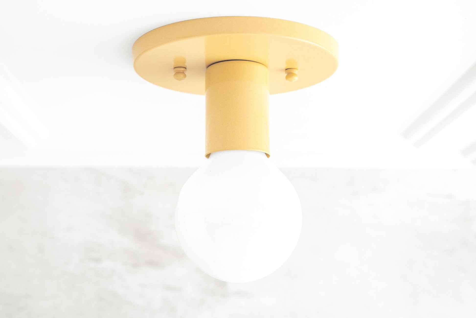 This colorful minimalist light fixture can be mounted on the wall as a scone or as a ceiling light.