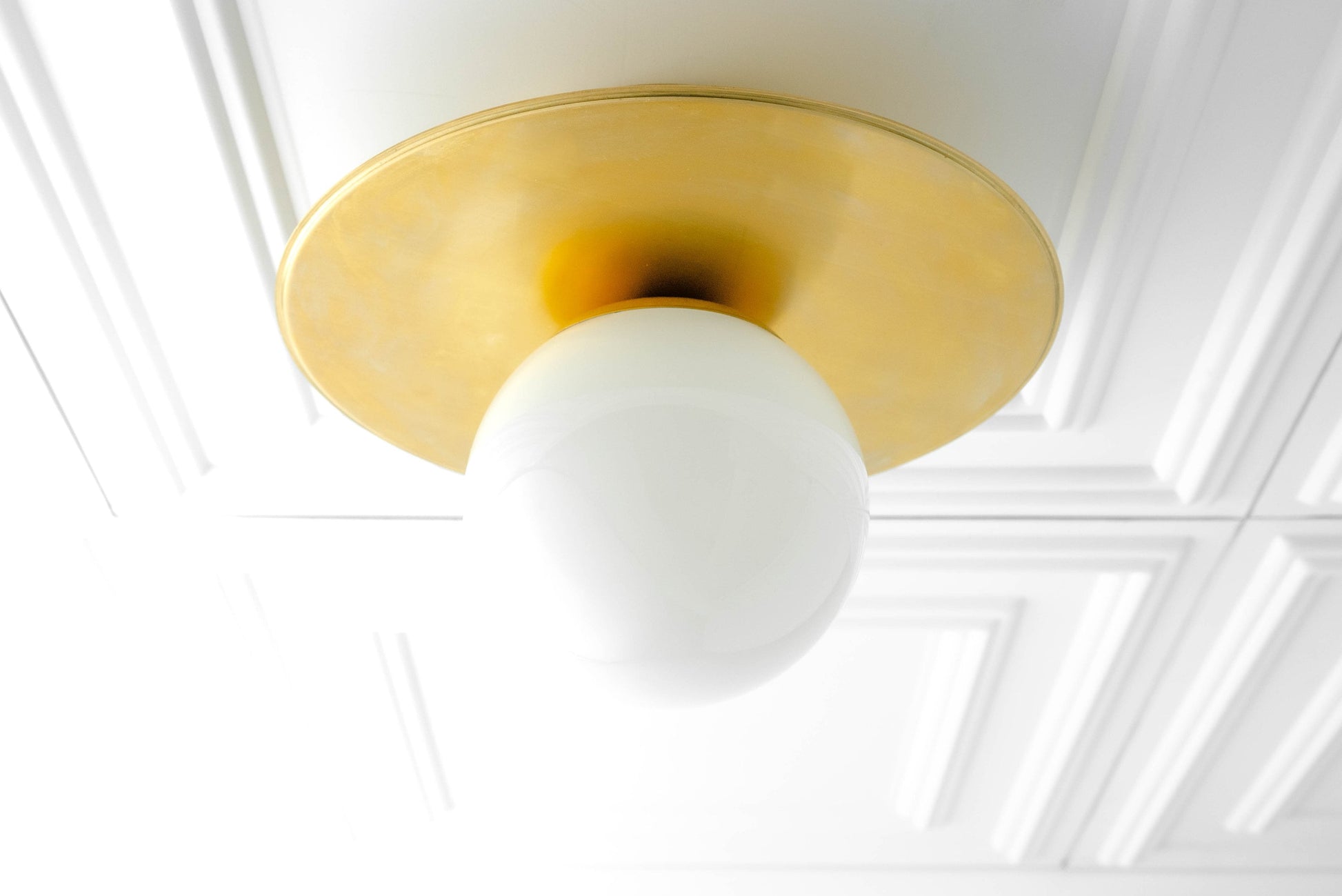 Ceiling Light - Opal Globe - Brass Backsplash - Brass Ceiling Light - Modern Lighting - Ceiling Fixture - Lighting Fixtures - Model No. 7651