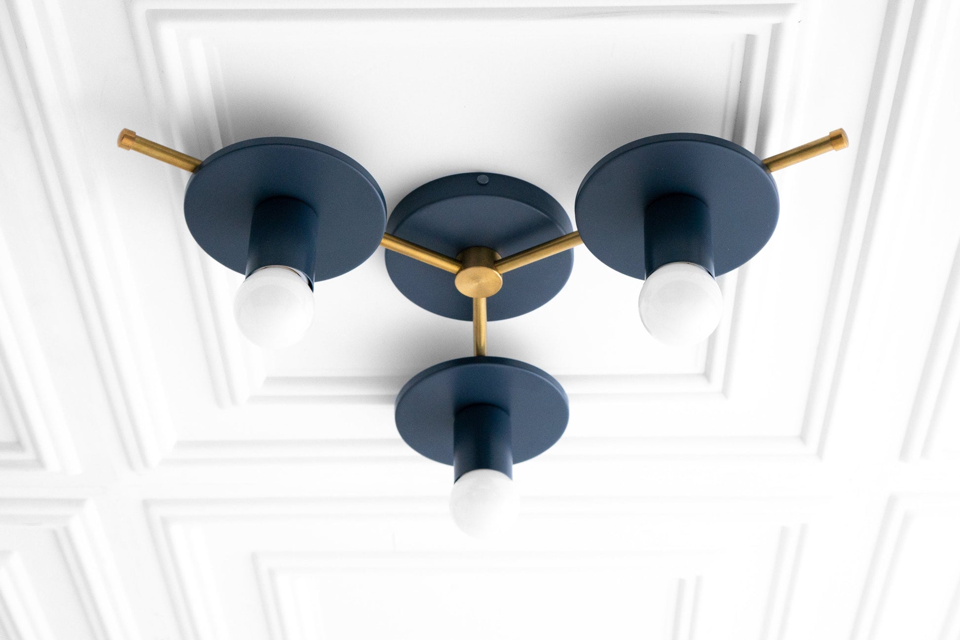 Colorful Lighting - Brass Lighting - Geometric Lighting - 3 Bulb Ceiling Light - Model No. 9526